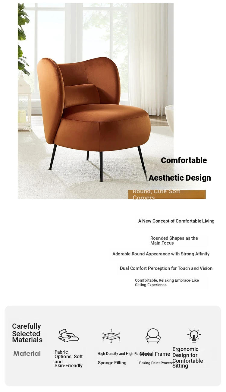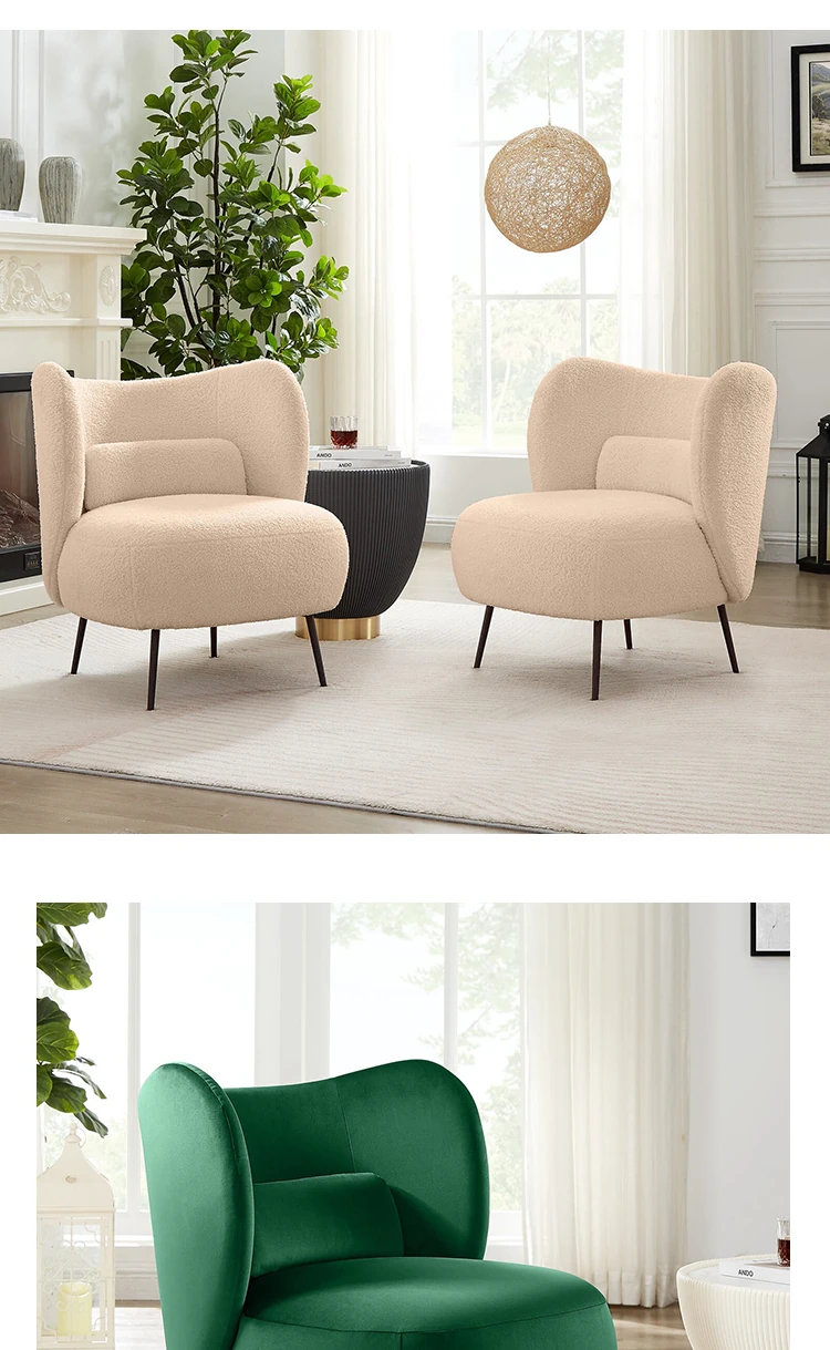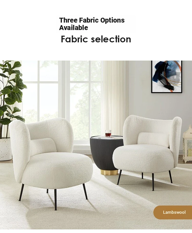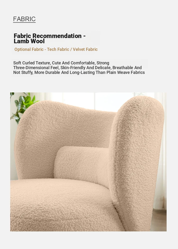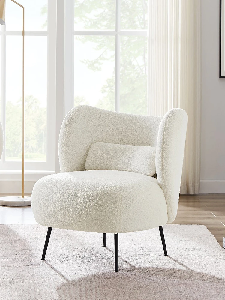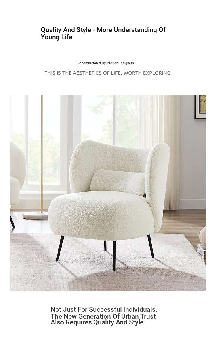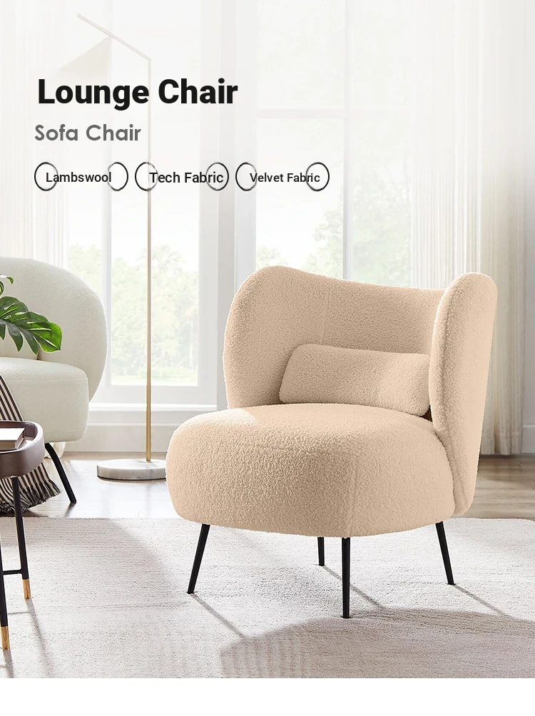 Nordic Fabric Armchair for Small Living Rooms - Minimalist Cream Aesthetic Leisure Chair in Lambswool - Perfect Beauty Seat for One Person