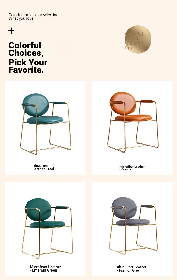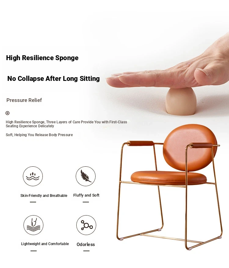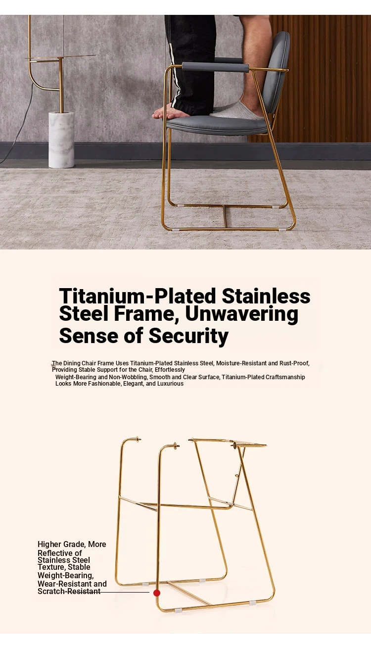 Nordic High-End Light Luxury Dining Chair - Modern Minimalist Italian Designer Chair in Ultra-Fine Leather with Comfortable Stainless Steel Frame for Home Use