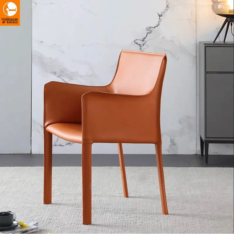 Nordic Light Luxury Armrest Saddle Chair - Modern Minimalist Dining Chair for Home, Italian Design, Ideal for Hotels and Meeting Rooms