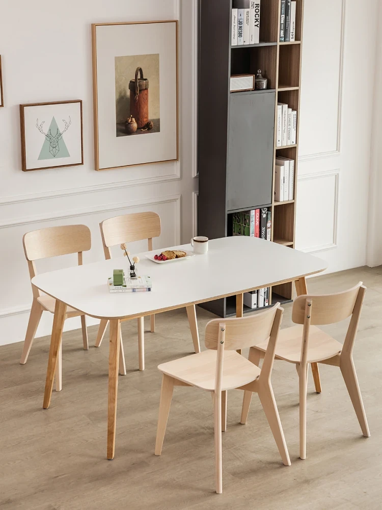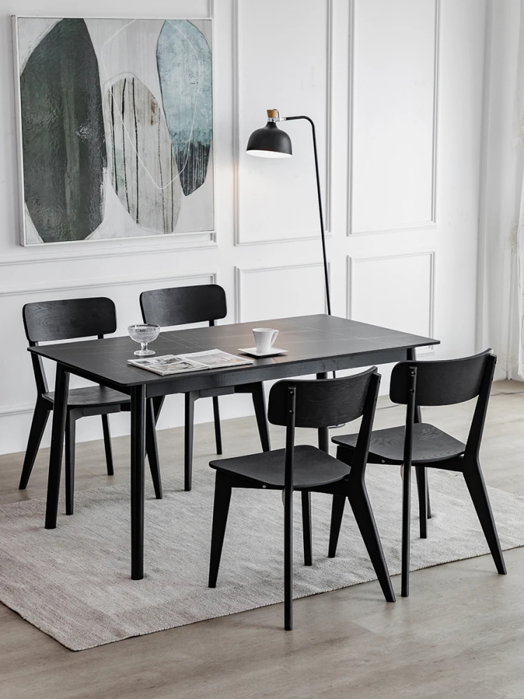 Nordic Lisaber Solid Wood Italian Minimalist Designer Dining Table and Chairs Set - Rustic Hotel Style Black and White Wax Finish for Cozy Dining Spaces