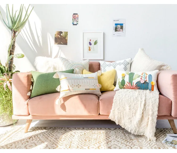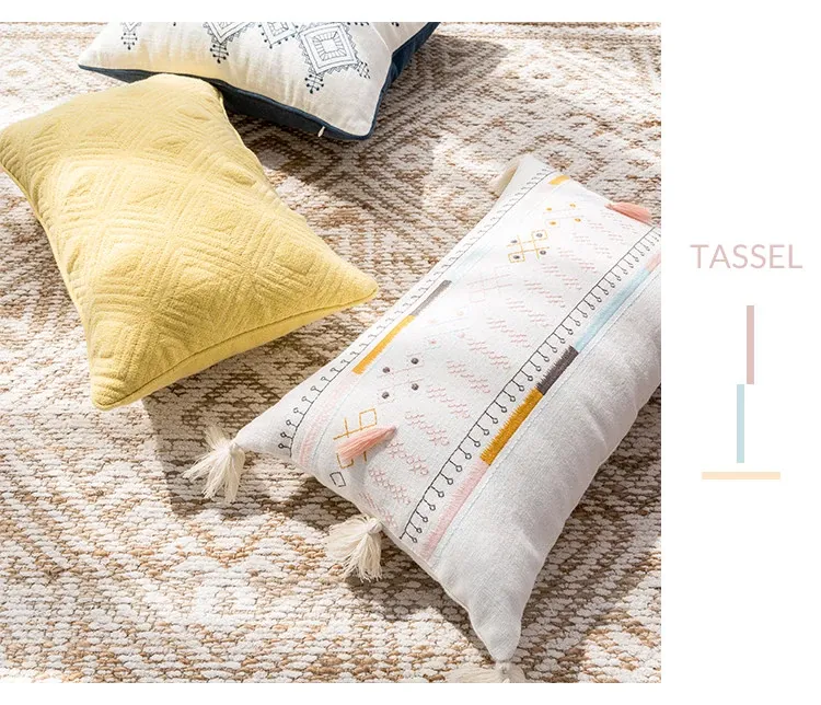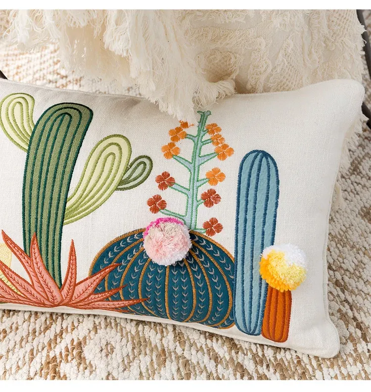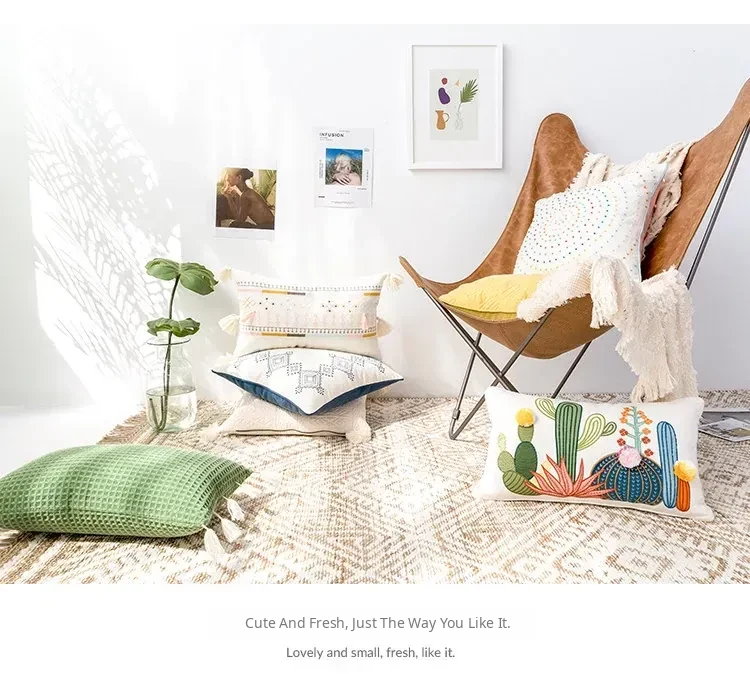Nordic Minimalist Embroidered Throw Pillow - Fresh and Charming Floral Design for Sofa and Bedroom, Creative Lumbar Cushion for Cozy Living Spaces