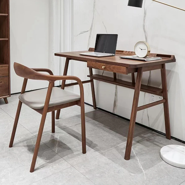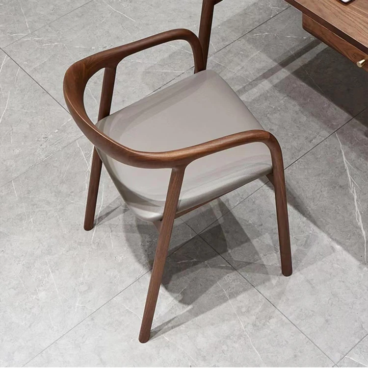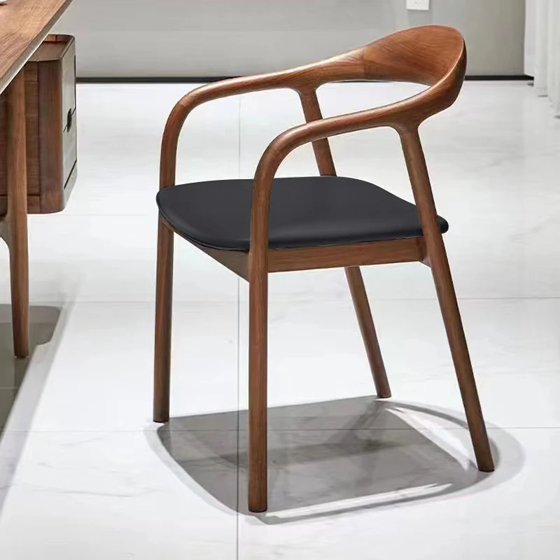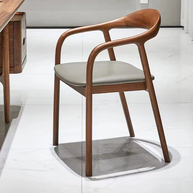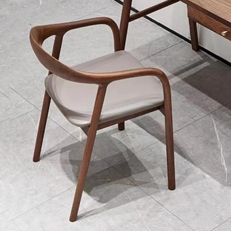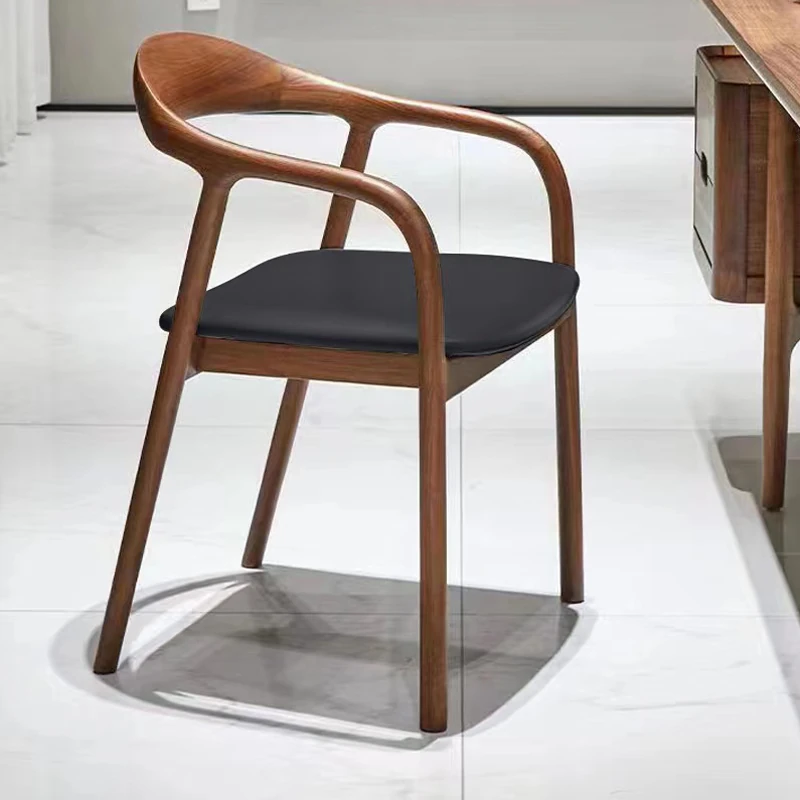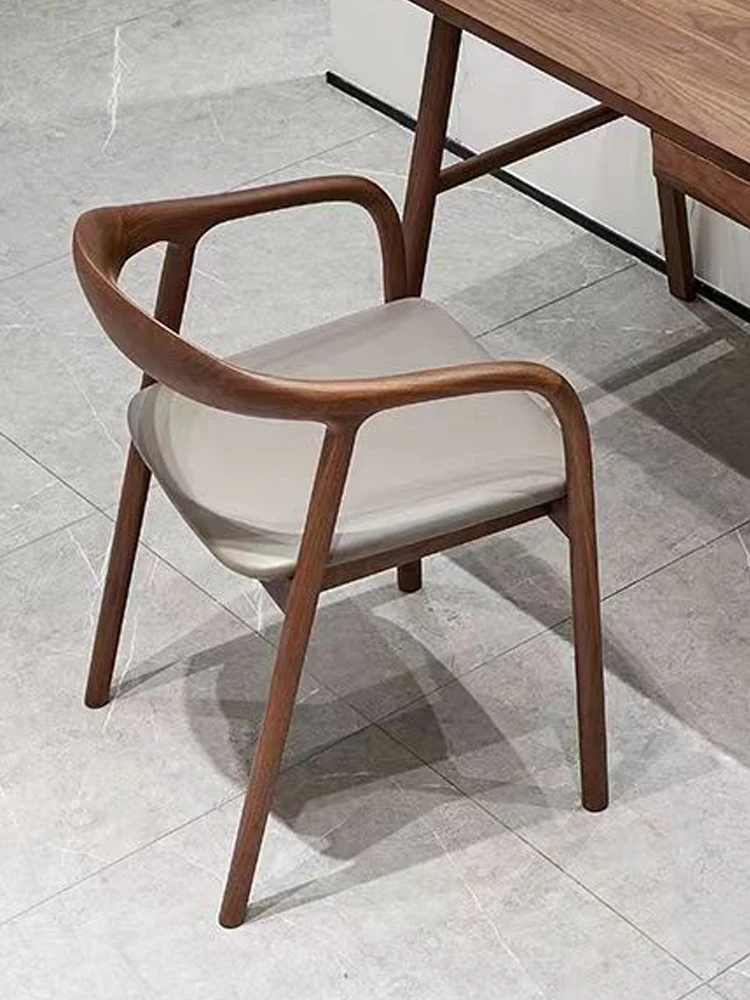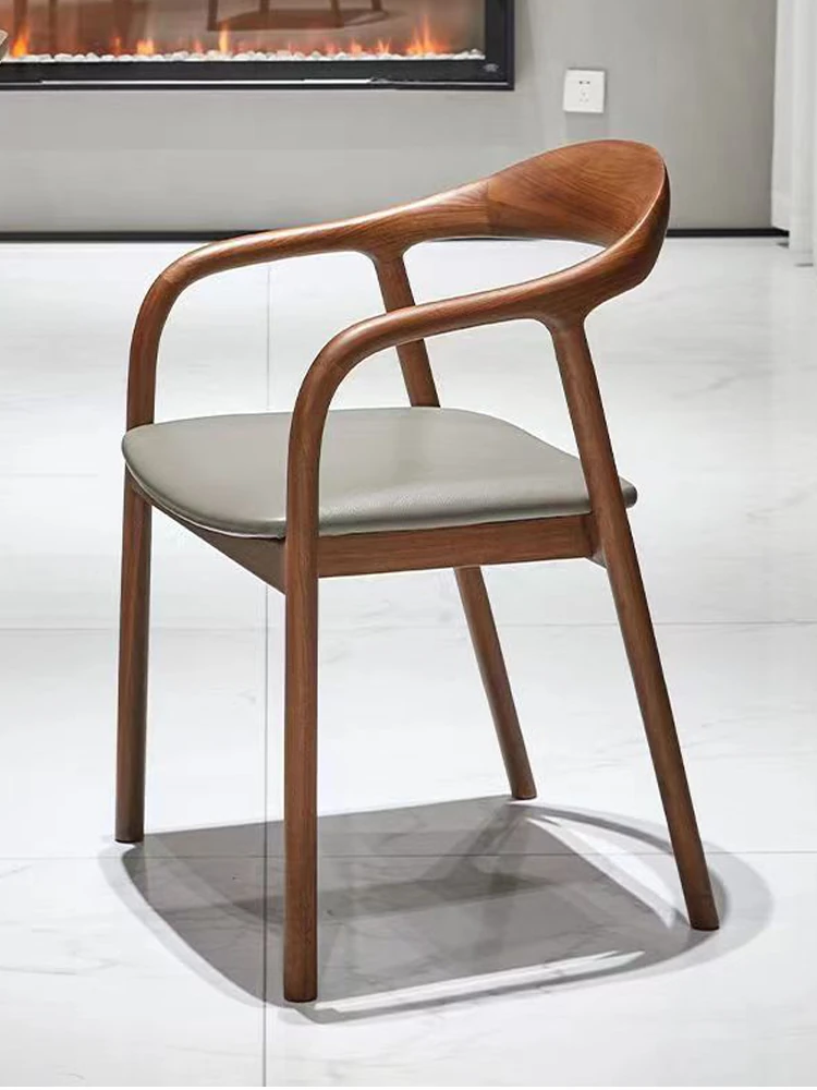 Nordic Minimalist Solid Wood Dining Chair with Genuine Leather Backrest – Stylish and Comfortable Home Chair for New Chinese Style Dining and Tea Spaces