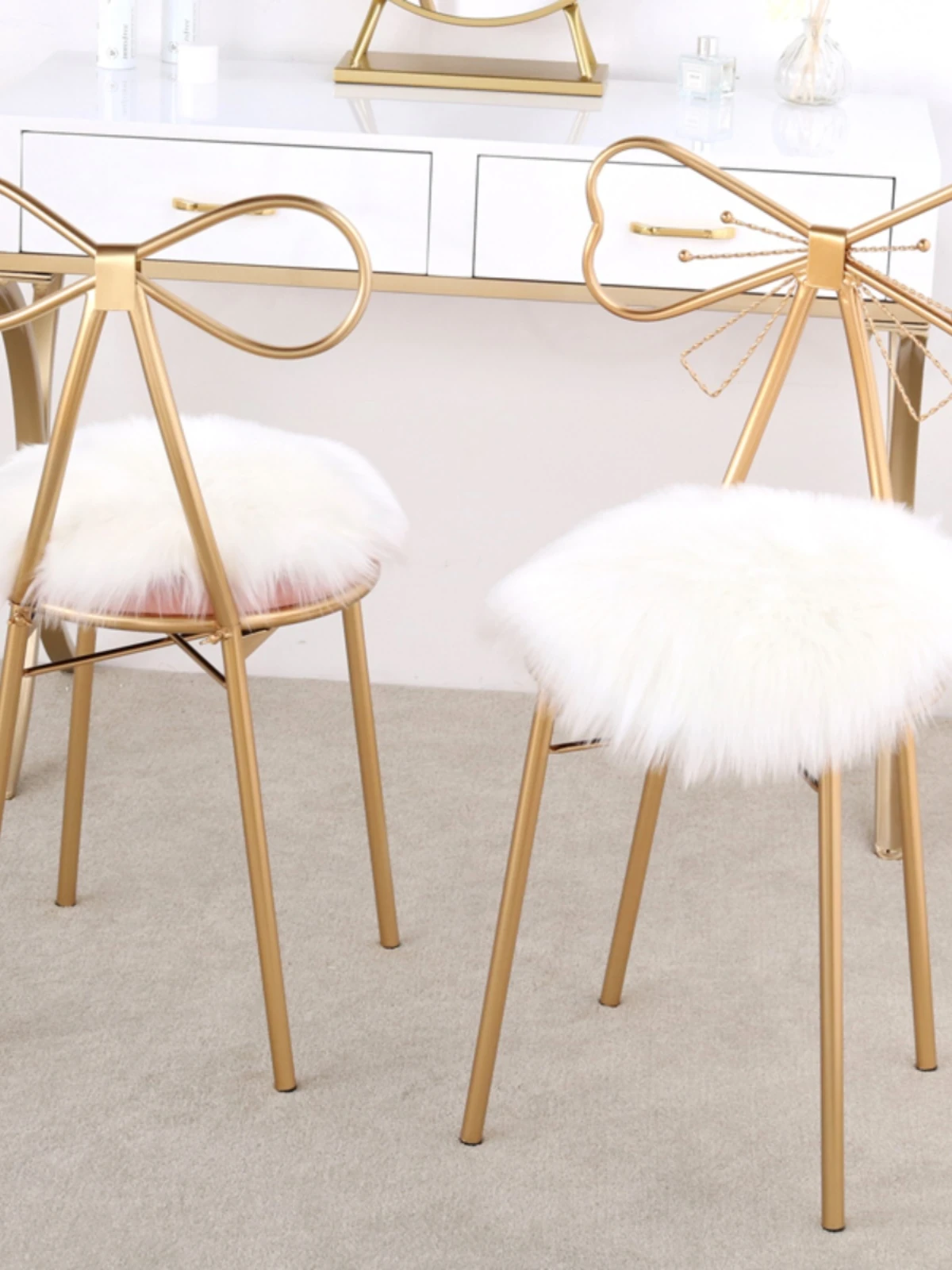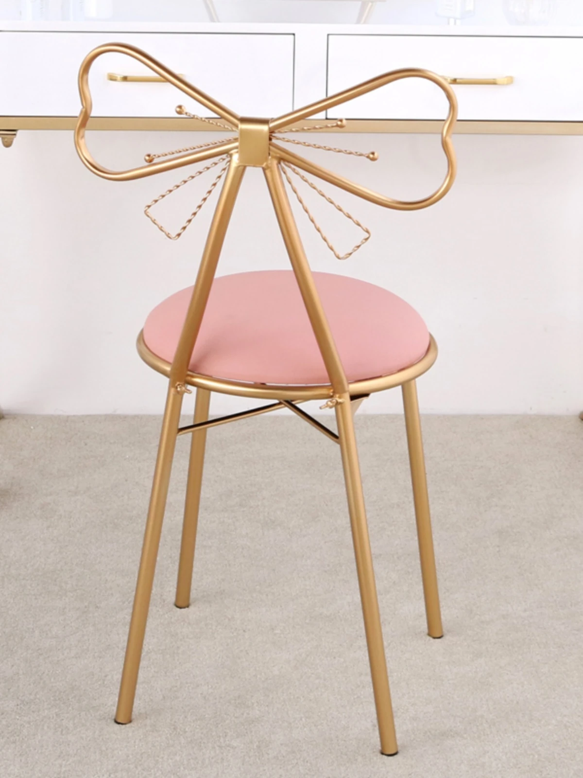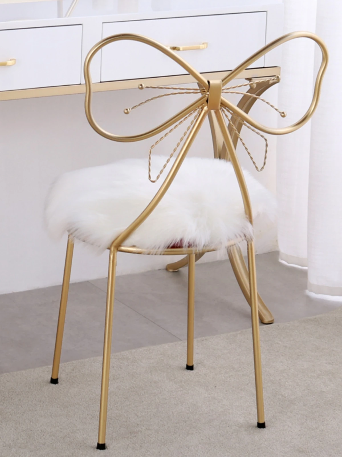 Nordic Princess Makeup Chair with Bow, Cute and Trendy Vanity Stool for Bedroom - Perfect for Beauty Lovers and Fashionistas!