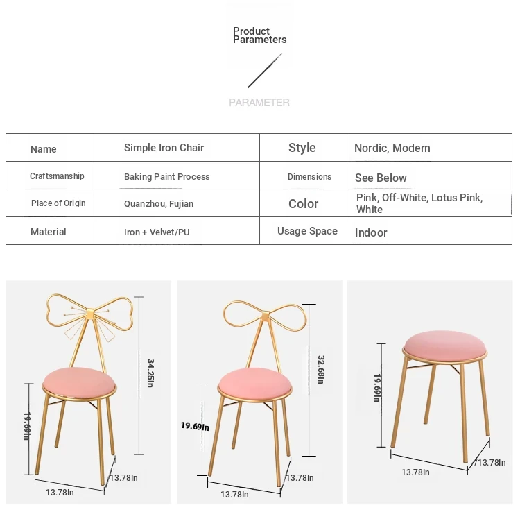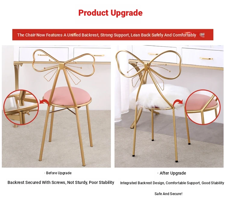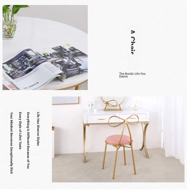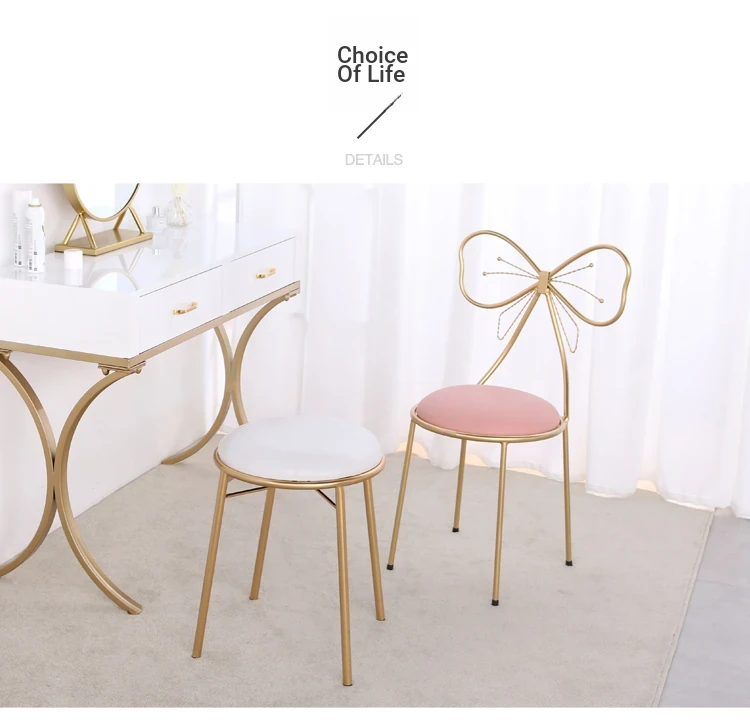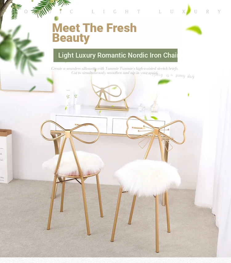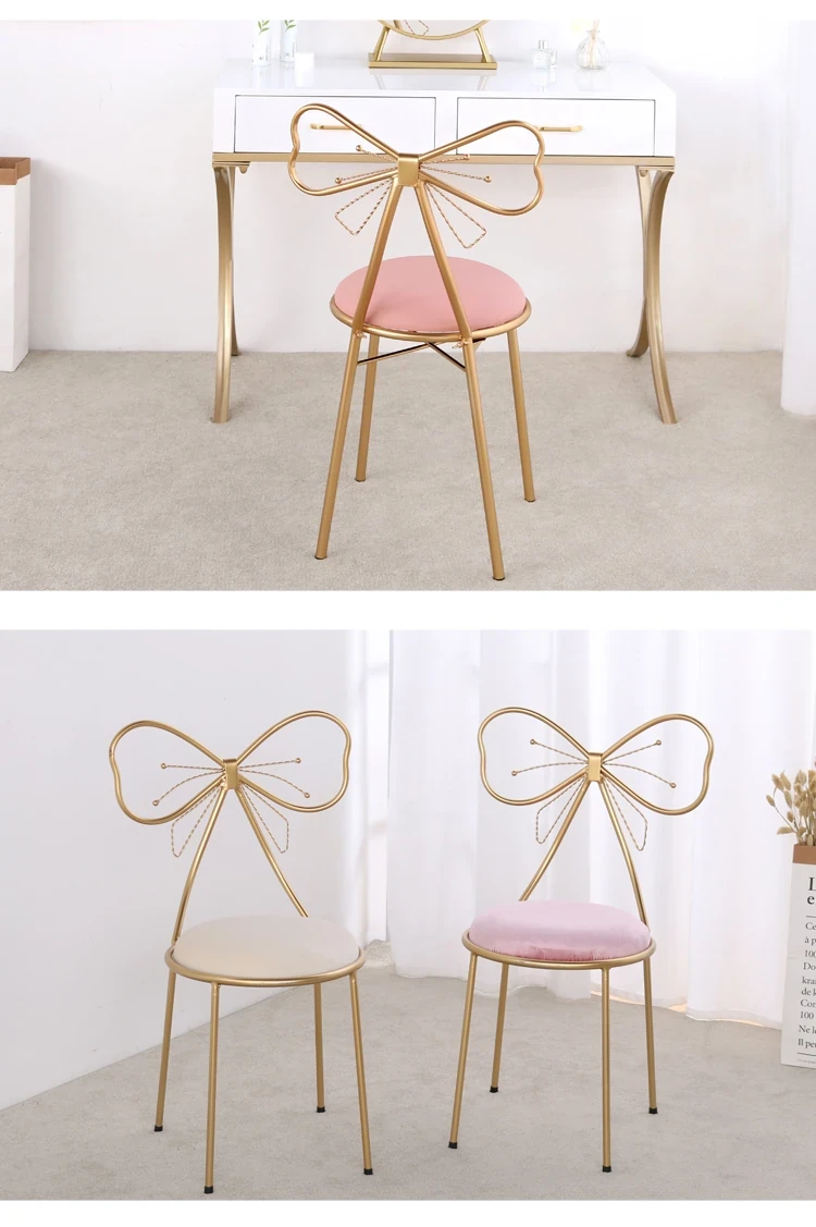 Nordic Princess Makeup Chair with Bow, Cute and Trendy Vanity Stool for Bedroom - Perfect for Beauty Lovers and Fashionistas!