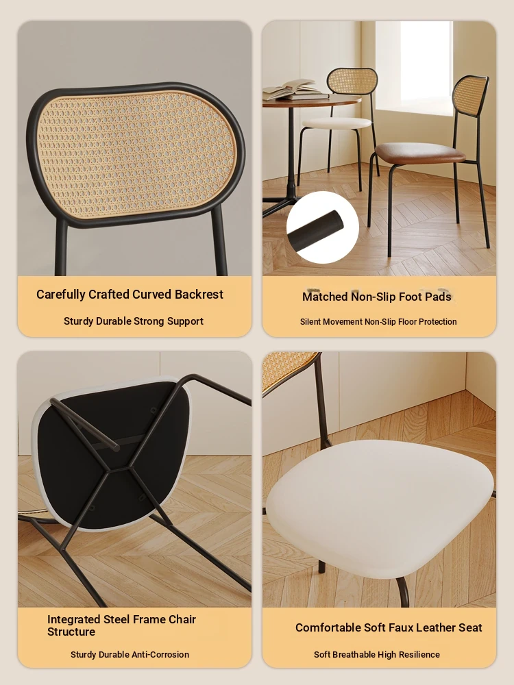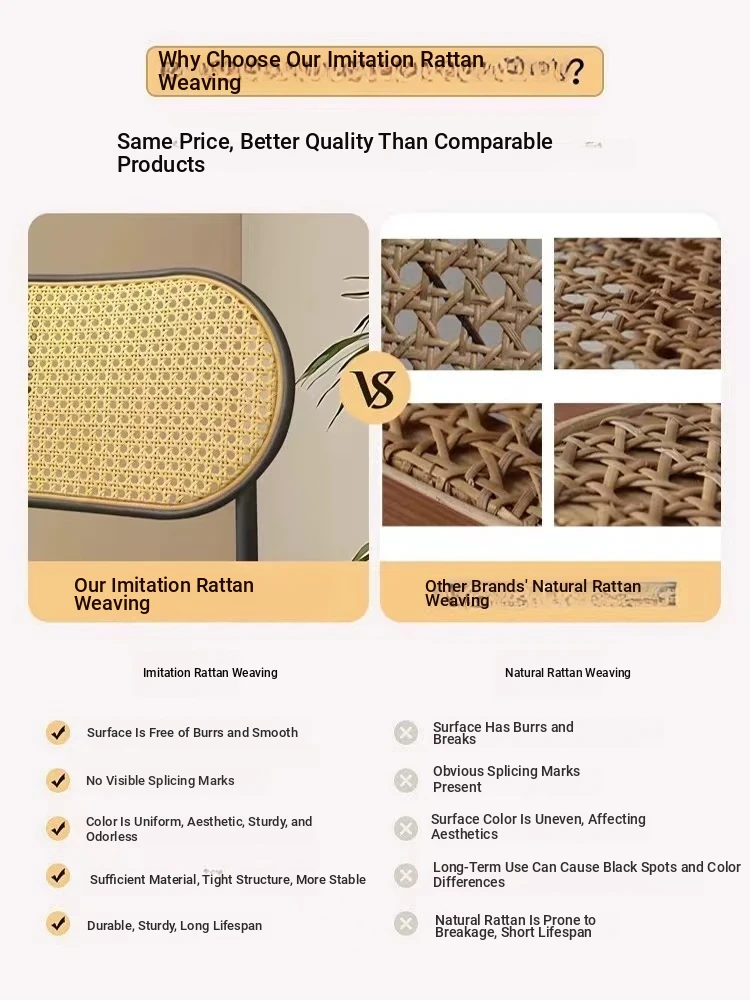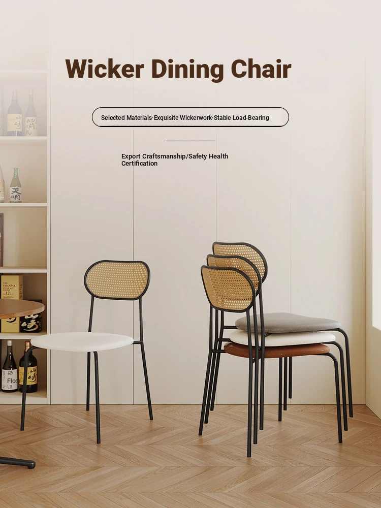 Nordic Rattan Dining Chair - Stylish and Comfortable for Home, Café, or Hotel Use - Perfect for Dining Tables, Desks, and Relaxation - Chic Woven Design for a Modern Touch