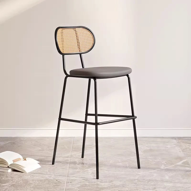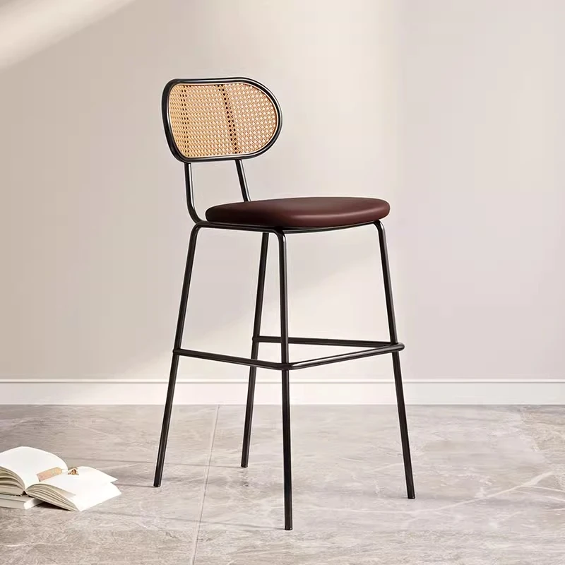 Brown leather "A light-coloured wooden frame on the back"★ Bar Chair (28.35in tall)