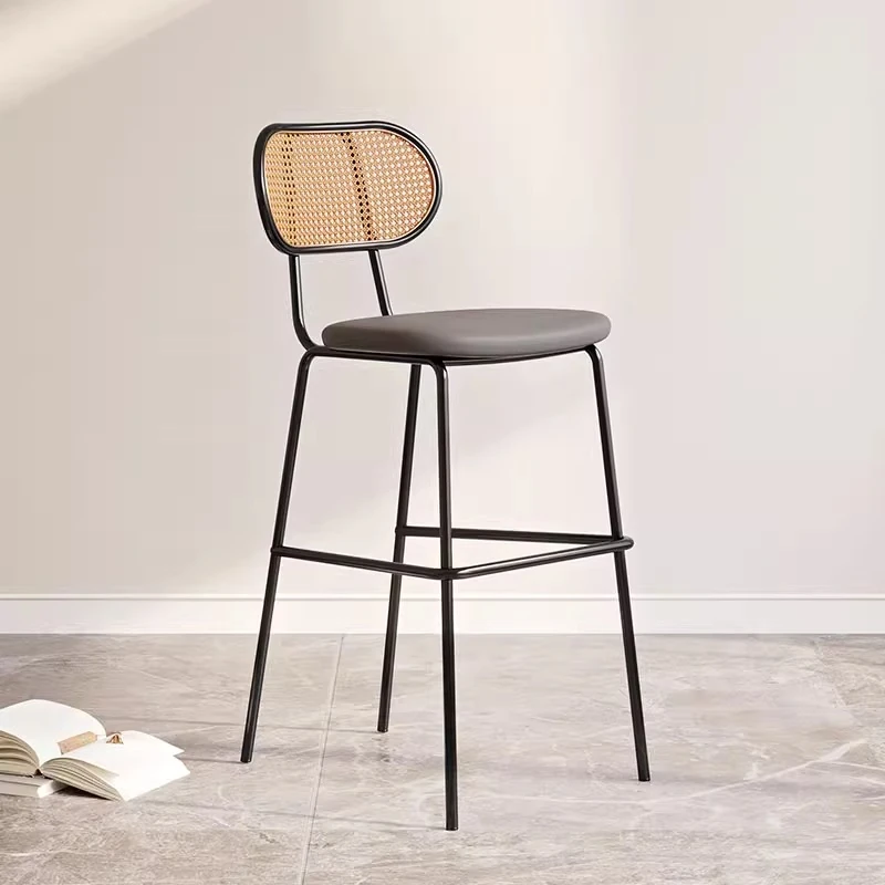 gray leather "A light-coloured ribbon mounted on the back"★ Bar chair (height 28.35in)