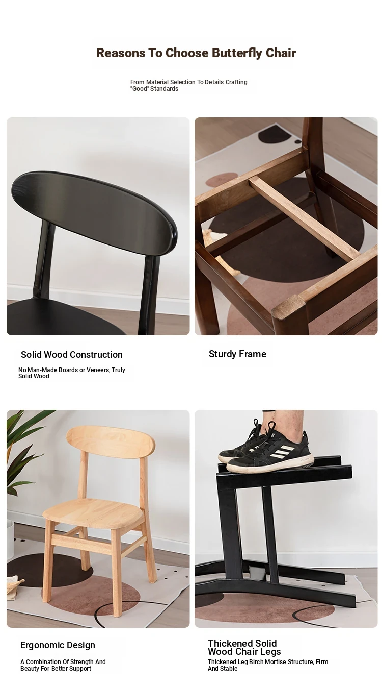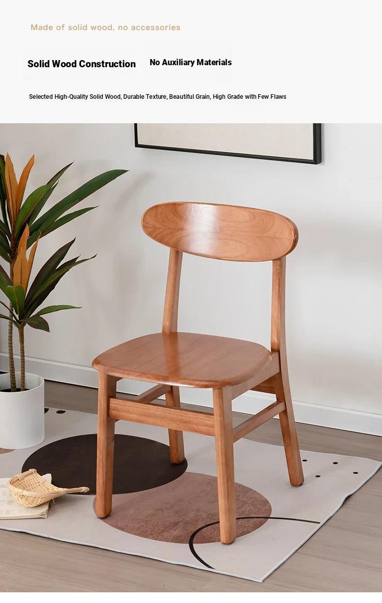 Nordic Solid Wood Dining Chair - Oak Casual Armchair for Living Room and Restaurant, Pure All-wood Design with Comfortable Backrest, Perfect for Home Dining Experience