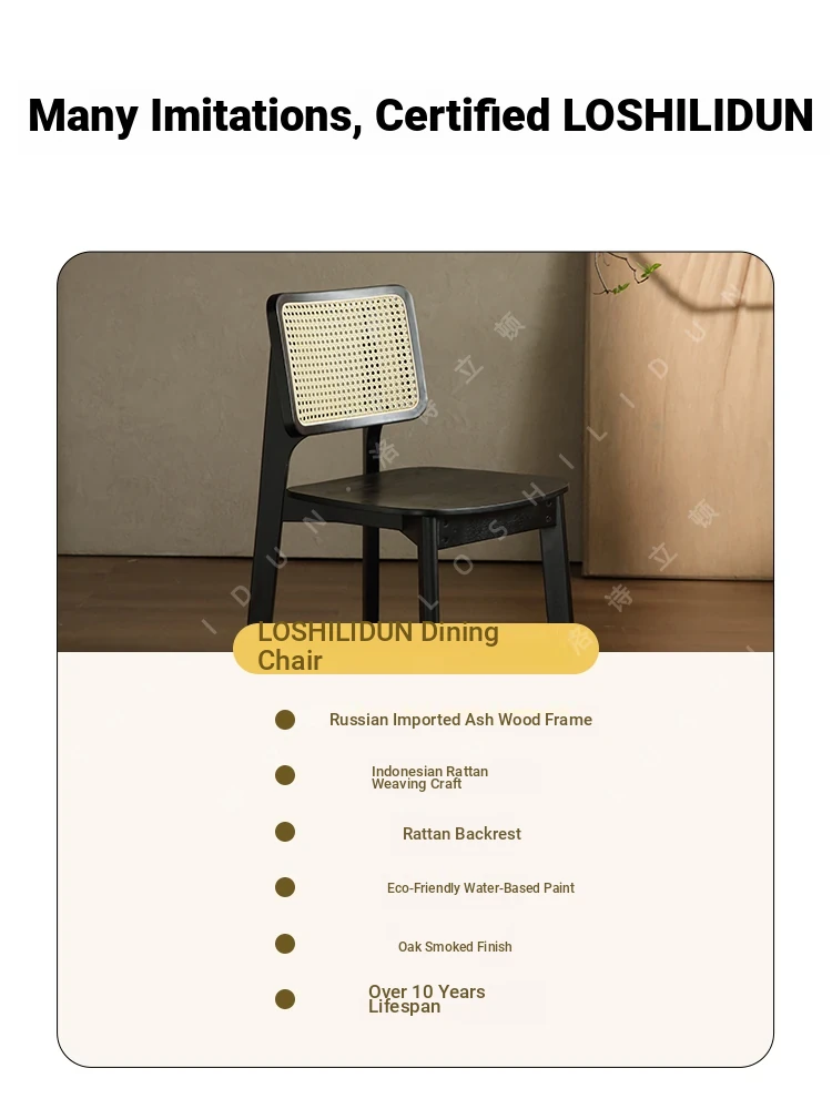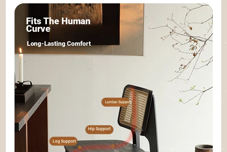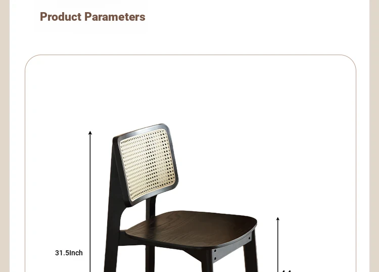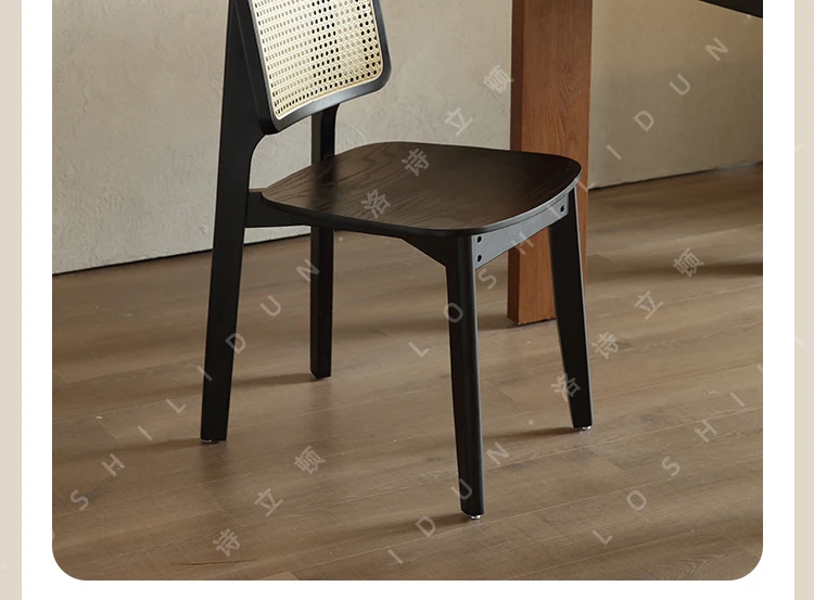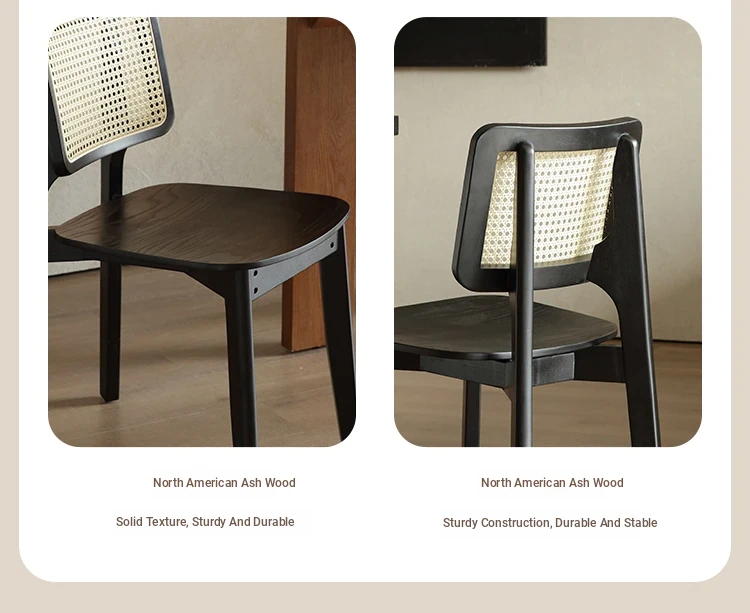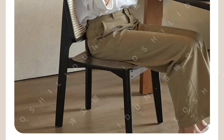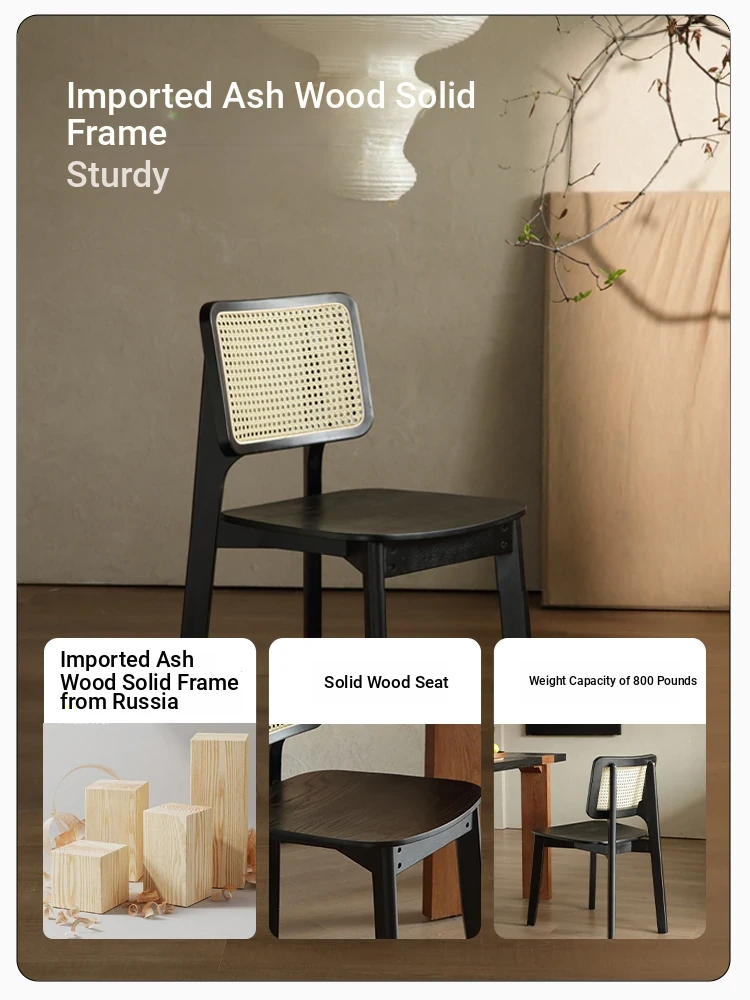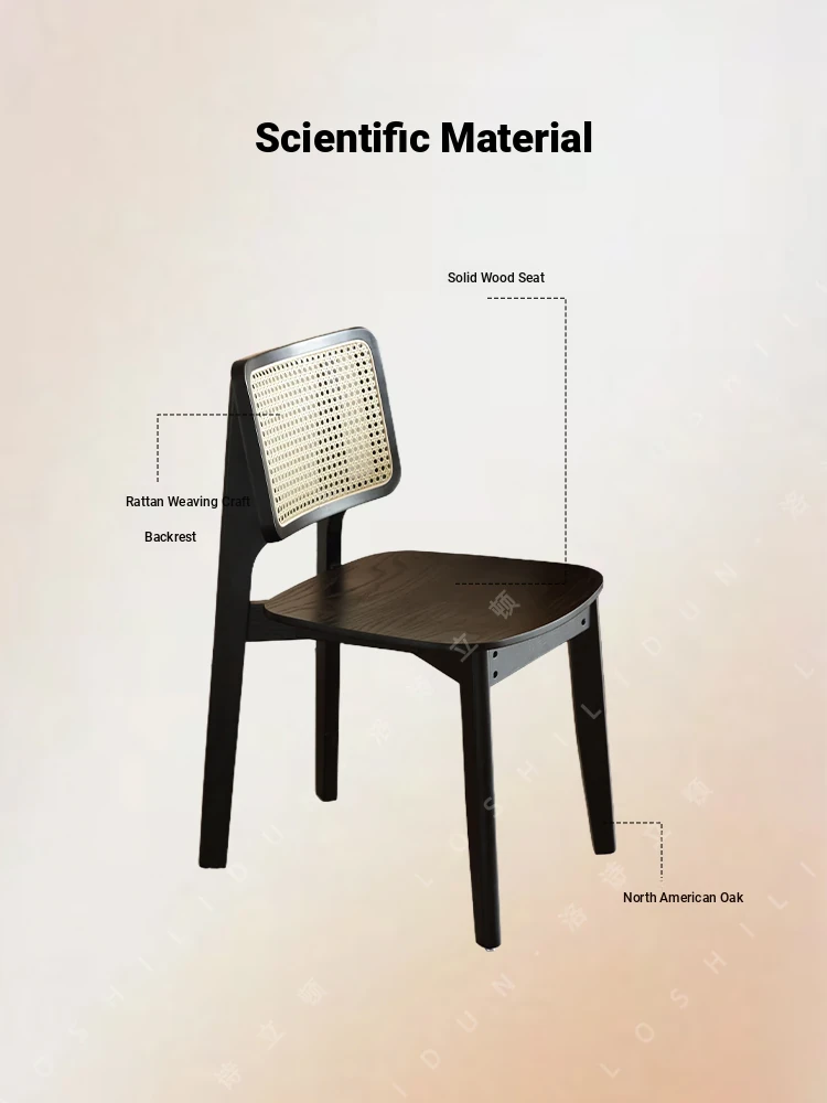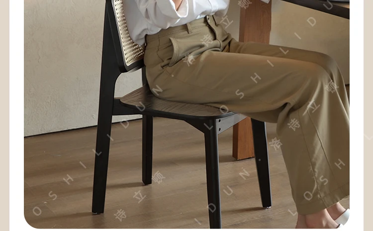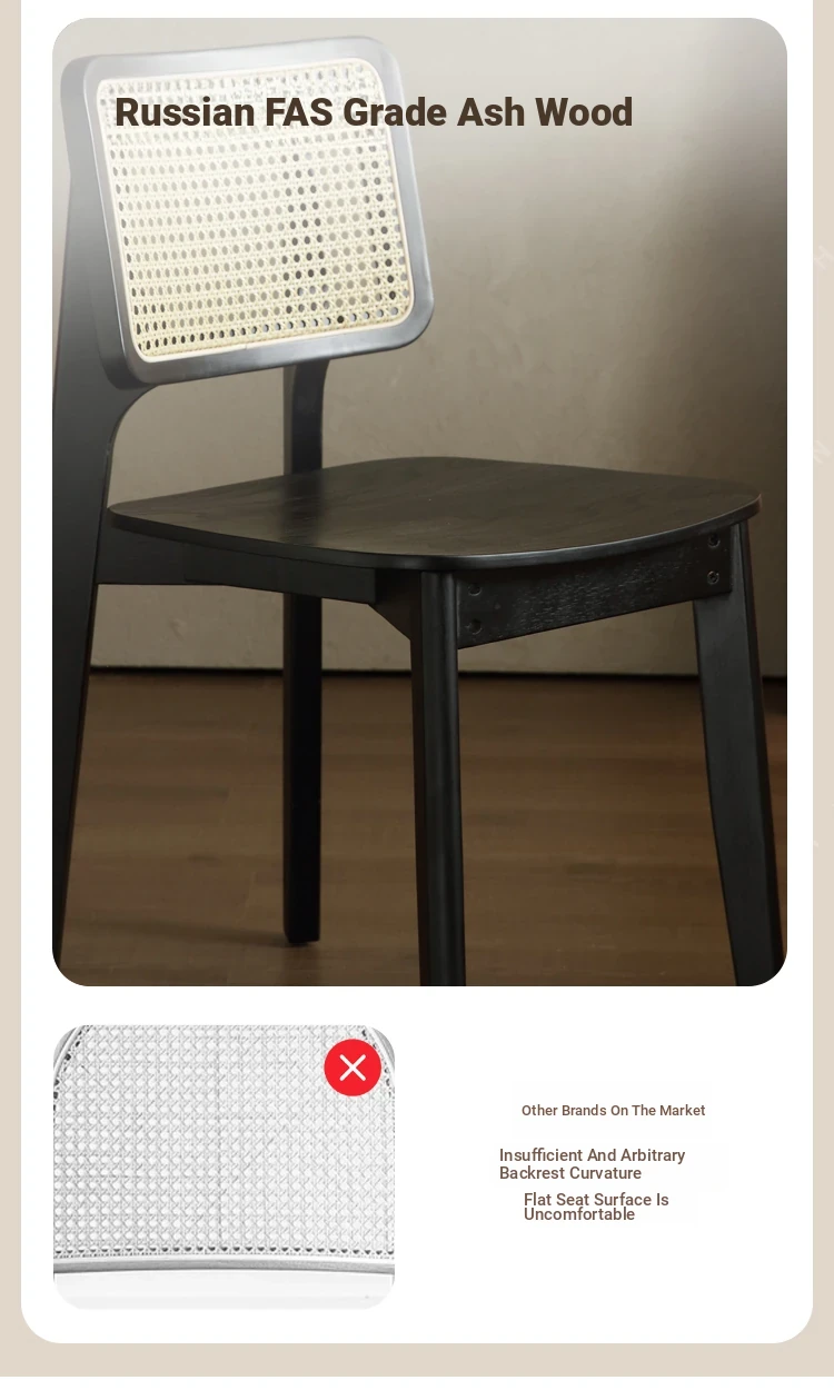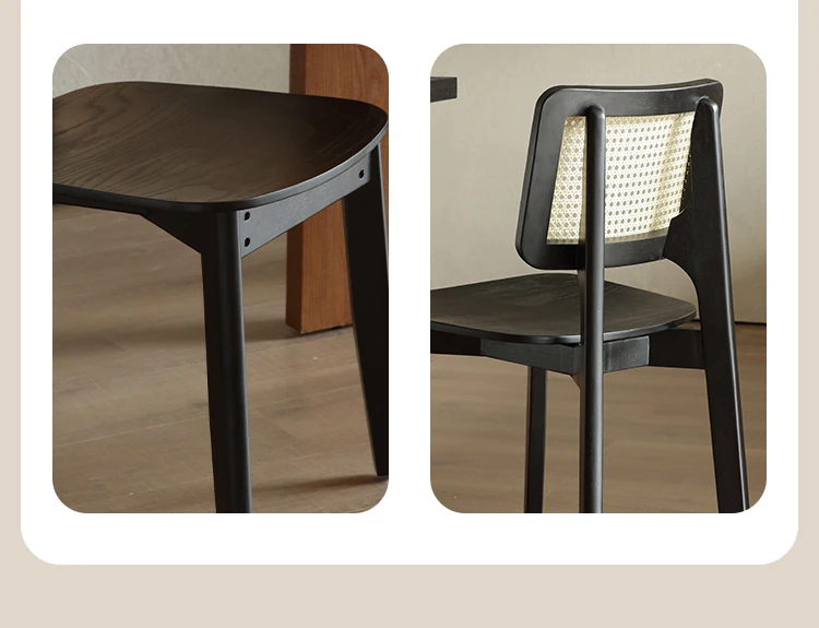 Nordic Solid Wood Dining Chair - Stylish Japanese Design, Black Backrest, Handwoven Rattan Seat for Ultimate Comfort, Perfect for Home Dining Spaces