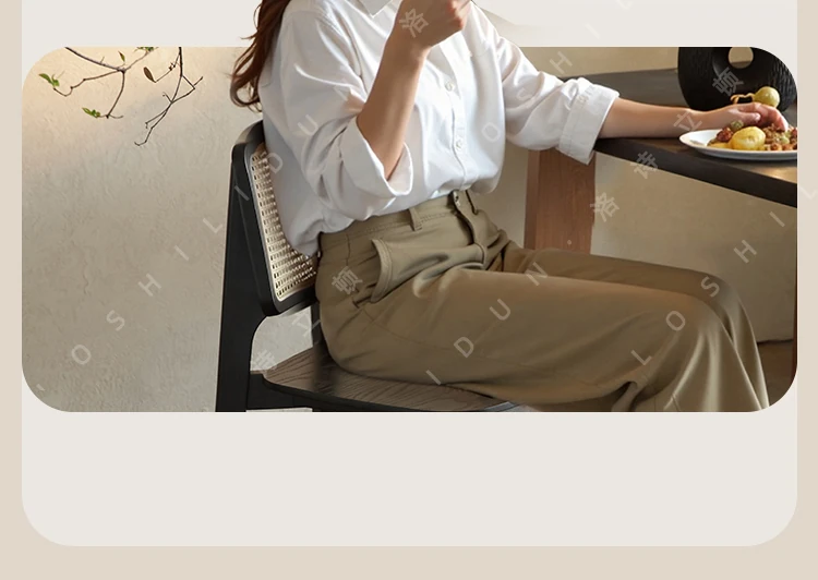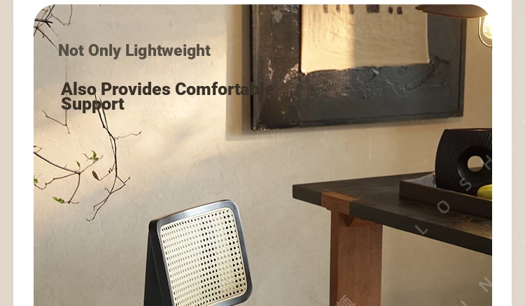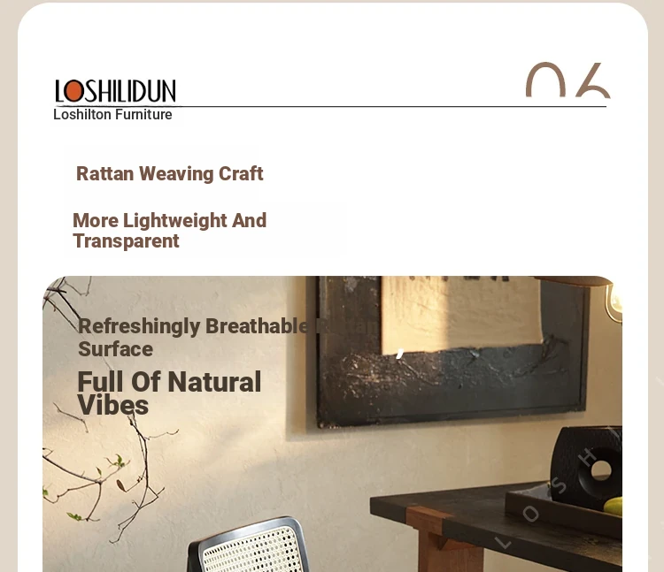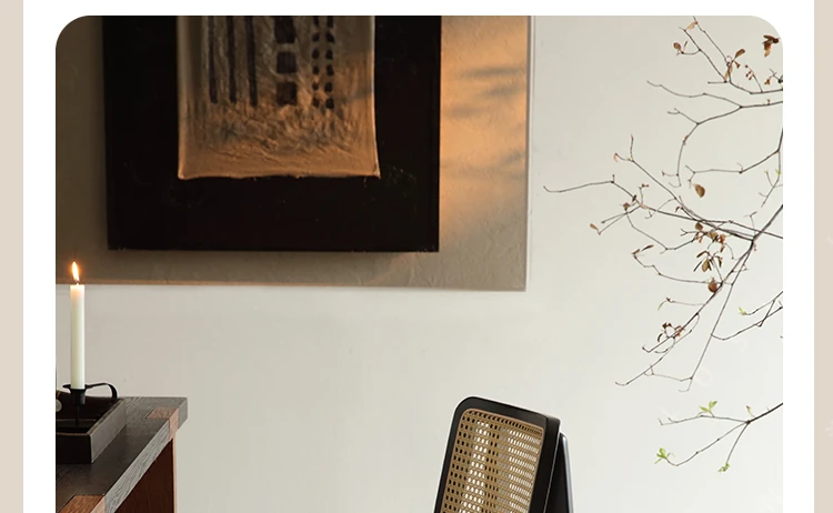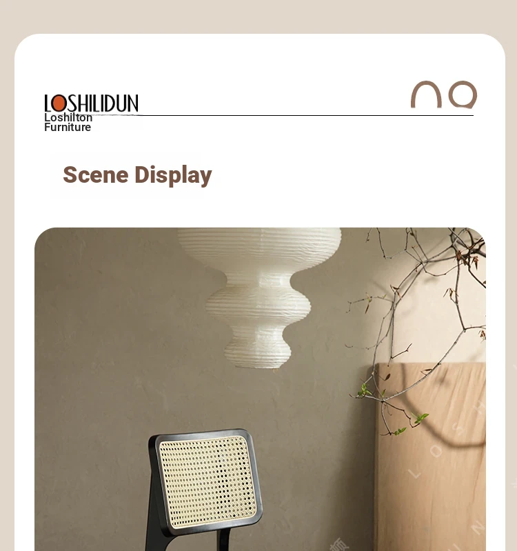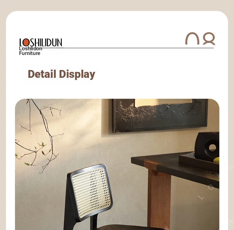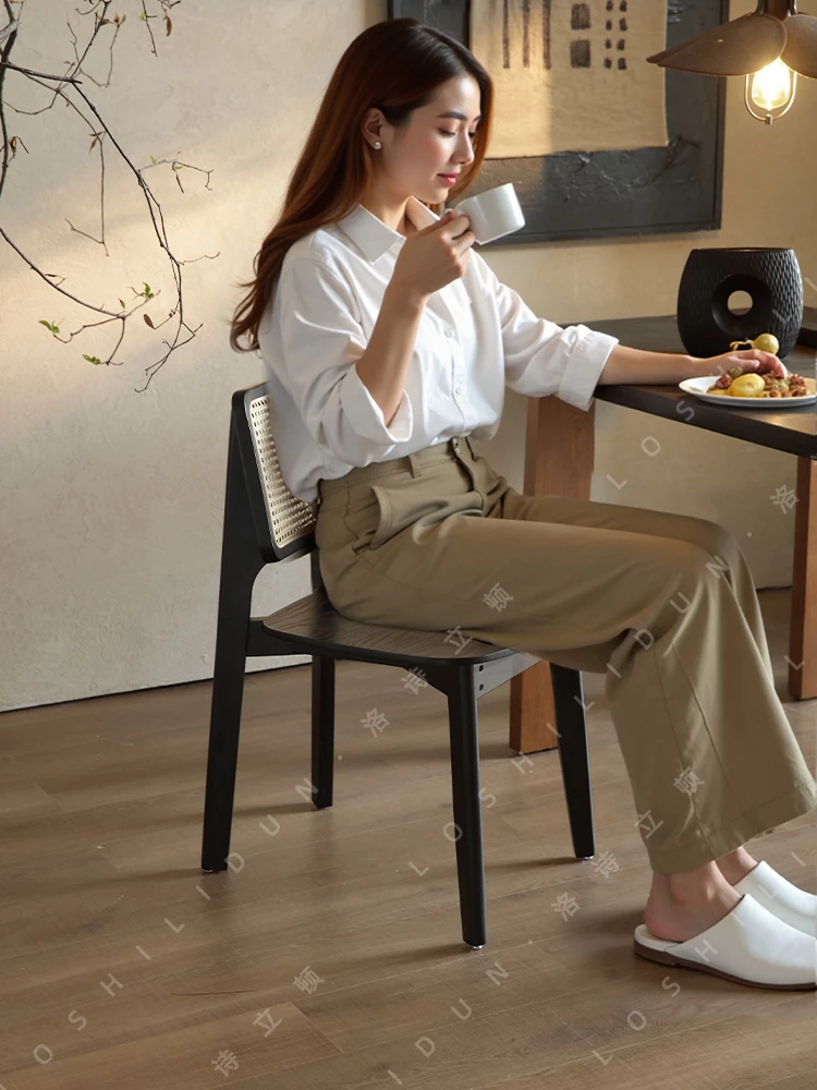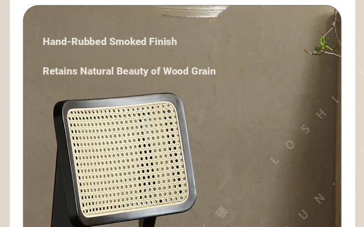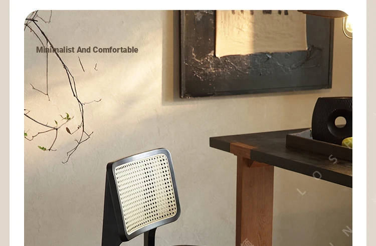 Rattan-woven Fangpu Dining Chair/Retro Black Solid Wood Frame