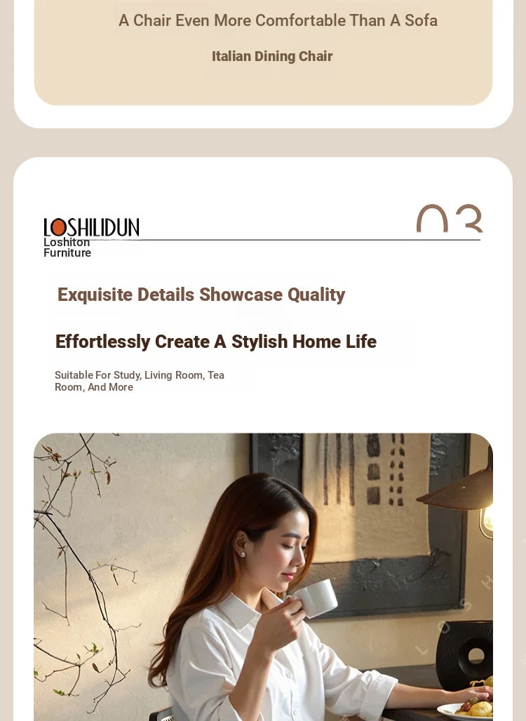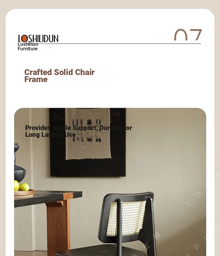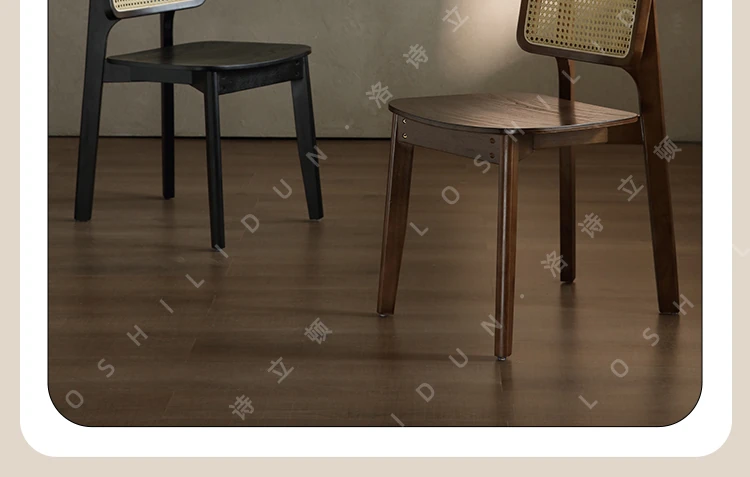 Rattan-woven Fangpu Dining Chair/Walnut Color Solid Wood Frame