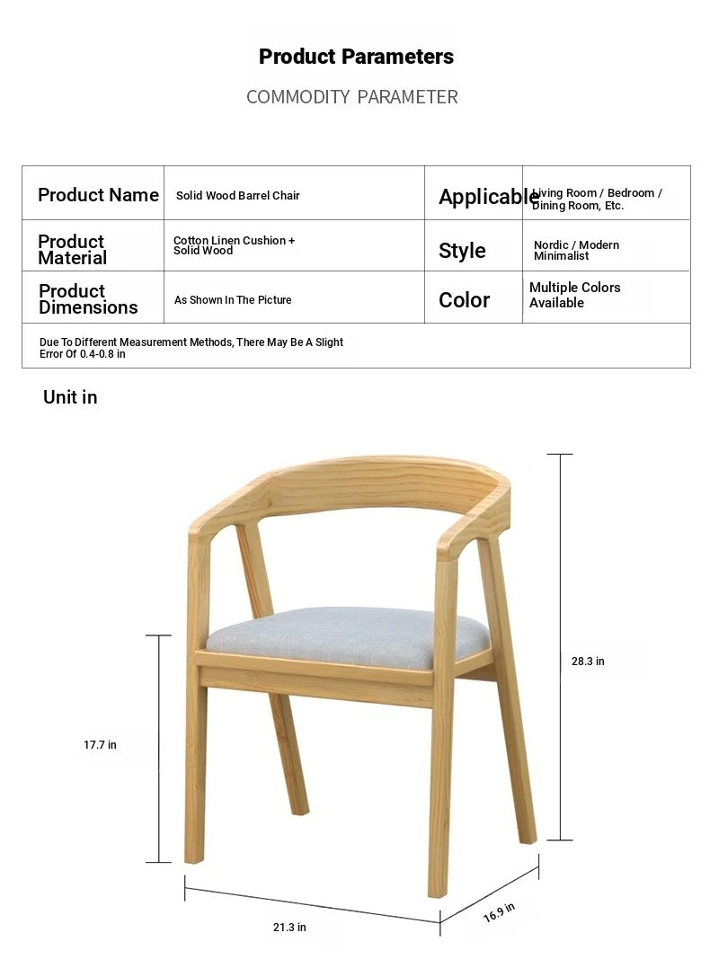 Nordic Solid Wood Office Chair - Versatile Home and Dining Chair with Backrest, Ideal for Desks and Meetings, Comfortable Armchair for Commercial Use in Restaurants