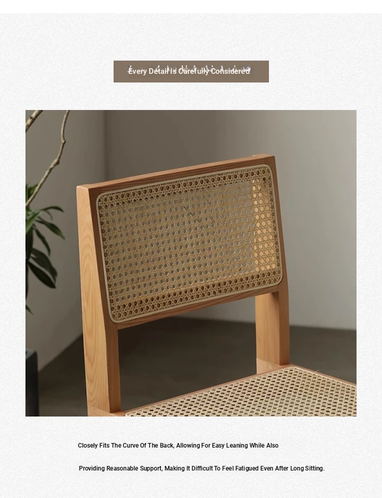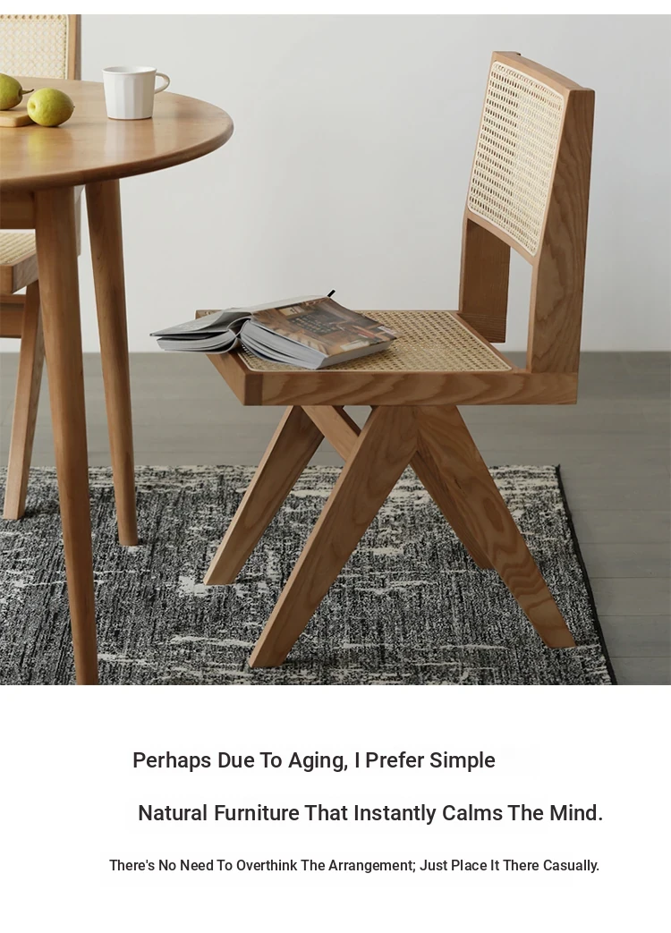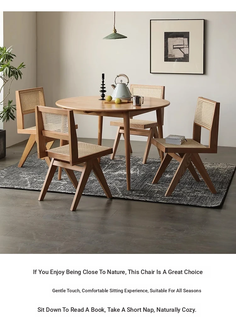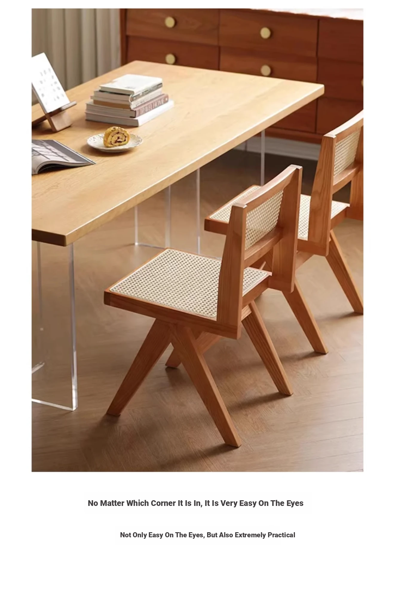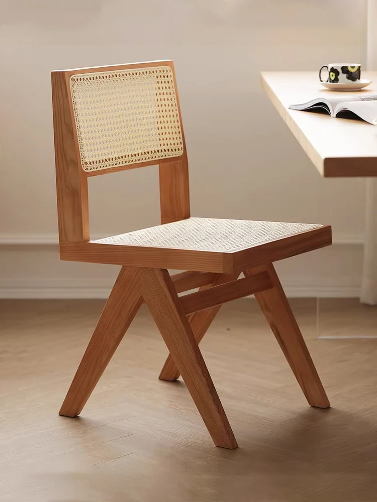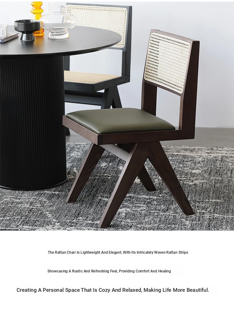 Nordic Solid Wood Rattan Weaving Chandi Style Wabi-Sabi Café Home Vintage Trendy Leisure Dining Chair K-Chair
