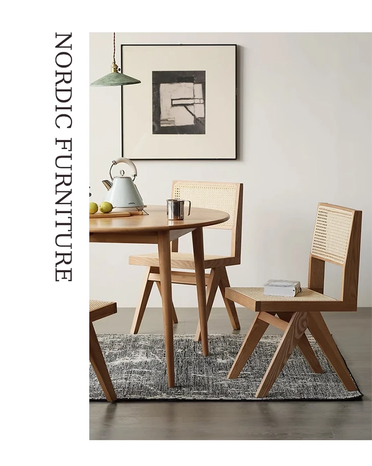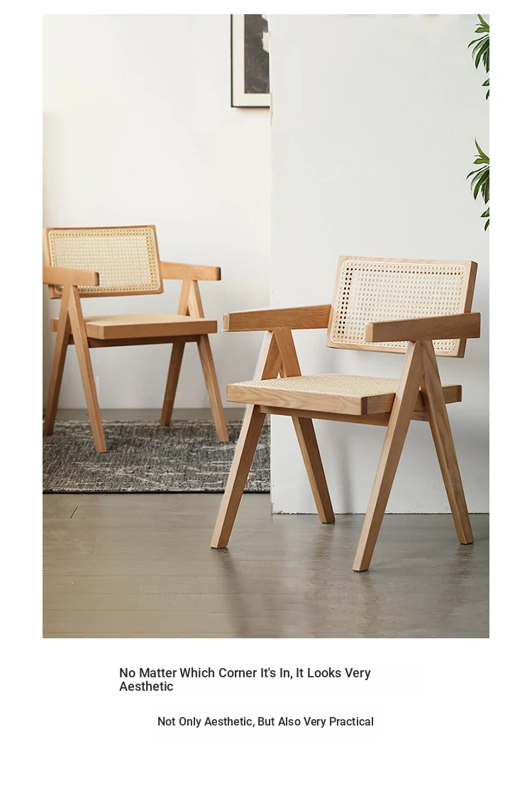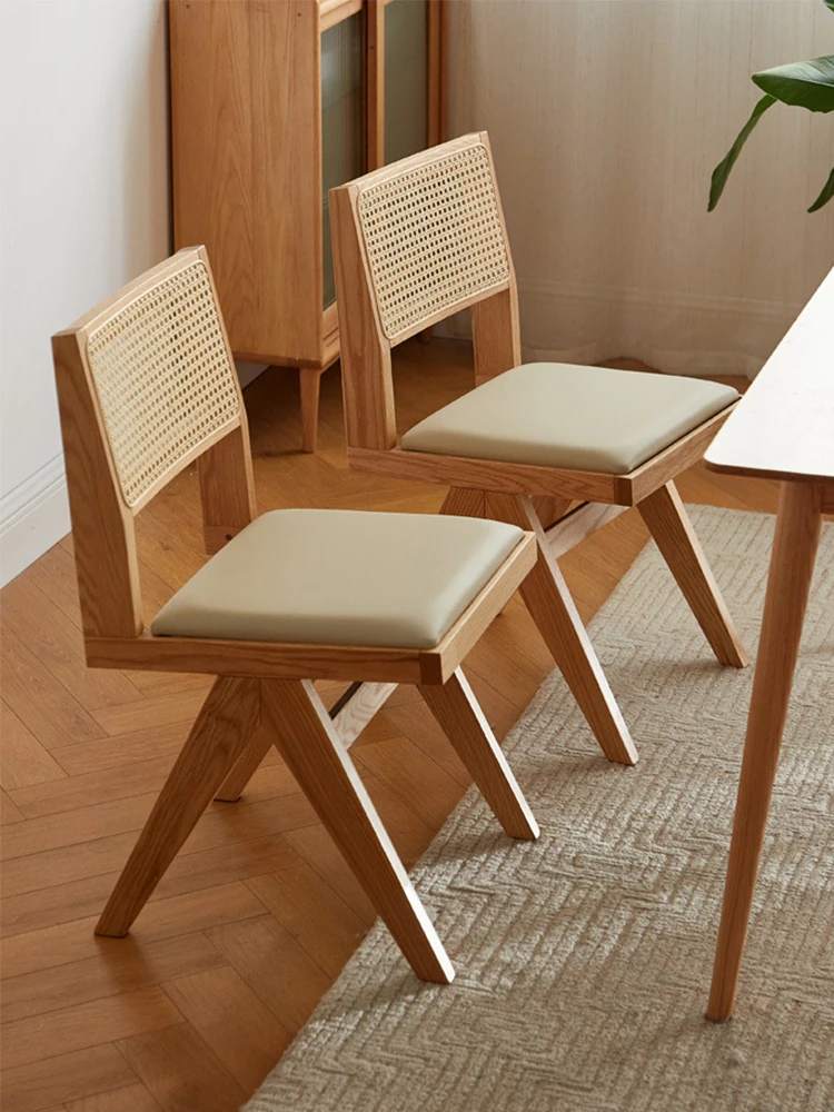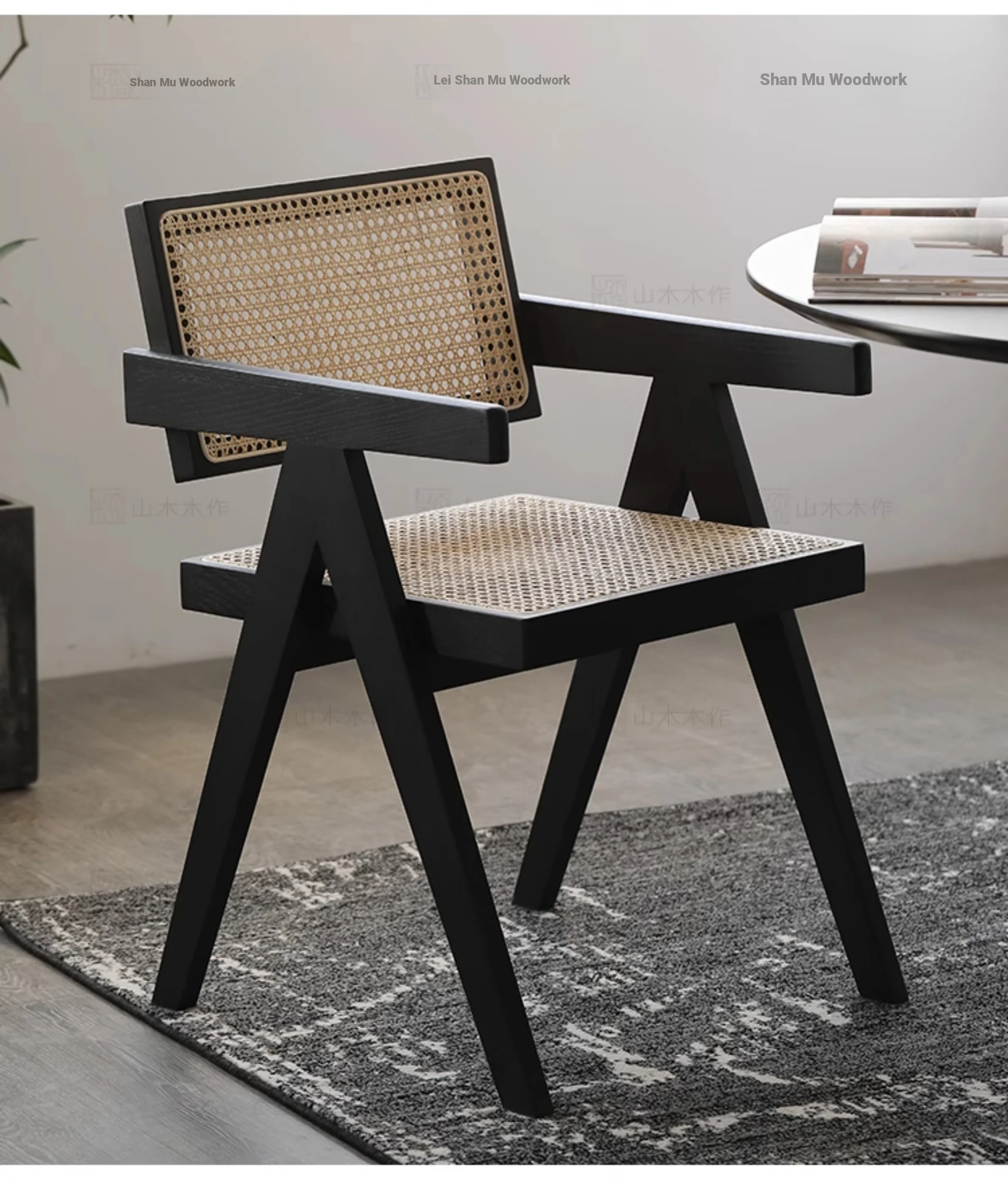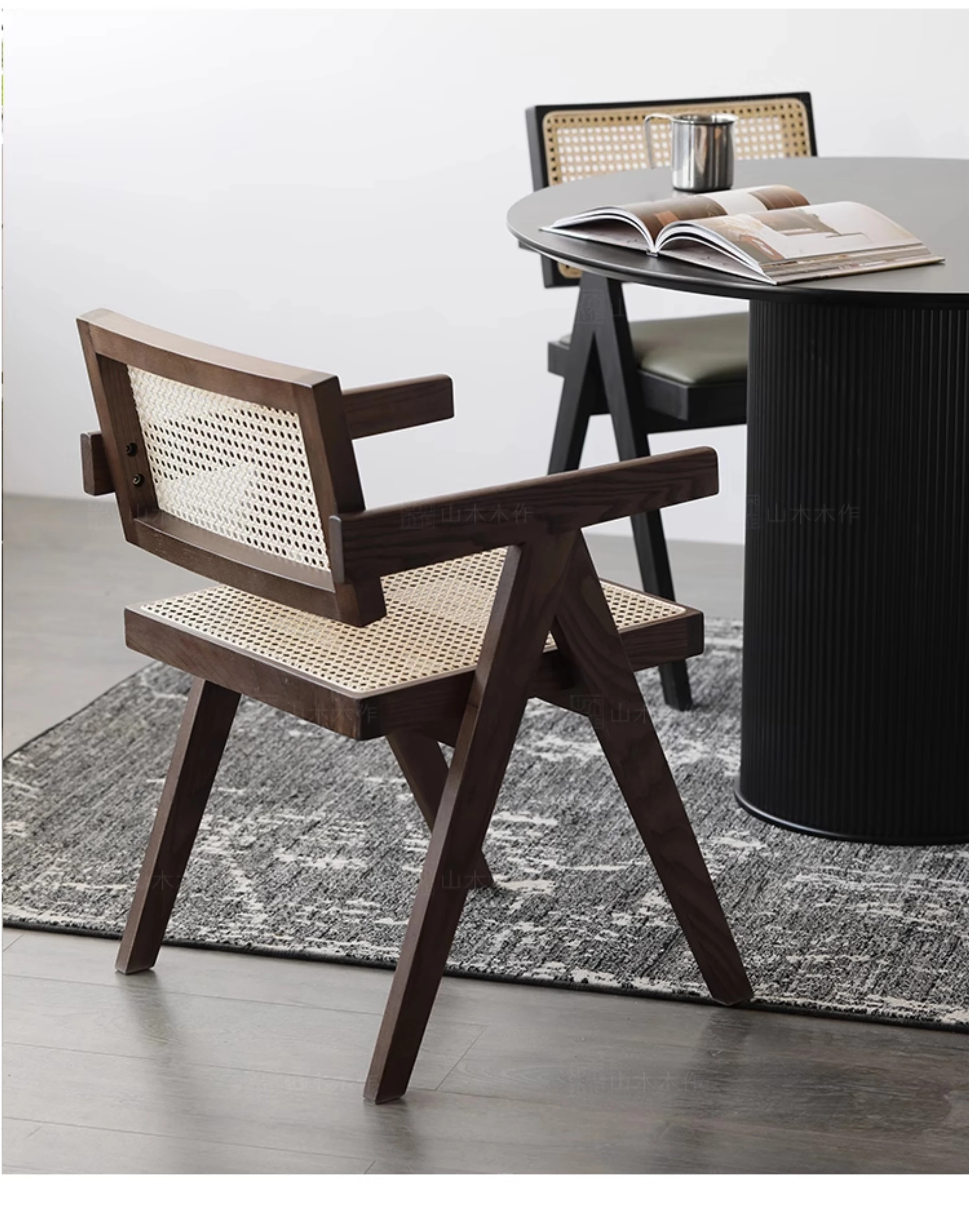 Nordic Solid Wood Rattan Weaving Chandi Style Wabi-Sabi Café Home Vintage Trendy Leisure Dining Chair K-Chair