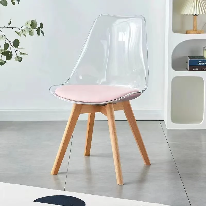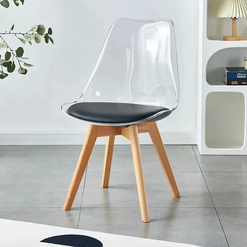 Nordic Transparent Dining Chair - Modern Minimalist Solid Wood Backrest Chair for Home, Study, and Dining Room - Lightweight Luxury Acrylic Exhibition Chair