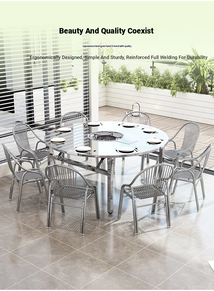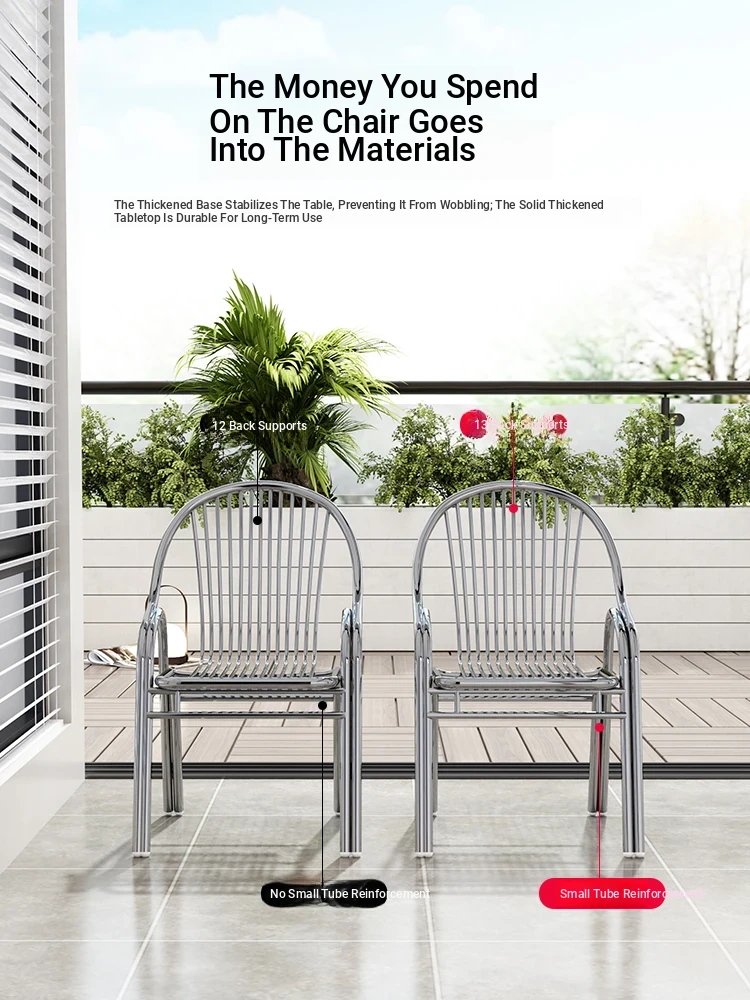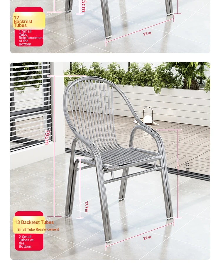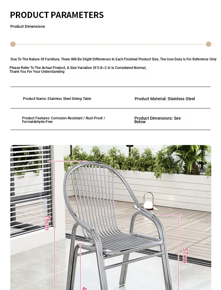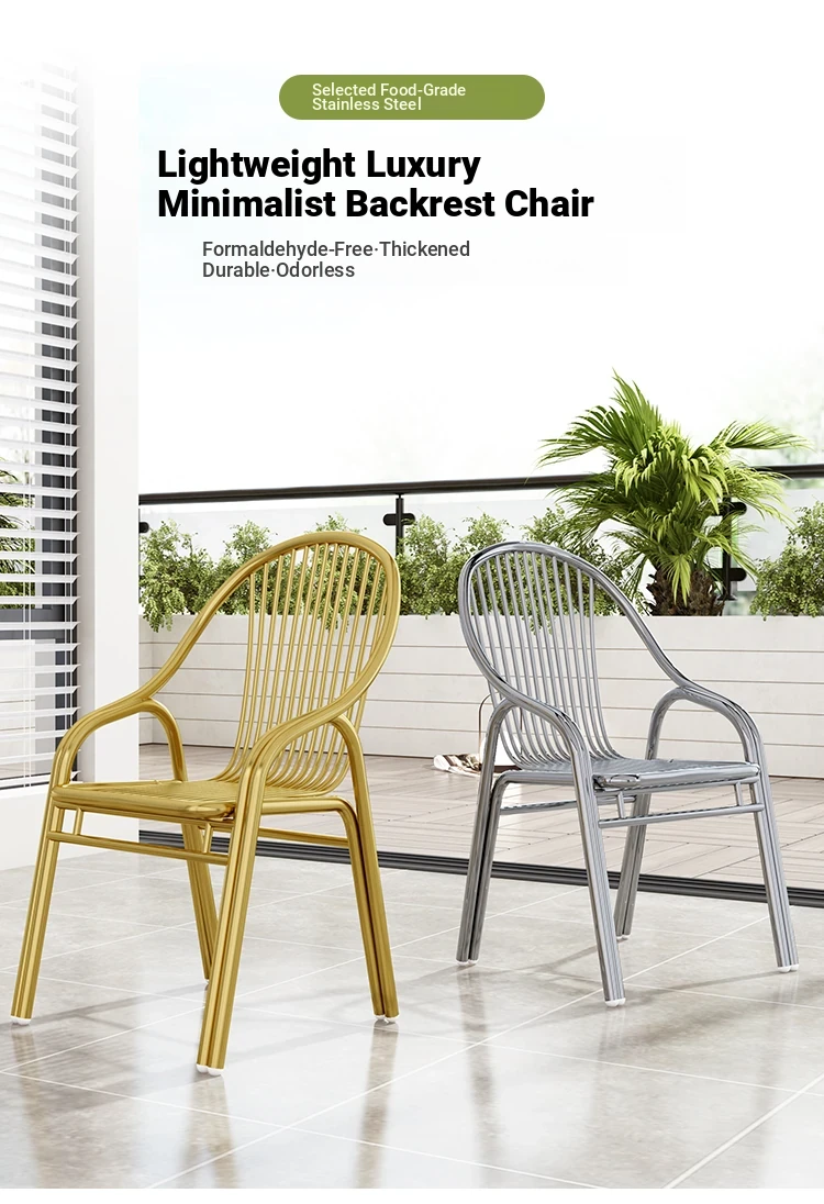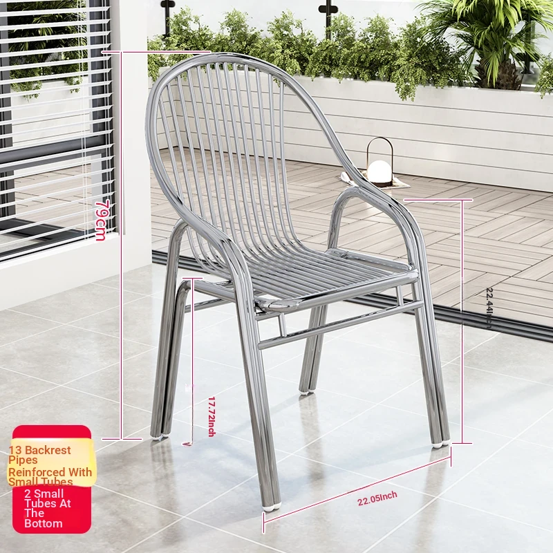 Outdoor Adult Patio Chair with Backrest - Single Metal Leisure Chair in Durable 304 Stainless Steel, Perfect for Home and Dining Use