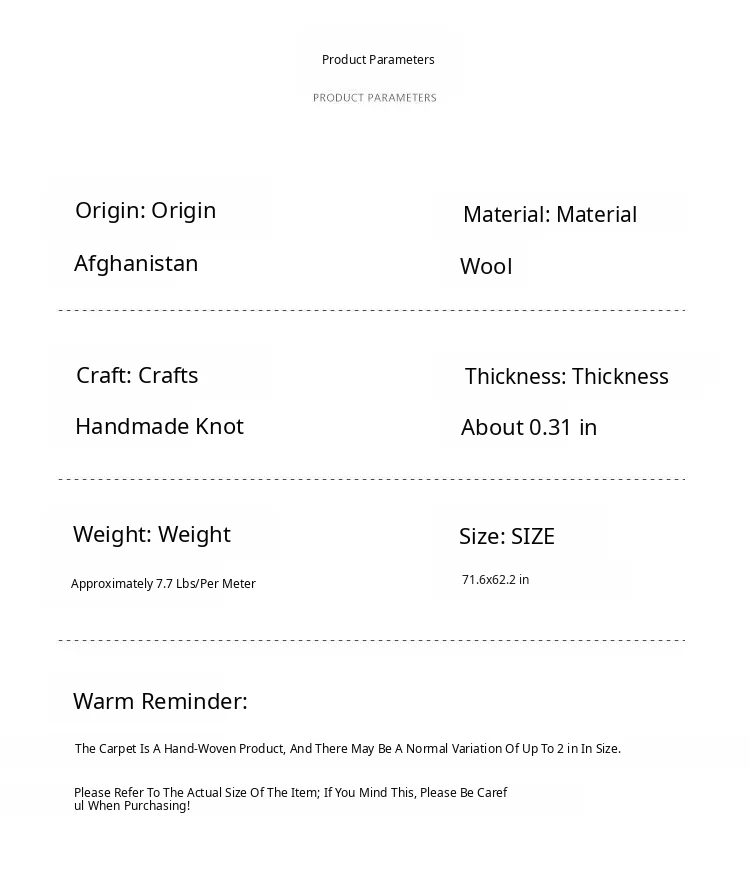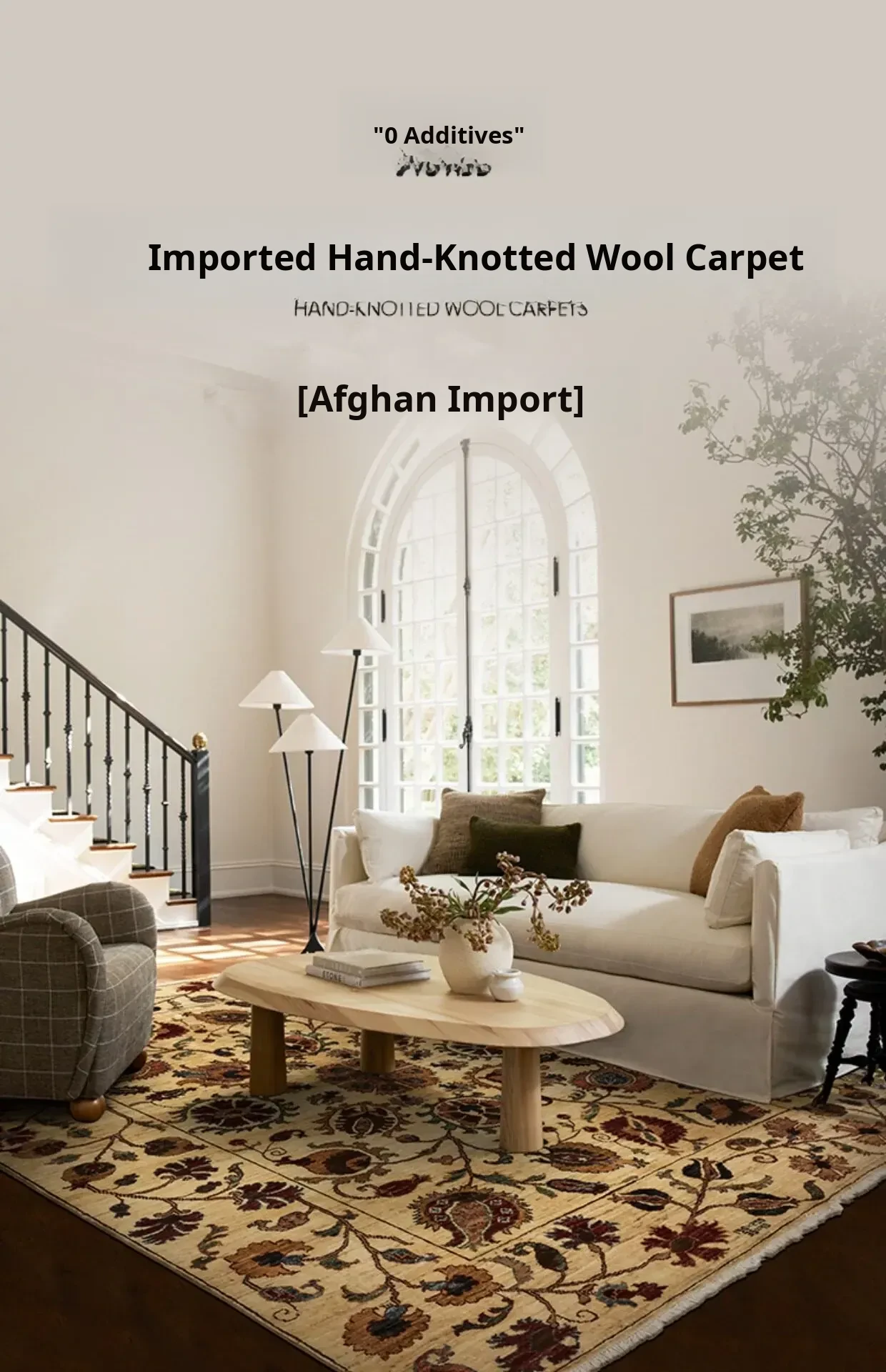 "Premium Hand-Knotted Afghan Wool Carpet - High-Quality, Soundproof, No Glue, No Formaldehyde, Luxurious Feel & Visual Appeal"