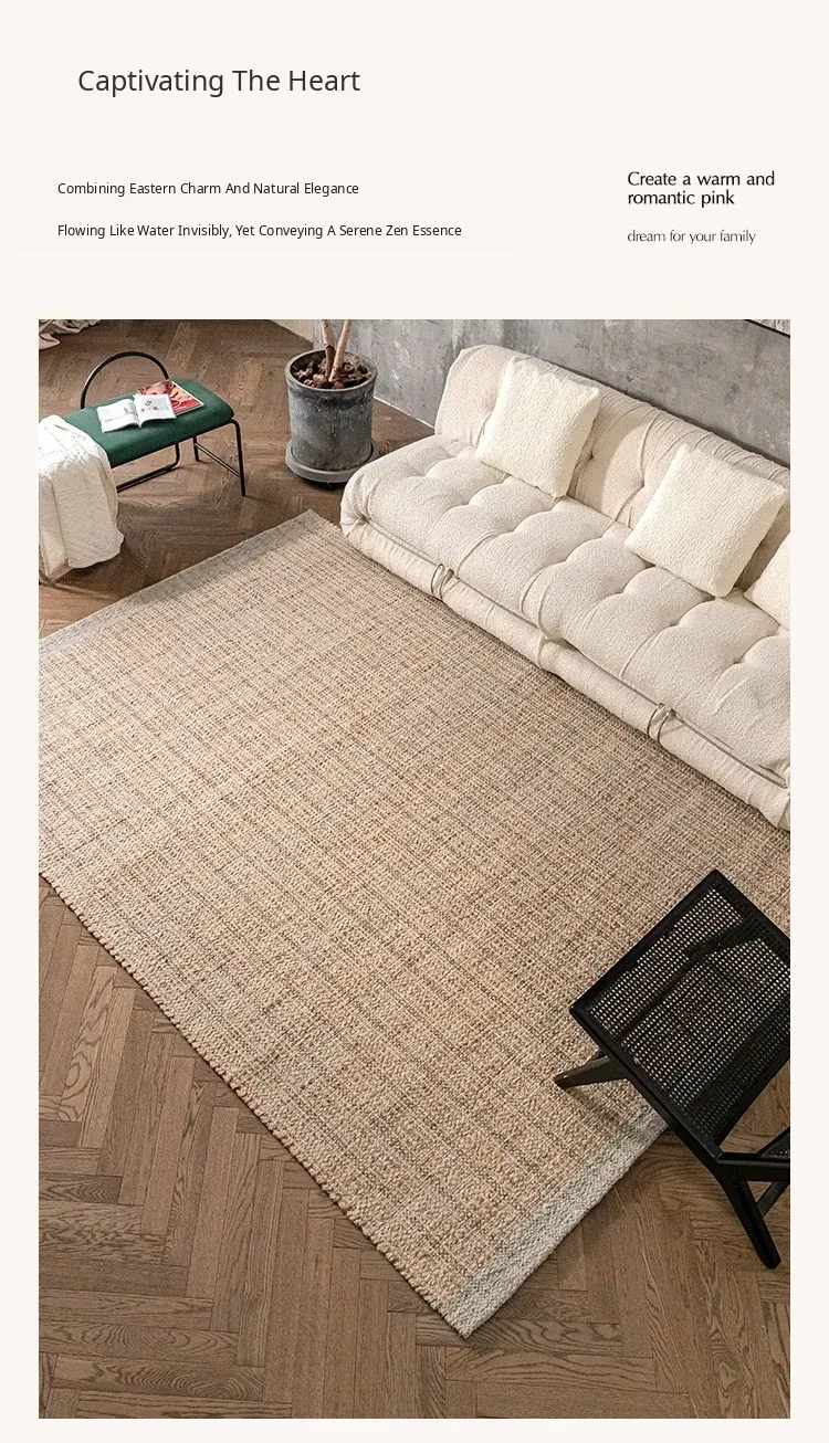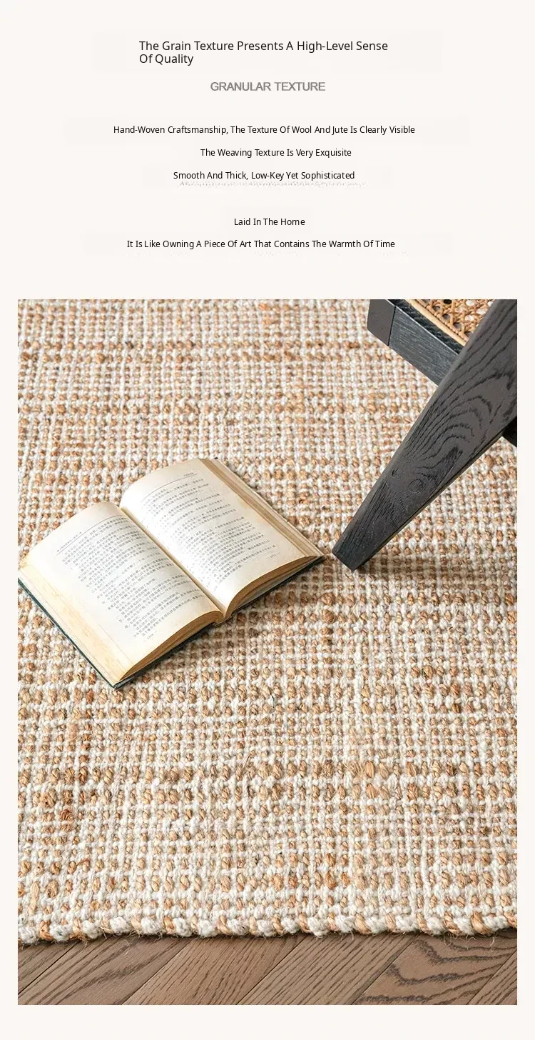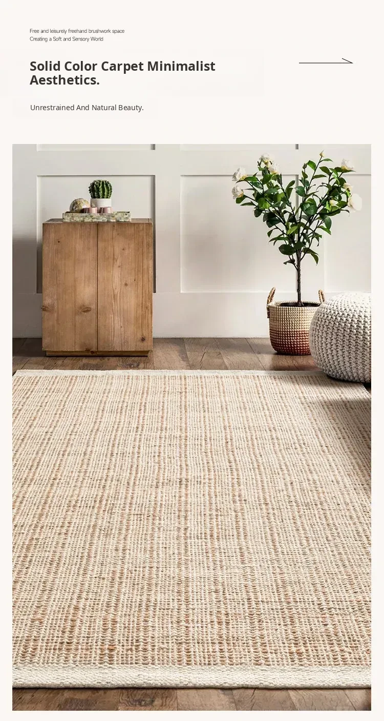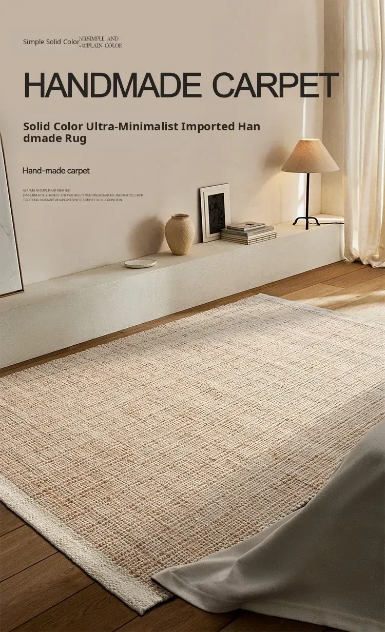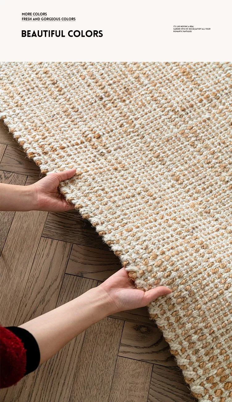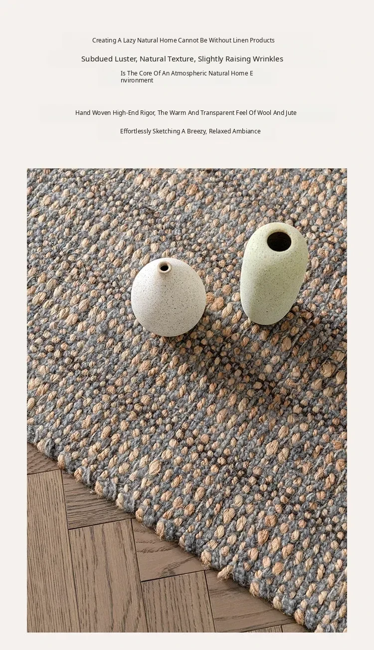 Premium Handmade Jute and Wool Carpet - Modern Japanese Style for Living Room and Bedroom, Eco-Friendly with No Formaldehyde