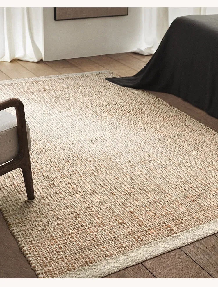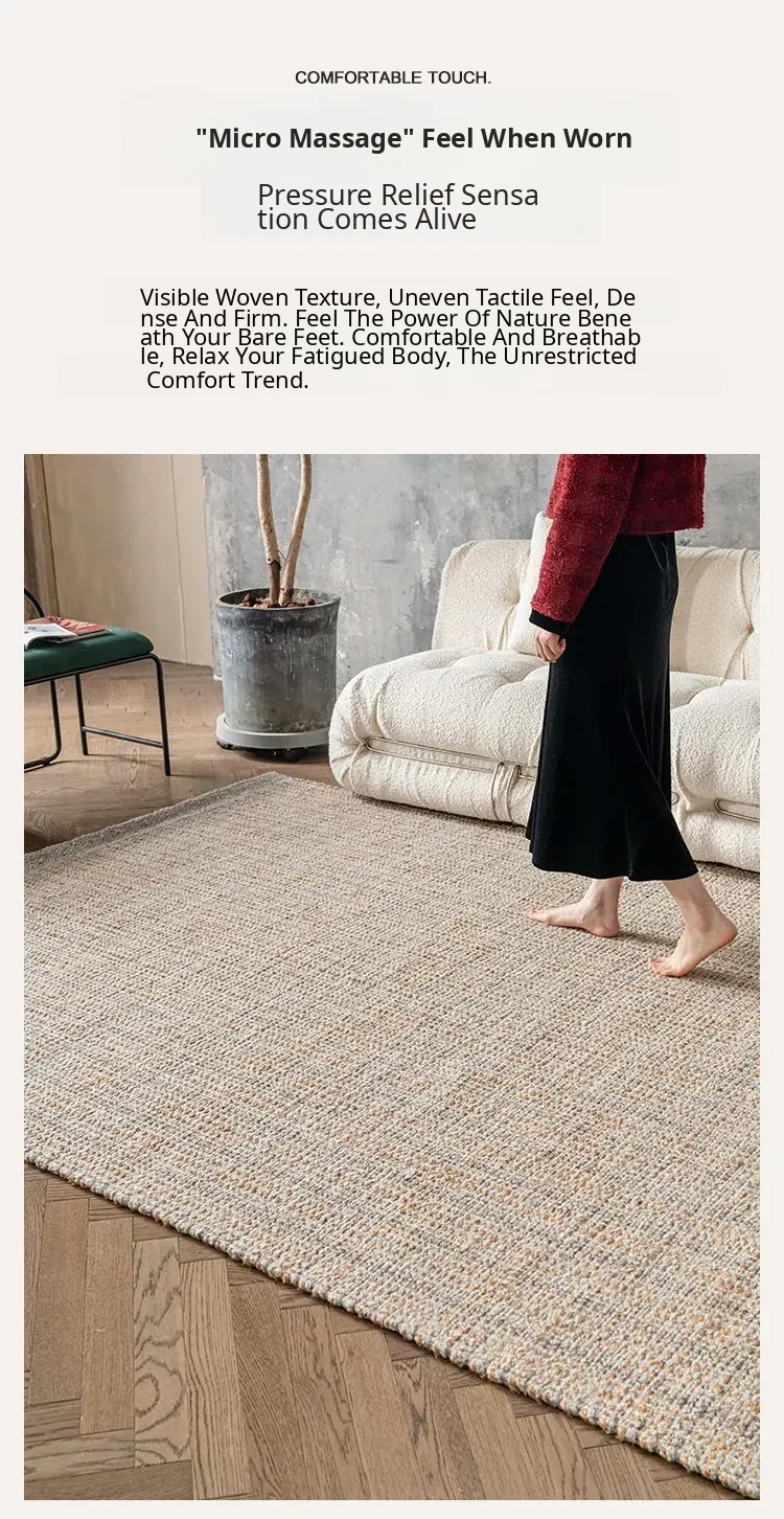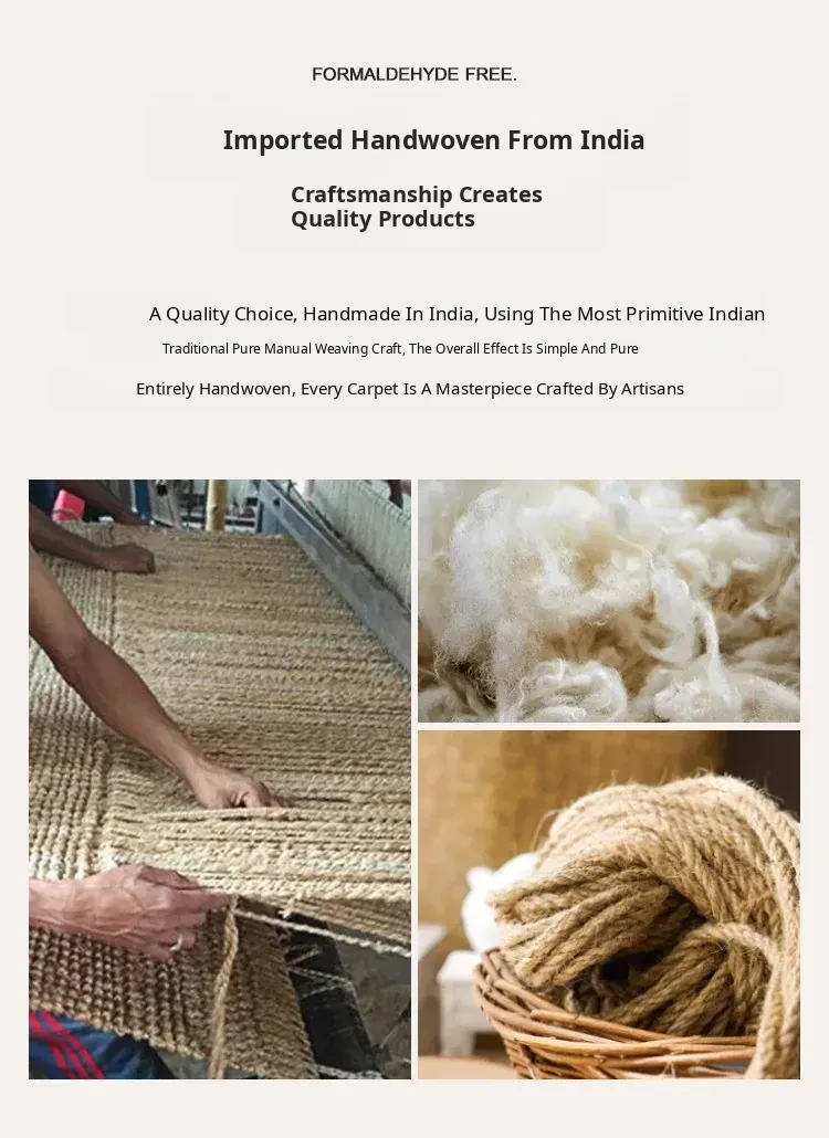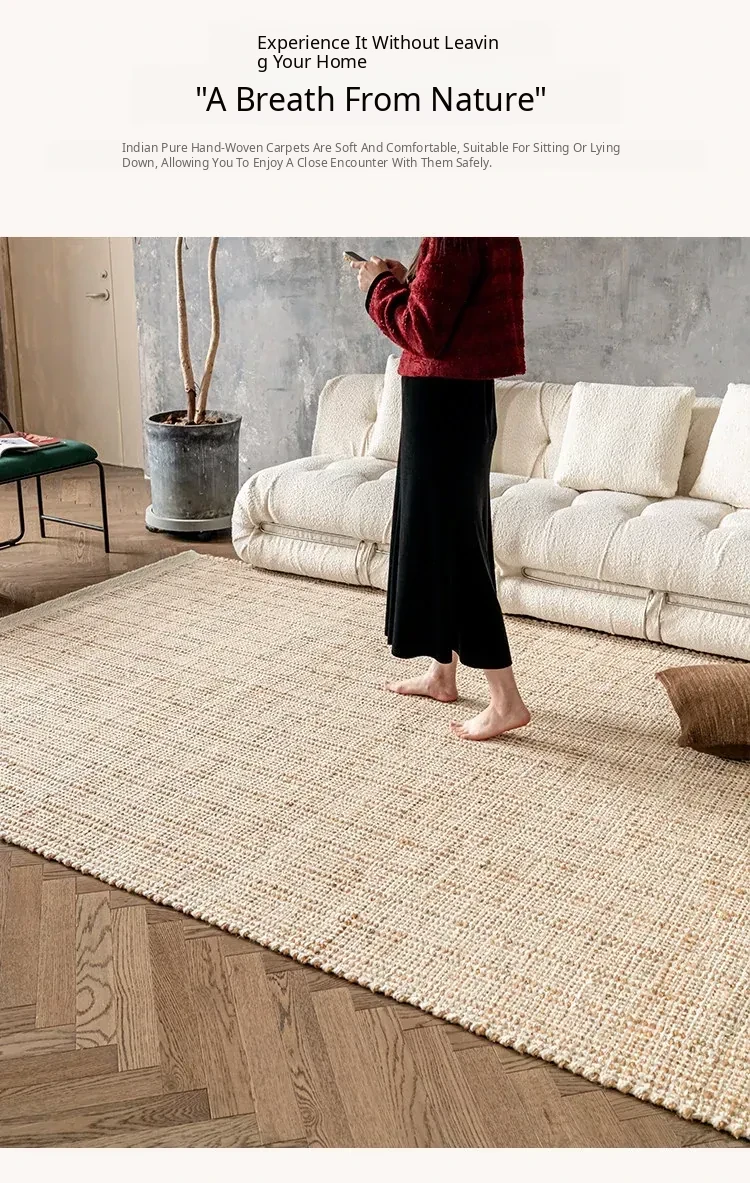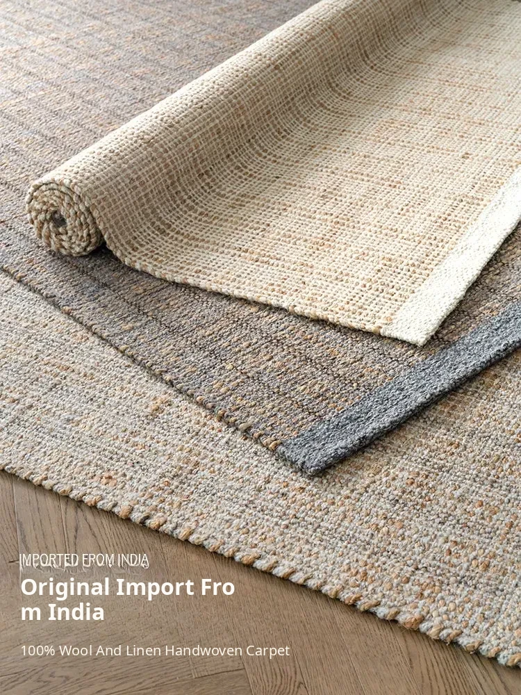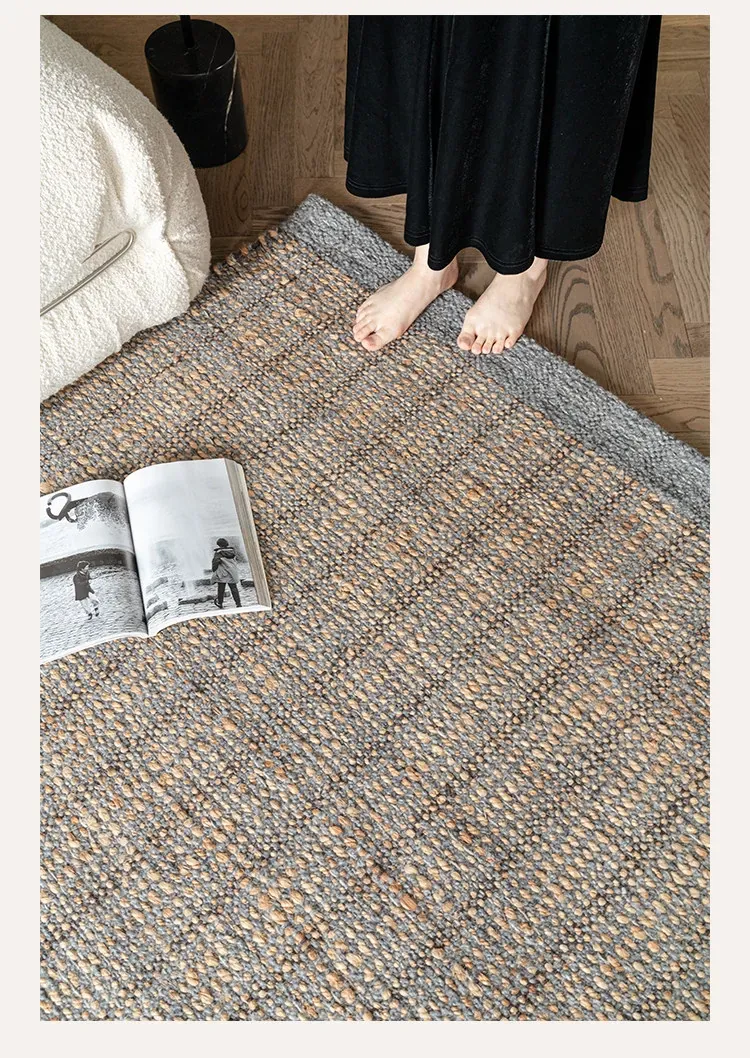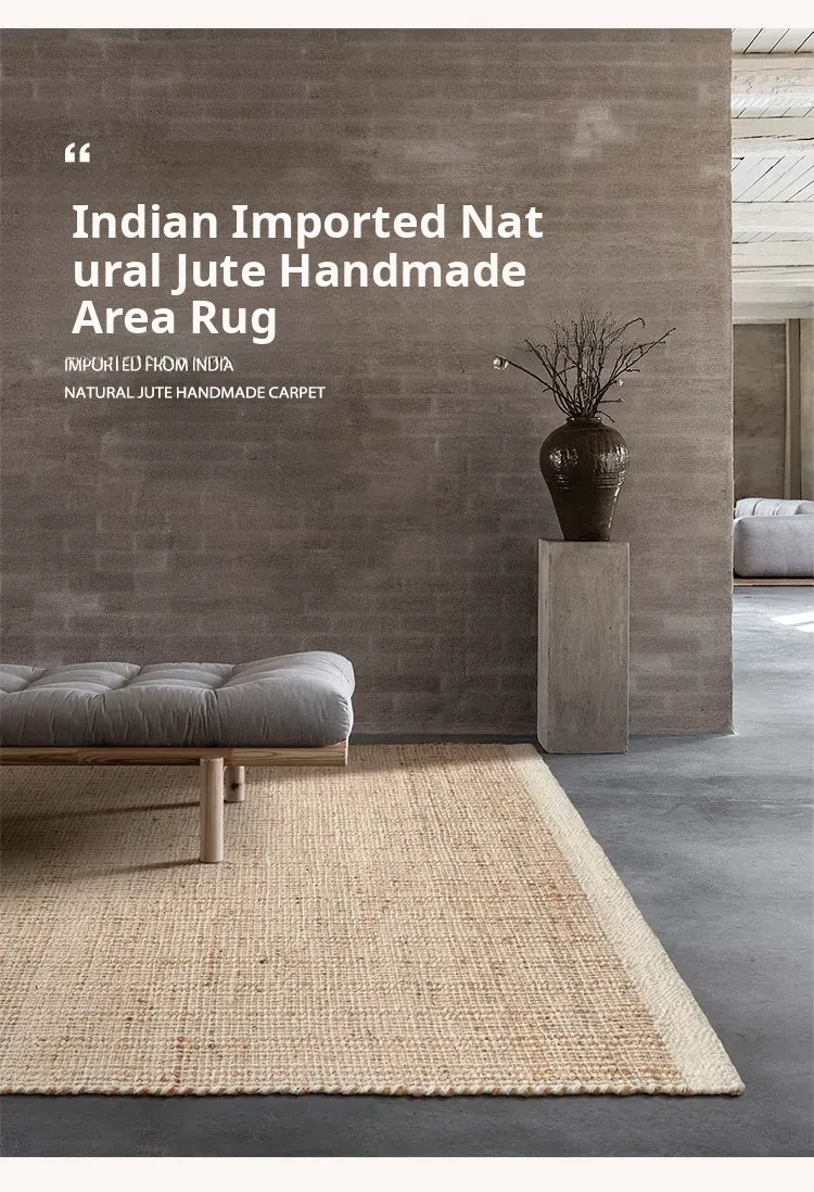 Premium Handmade Jute and Wool Carpet - Modern Japanese Style for Living Room and Bedroom, Eco-Friendly with No Formaldehyde