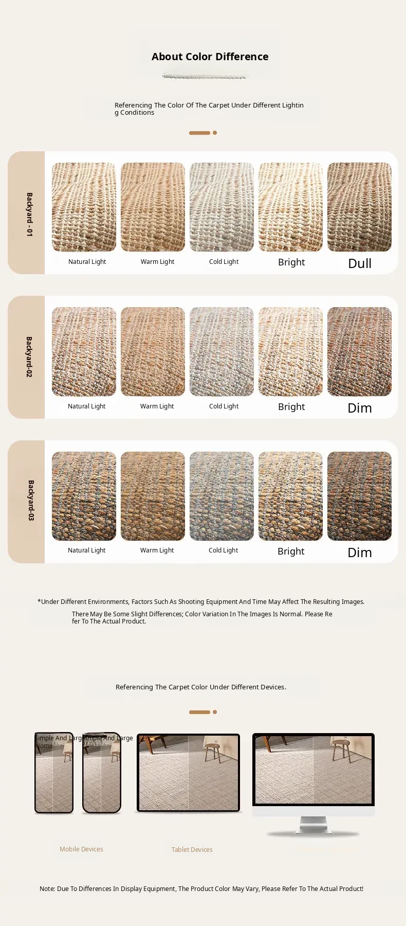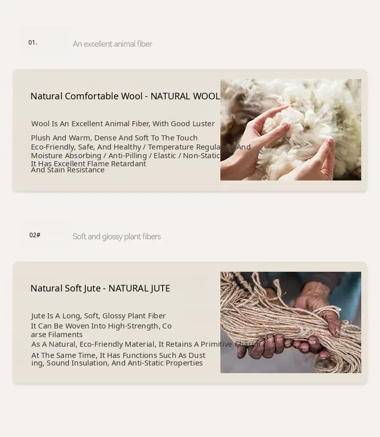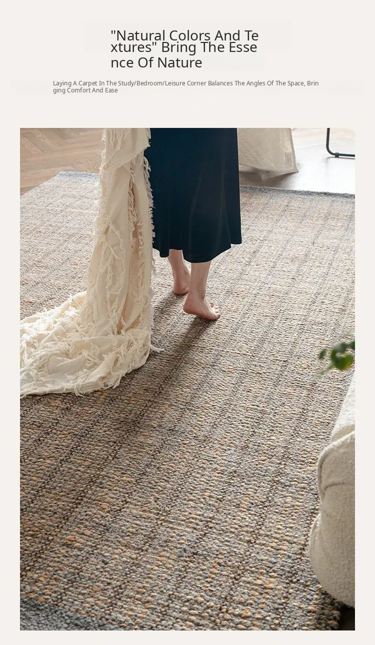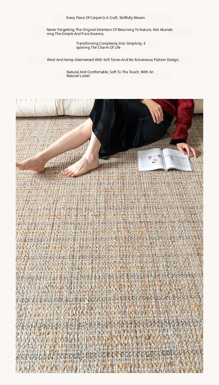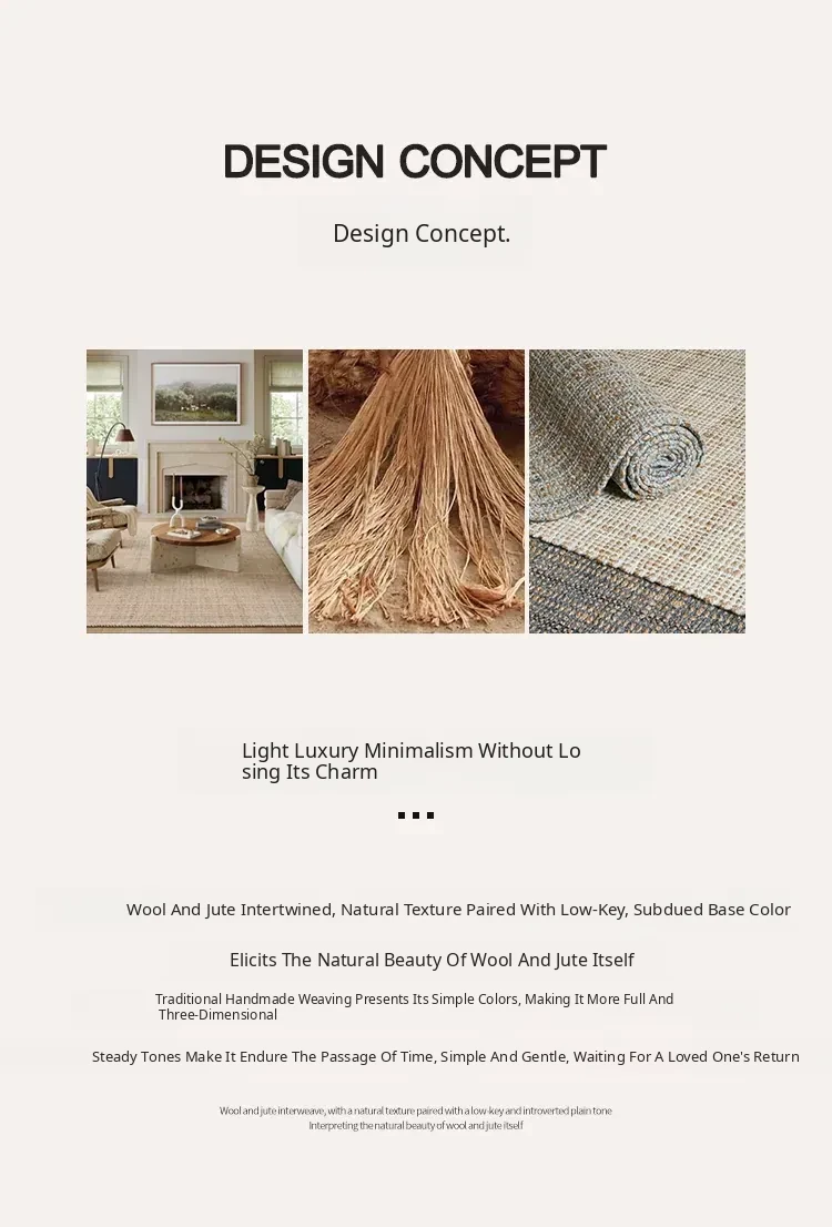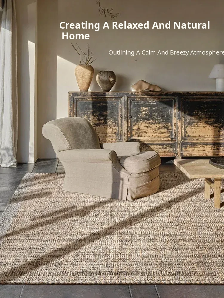 Premium Handmade Jute and Wool Carpet - Modern Japanese Style for Living Room and Bedroom, Eco-Friendly with No Formaldehyde