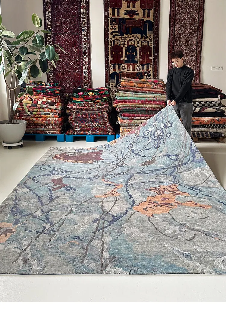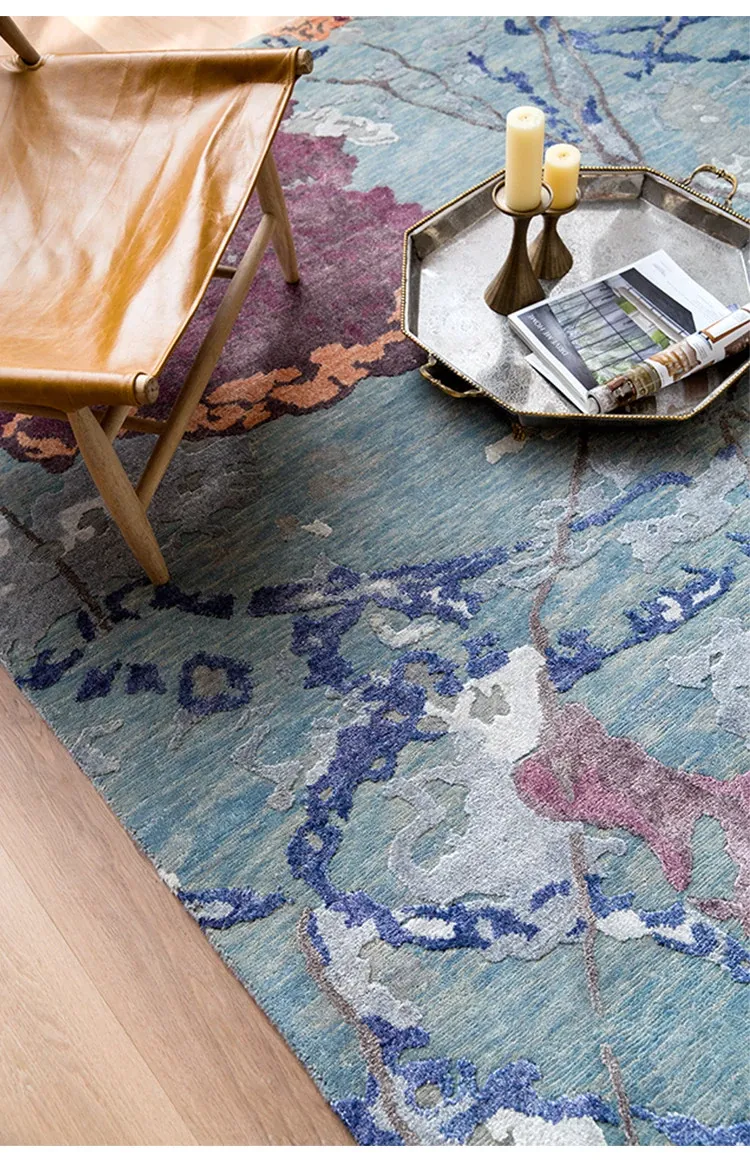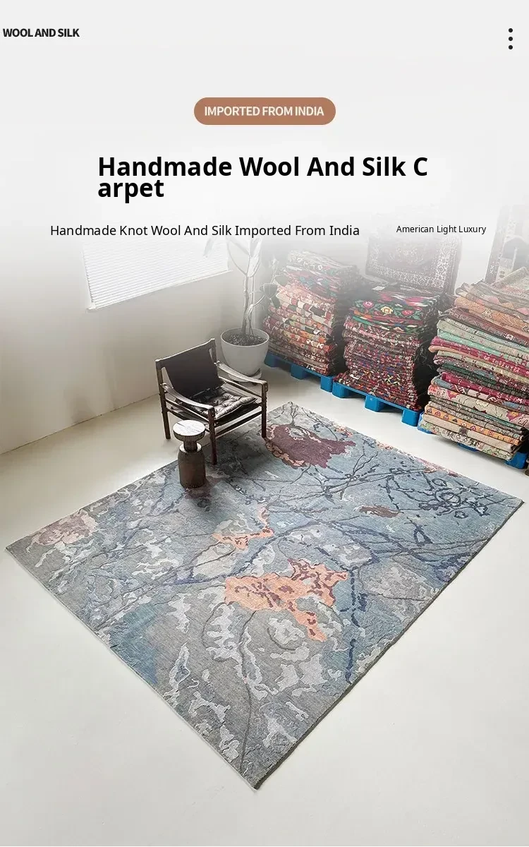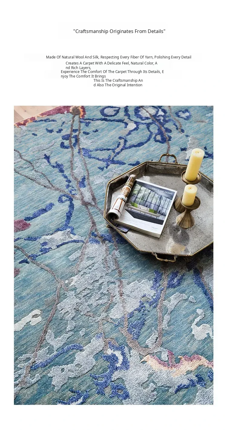 Premium Imported Handcrafted Wool and Silk Blend Area Rug - No Glue, No Formaldehyde, Perfect for Villas, American and Chinese Style Living Rooms and Bedrooms.