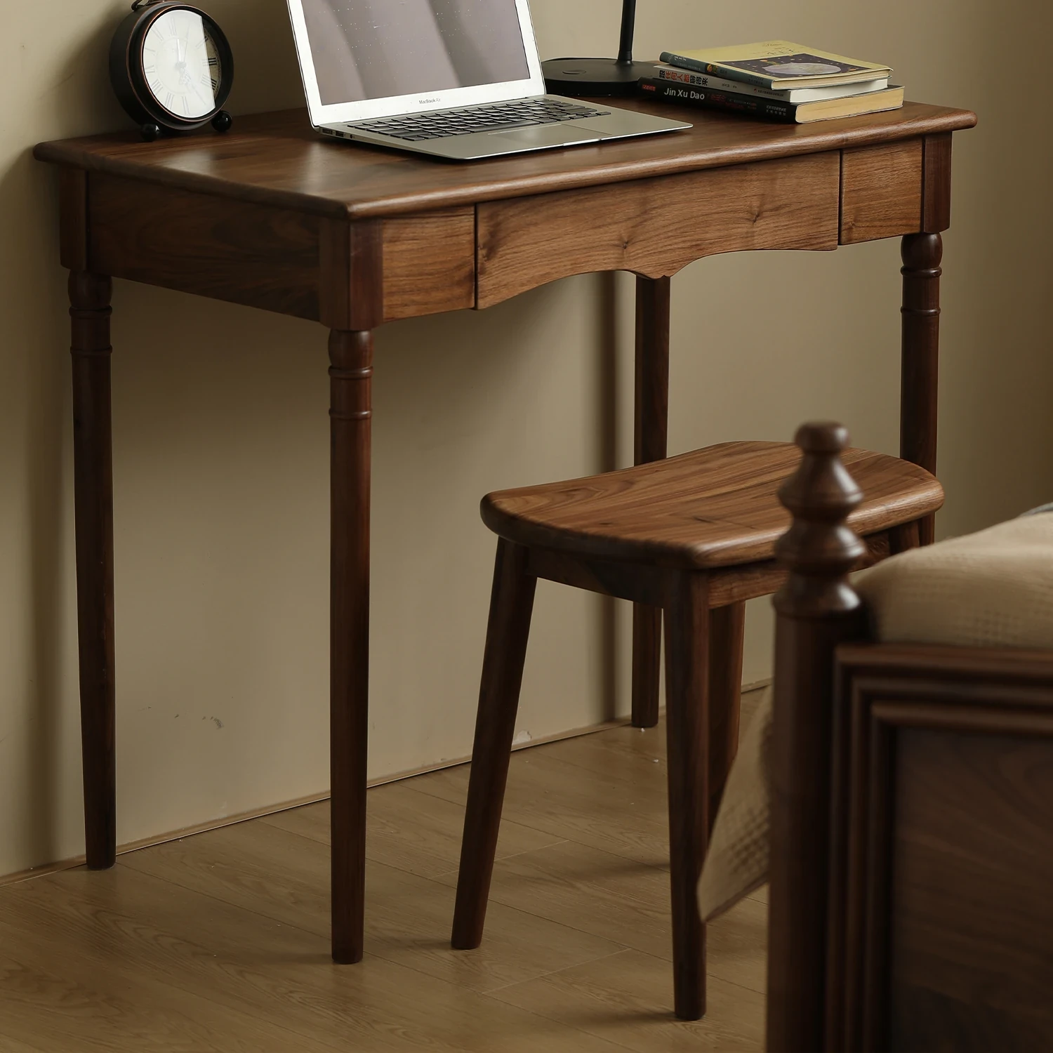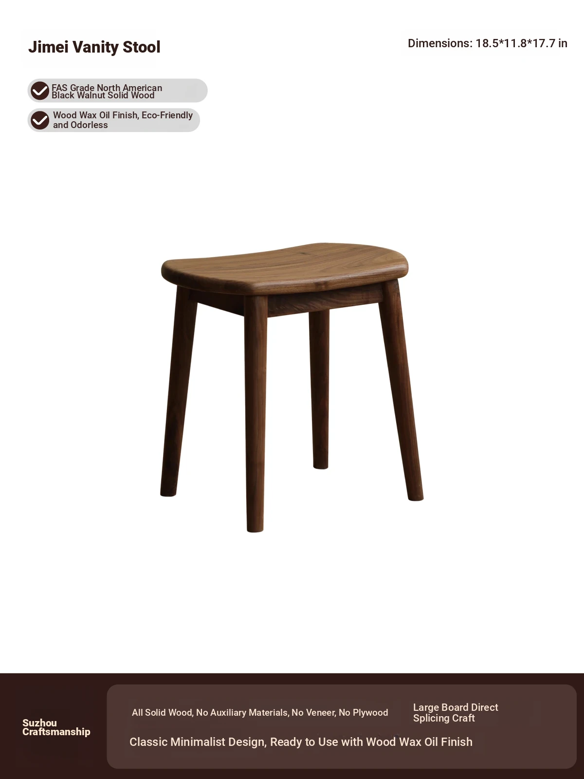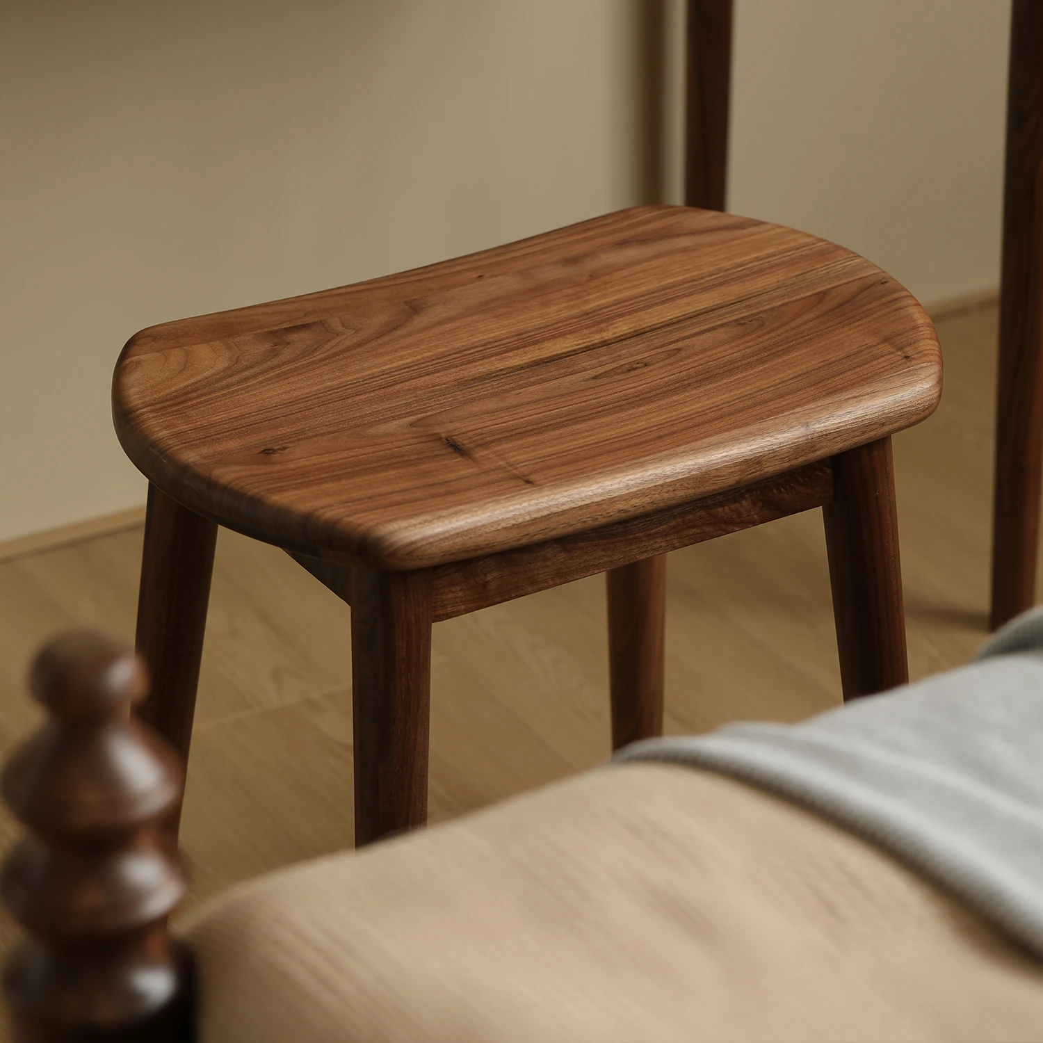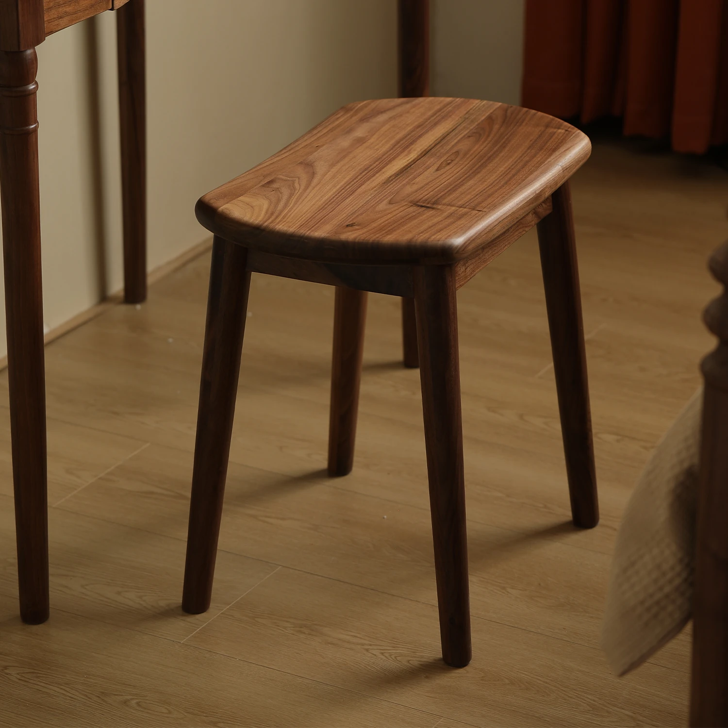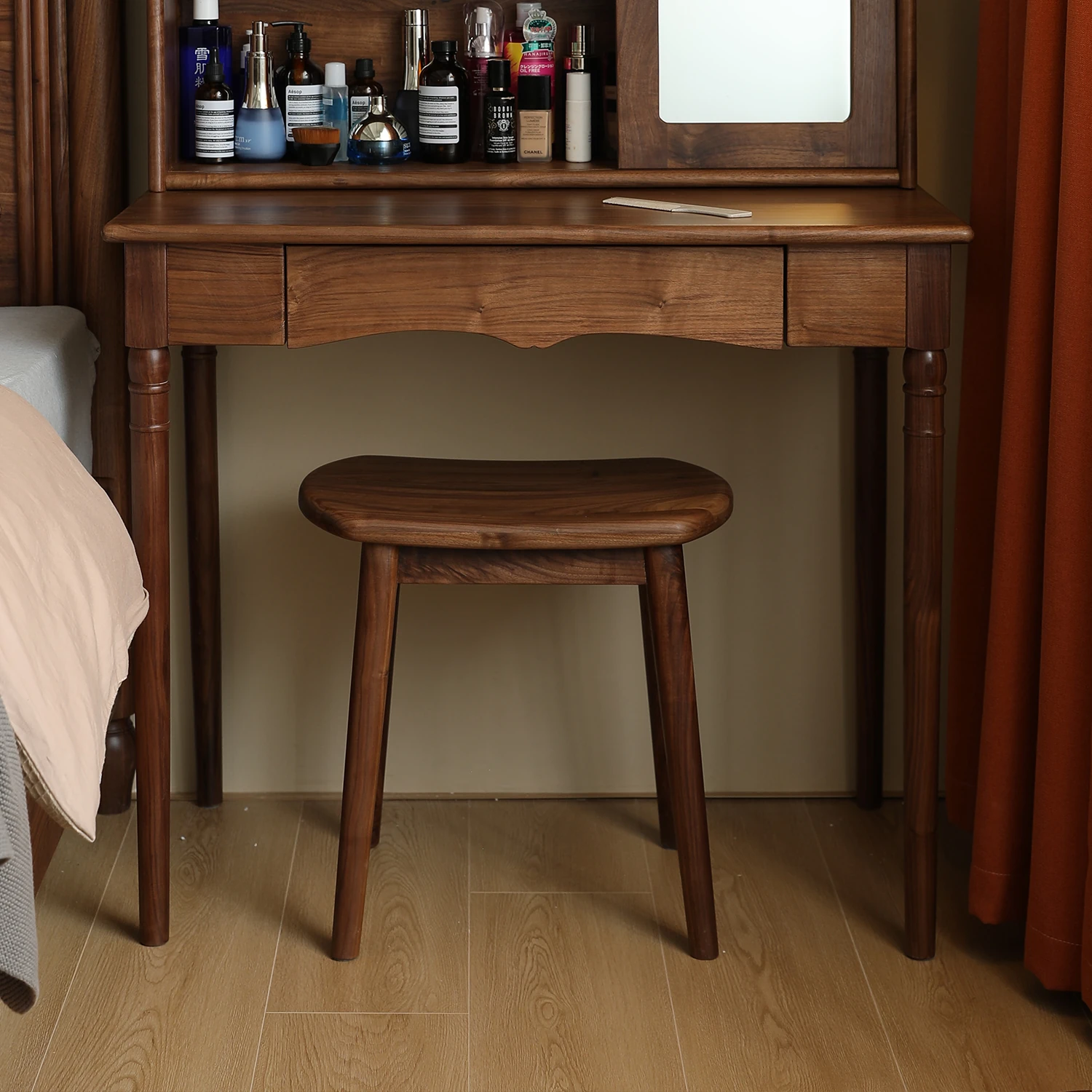 Premium North American Black Walnut Makeup Stool - Elegant Solid Wood Vanity Bench for Women, Perfect for Bedrooms and Shoe Changing.