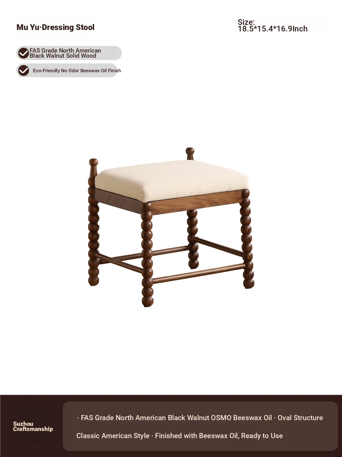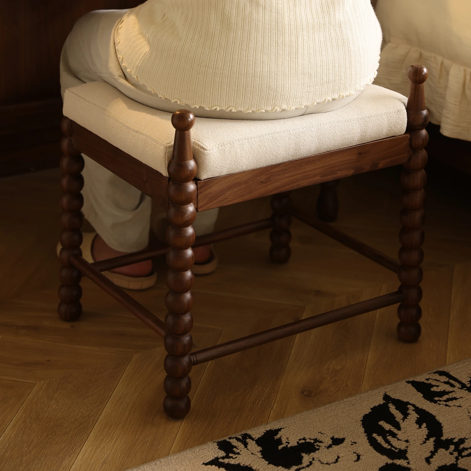 Premium Solid Wood Makeup Stool for Women – North American Black Walnut Vanity Bench, Simple and Elegant Bedroom Stool, Versatile Shoe Bench