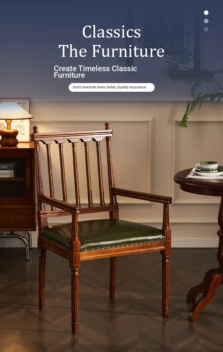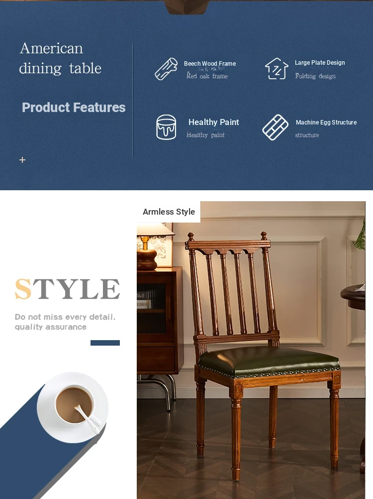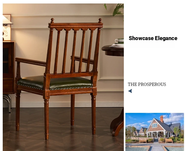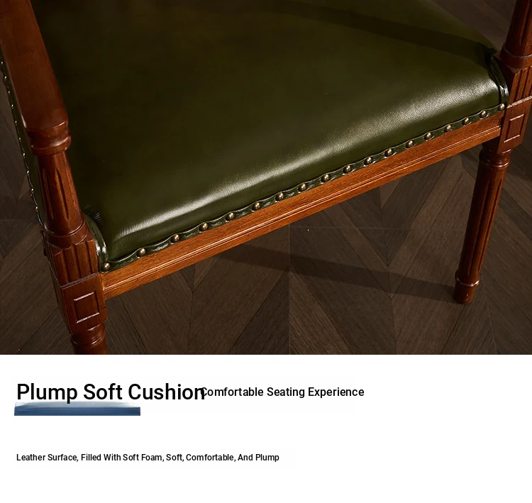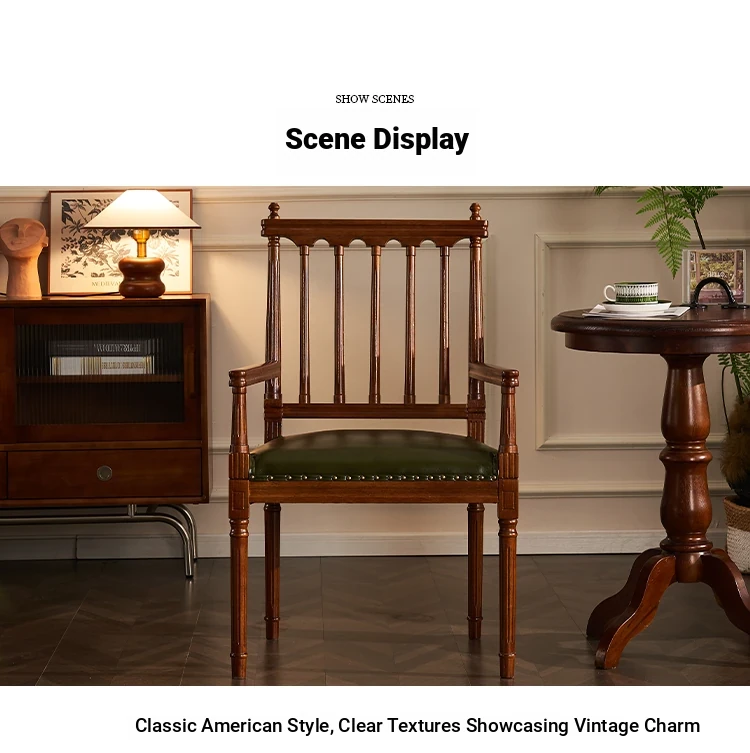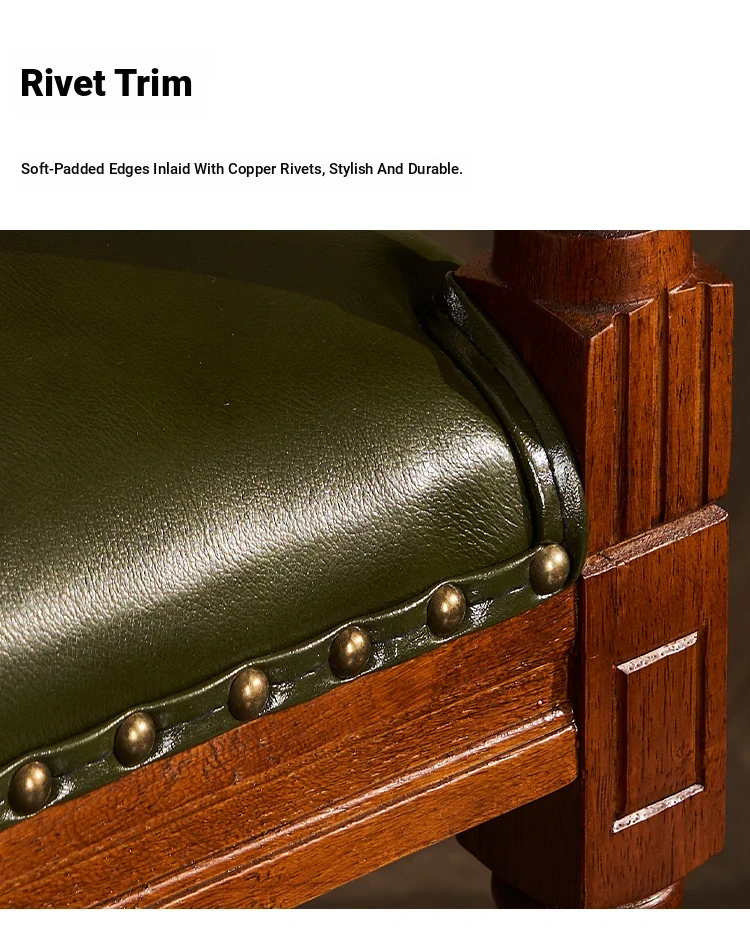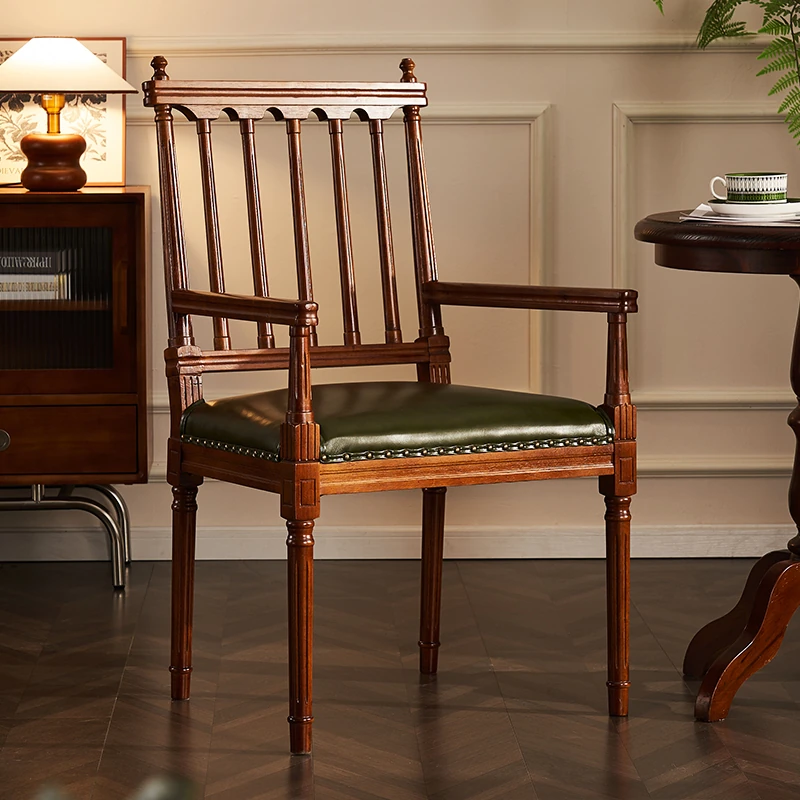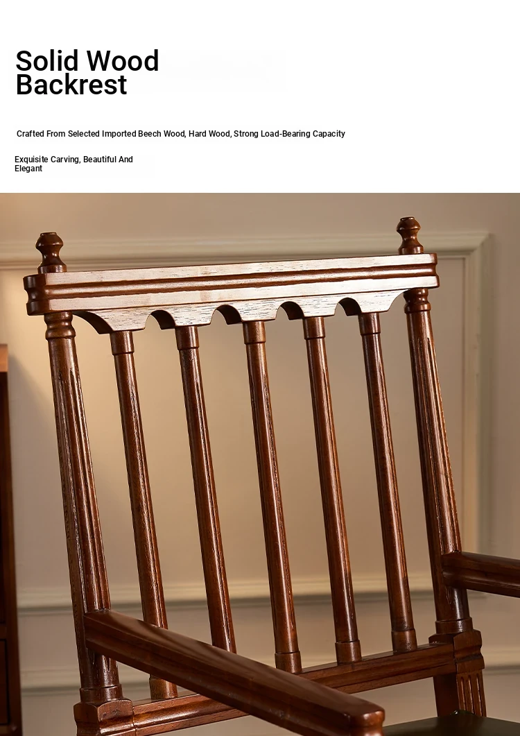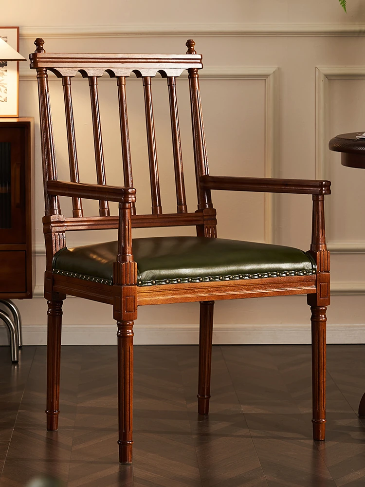 Rustic American Style Genuine Leather Dining Chair - Solid Oak Wood for Hotels, Cafés, and Model Homes. Perfect for Bedrooms and Studies with Comfortable Backrest for Desk Use.