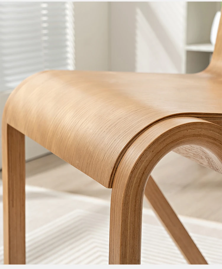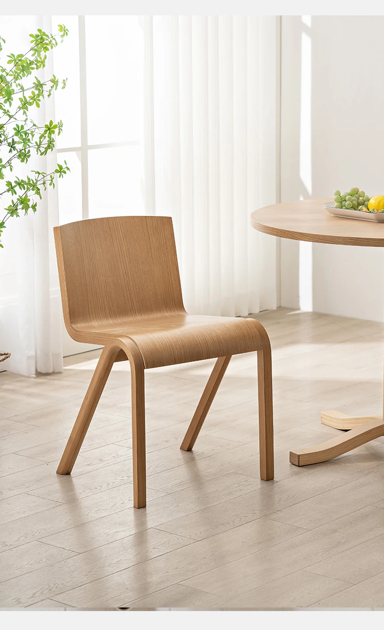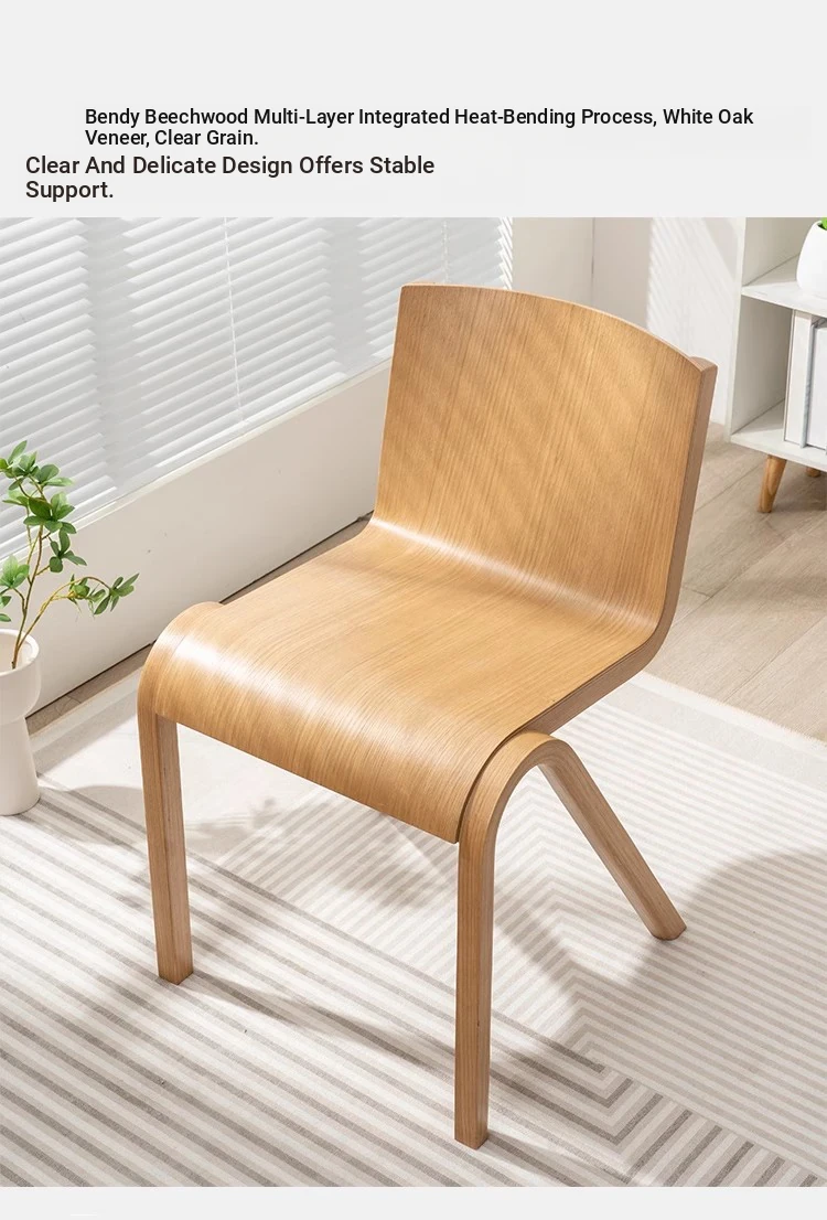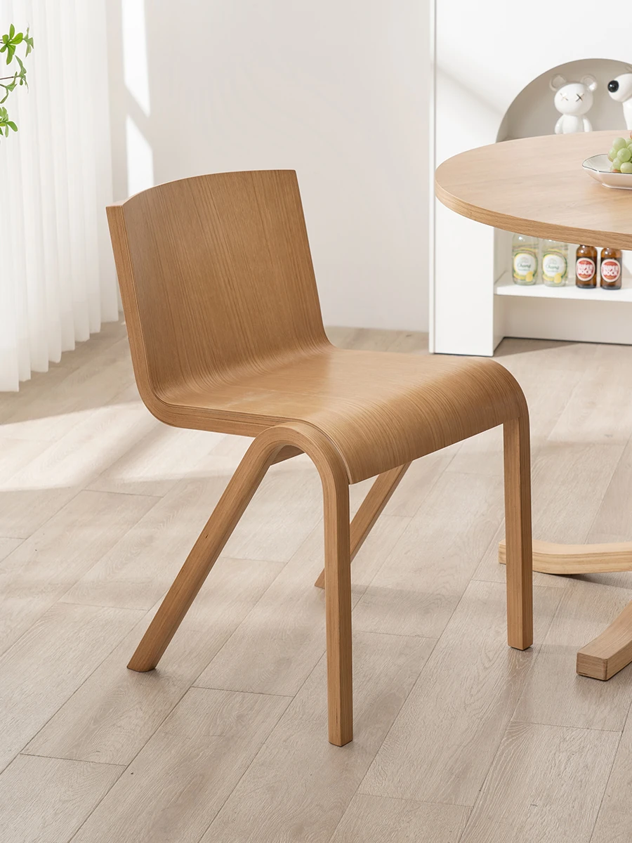 Scandinavian Danish Adult Backrest Chair - Minimalist Coffee Oak Bentwood Designer Dining Chair in Natural Wood Finish for Work and Leisure