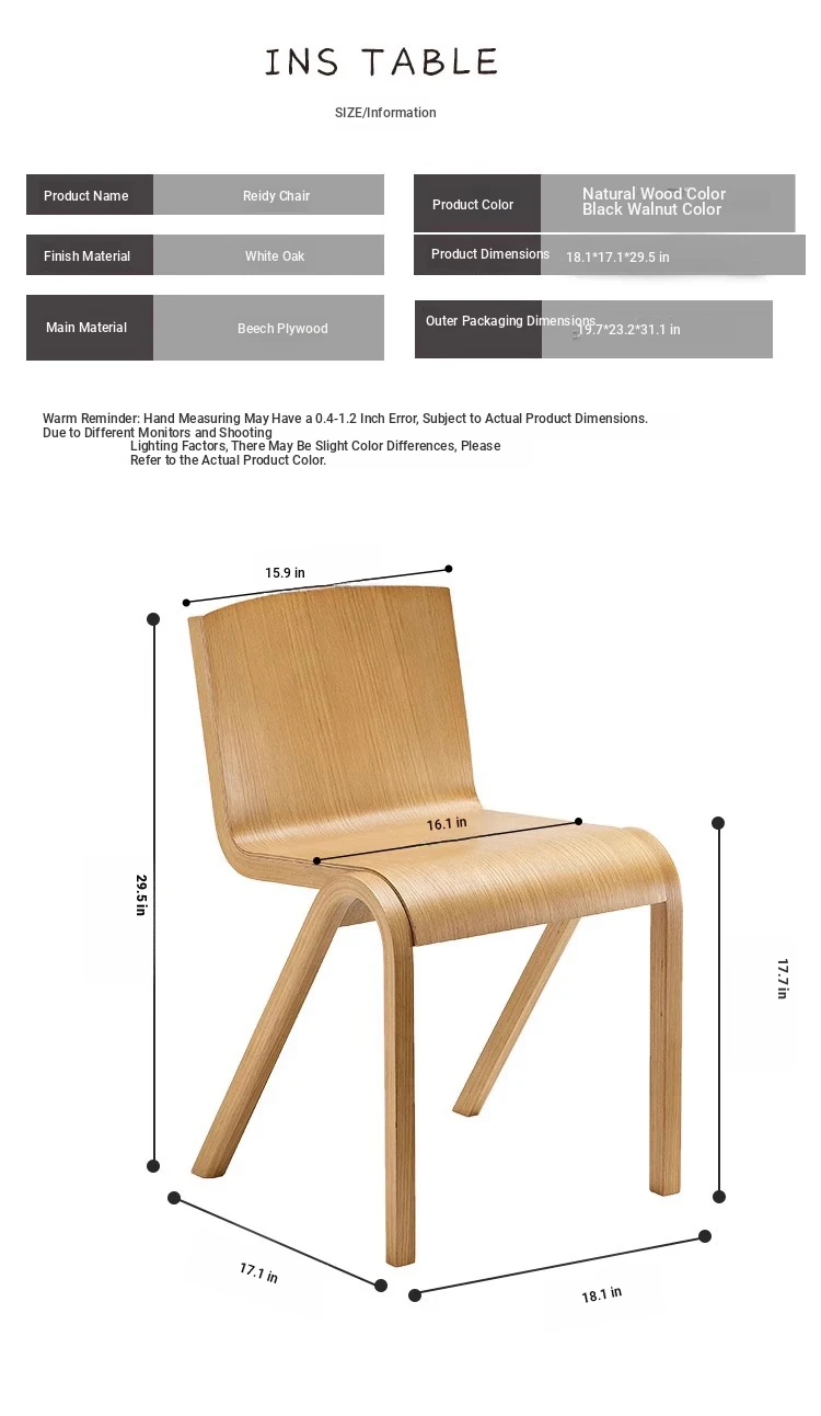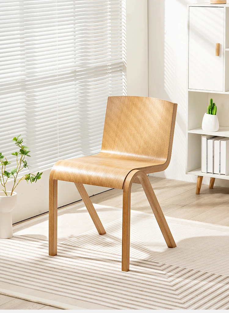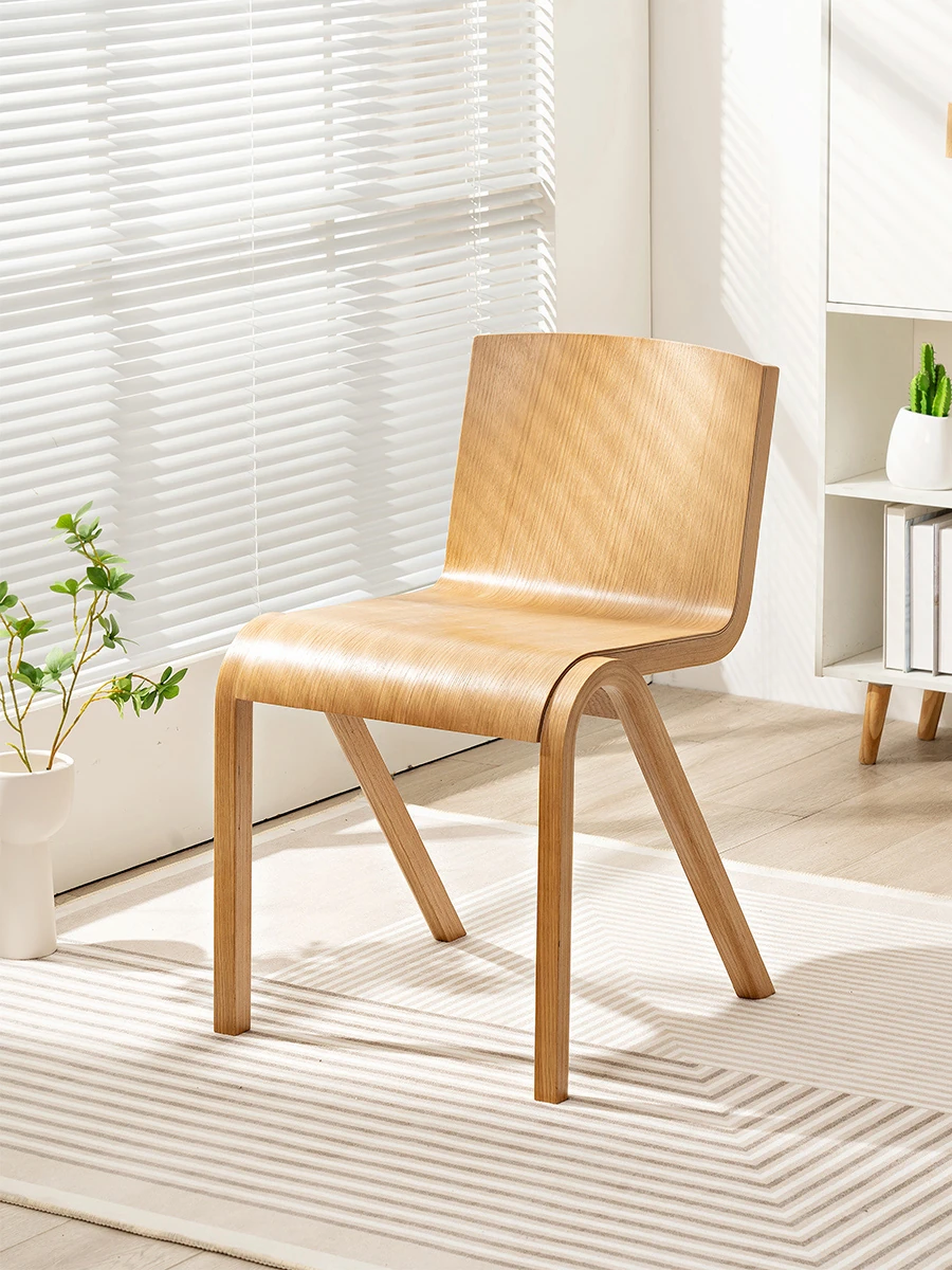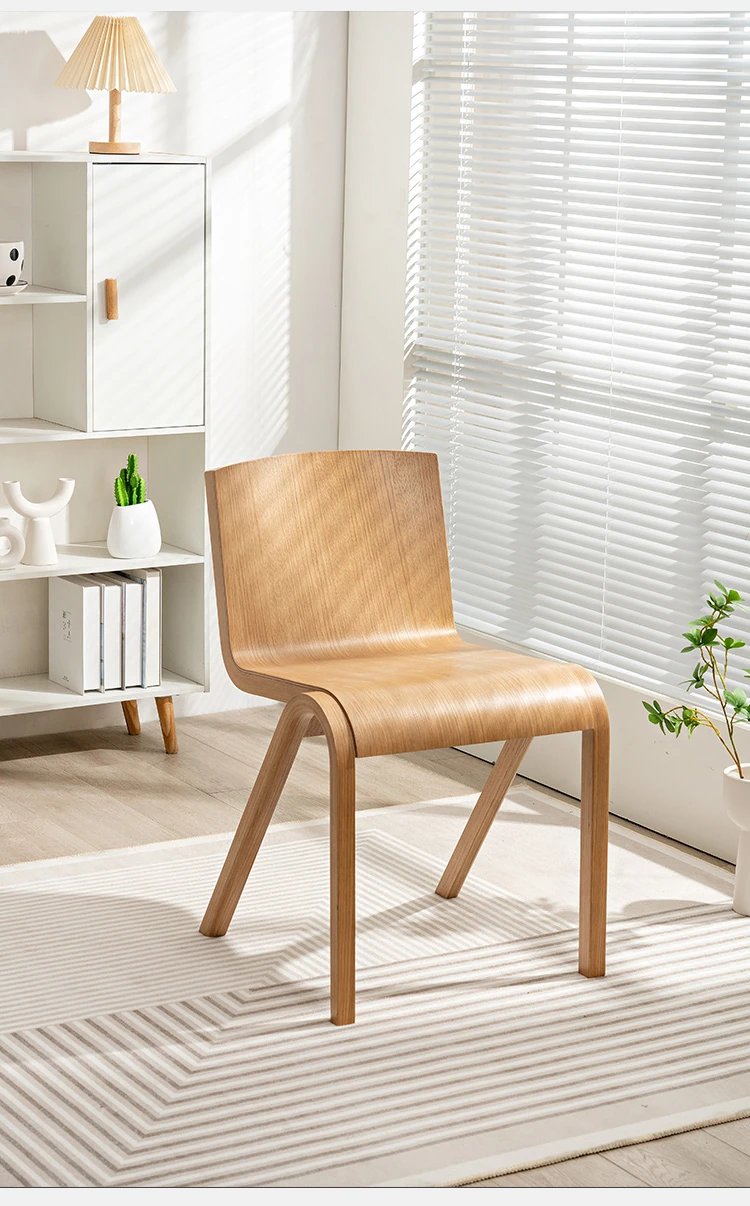 Scandinavian Danish Adult Backrest Chair - Minimalist Coffee Oak Bentwood Designer Dining Chair in Natural Wood Finish for Work and Leisure