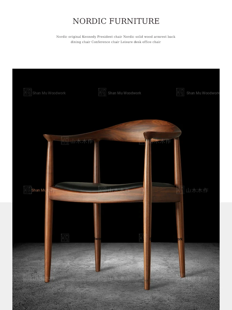 Shanmu Nordic Solid Wood Presidential Chair – Original Design for Hotels, Restaurants, Cafes, Home Offices, Bedrooms, and Dining Rooms – Perfect Blend of Elegance and Comfort