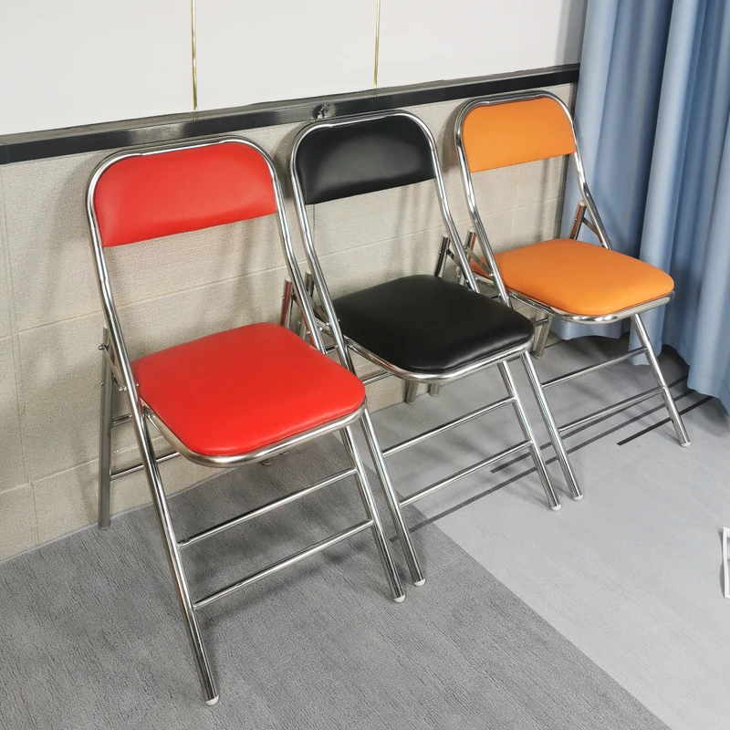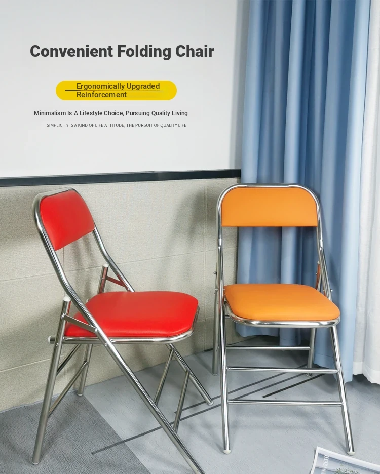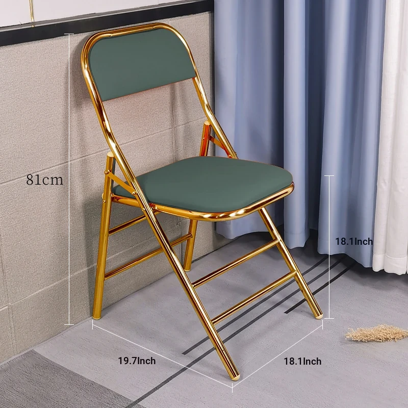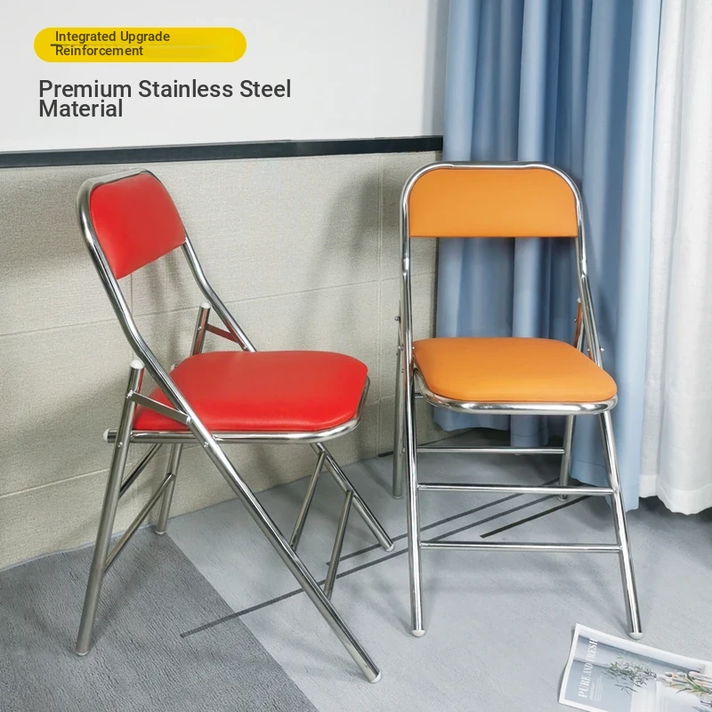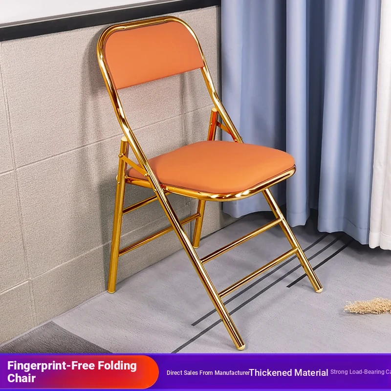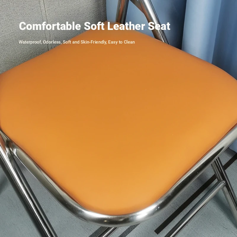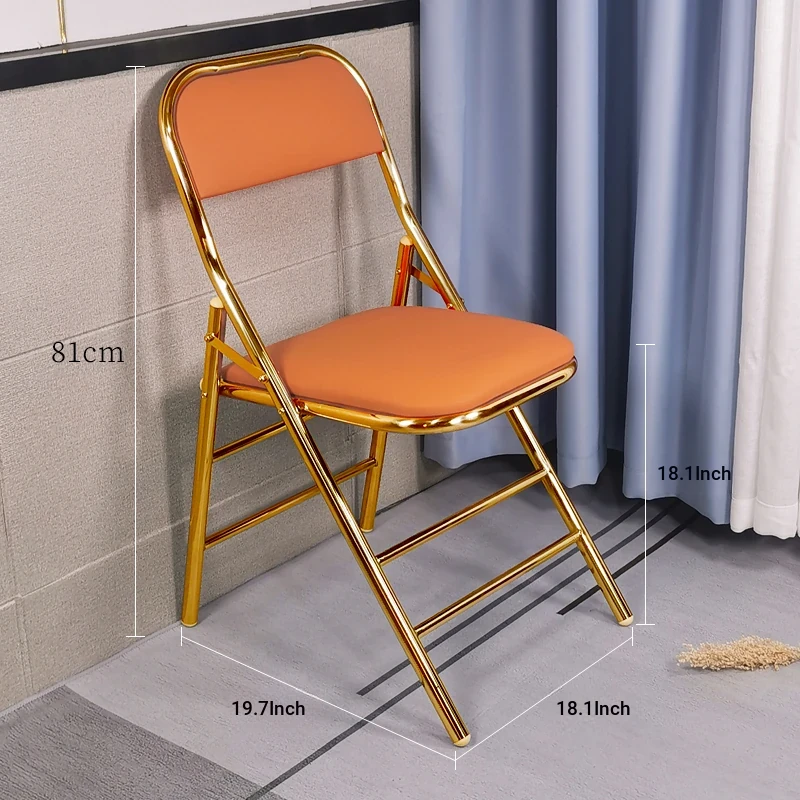 Sleek Stainless Steel Folding Chair - Modern Nordic Leather Seat, Trendy Dining Chair with Backrest, Perfect for Makeup and Training Sessions