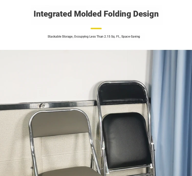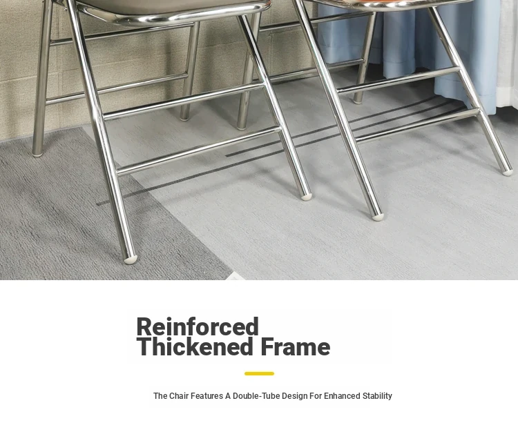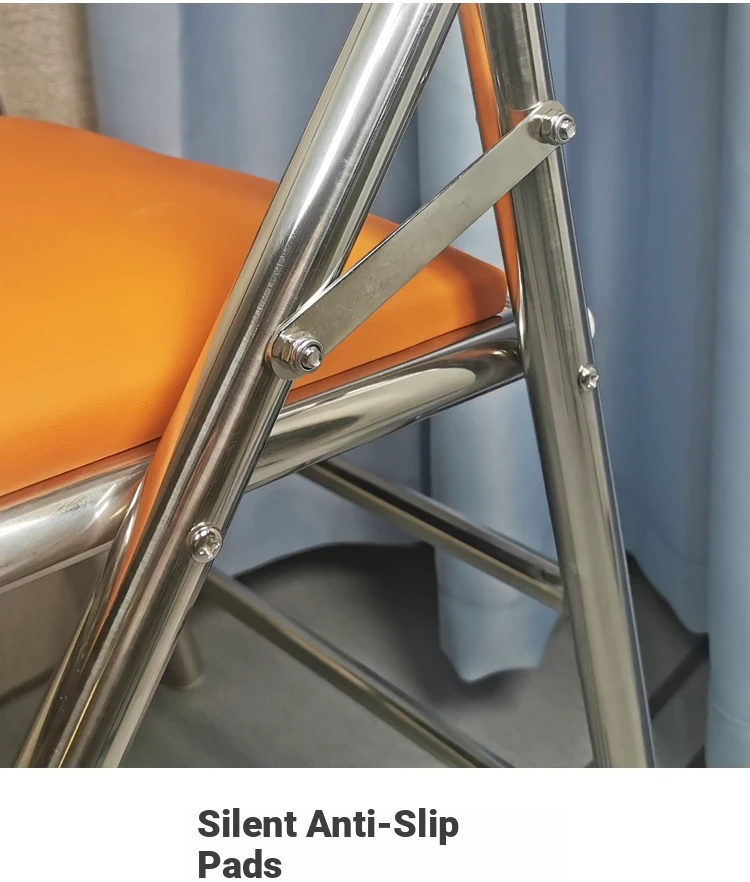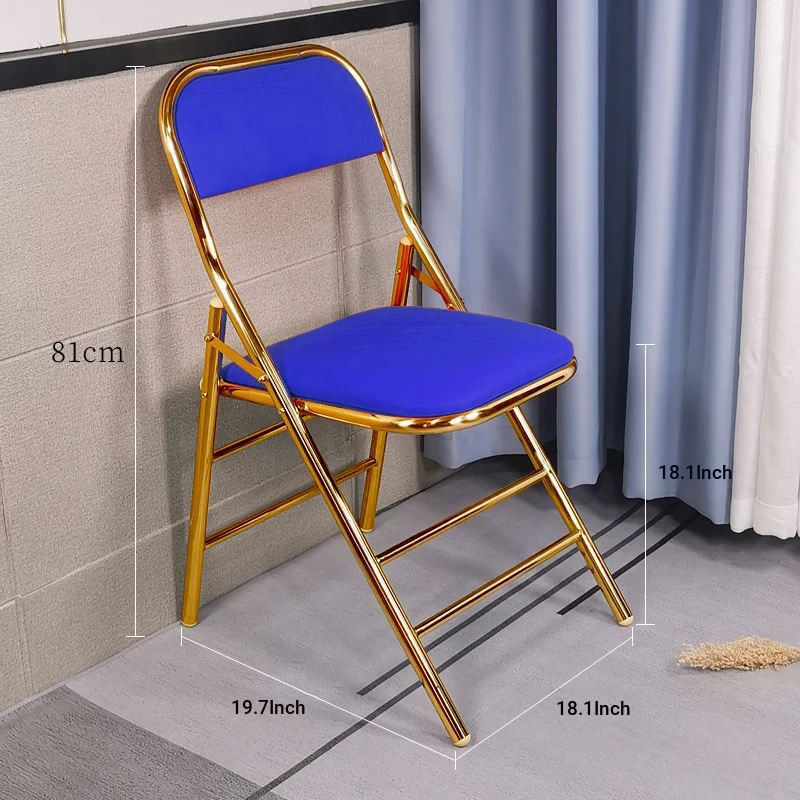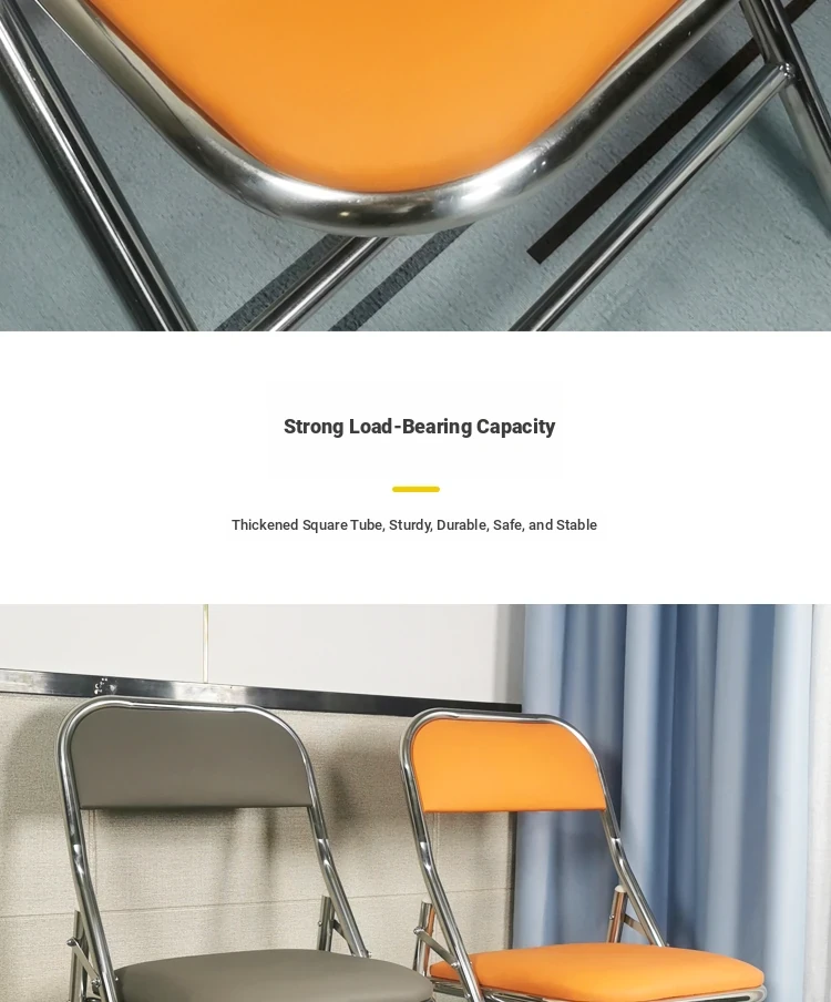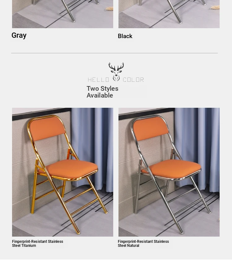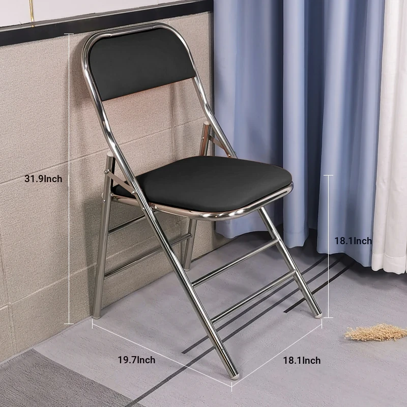 Sleek Stainless Steel Folding Chair - Modern Nordic Leather Seat, Trendy Dining Chair with Backrest, Perfect for Makeup and Training Sessions