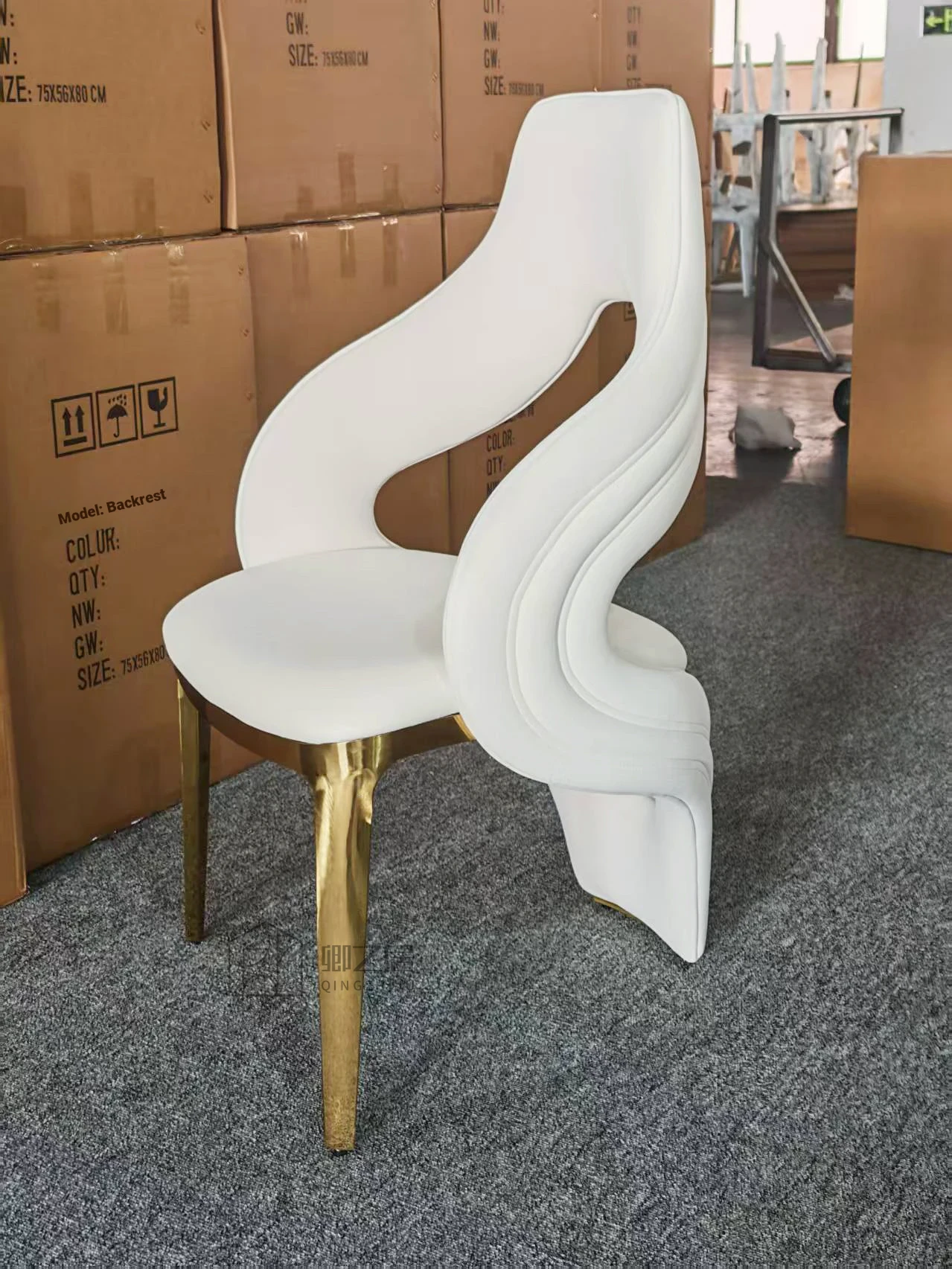 White [ultra-fiber leather fabric + stainless steel titanium gold legs]]