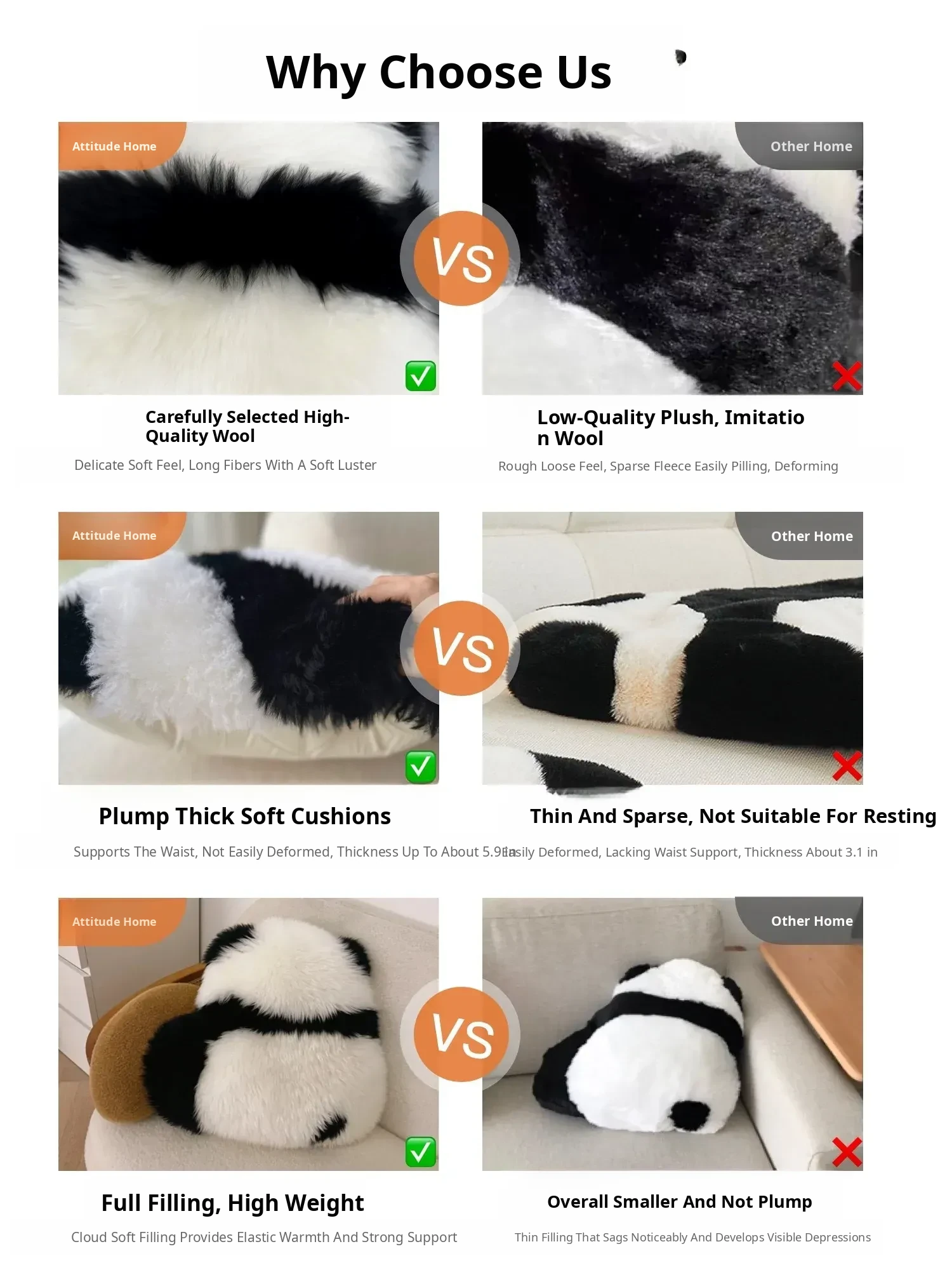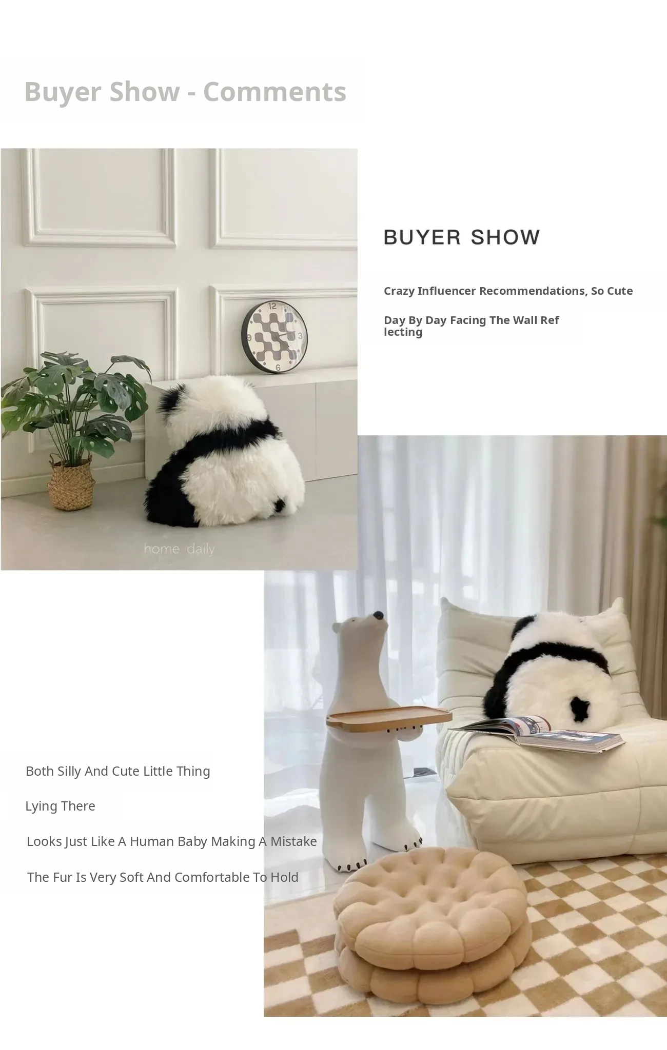 Tip: the Panda Pillow Is Made of Real Sheep Fur, Please Do Not Wash It! !