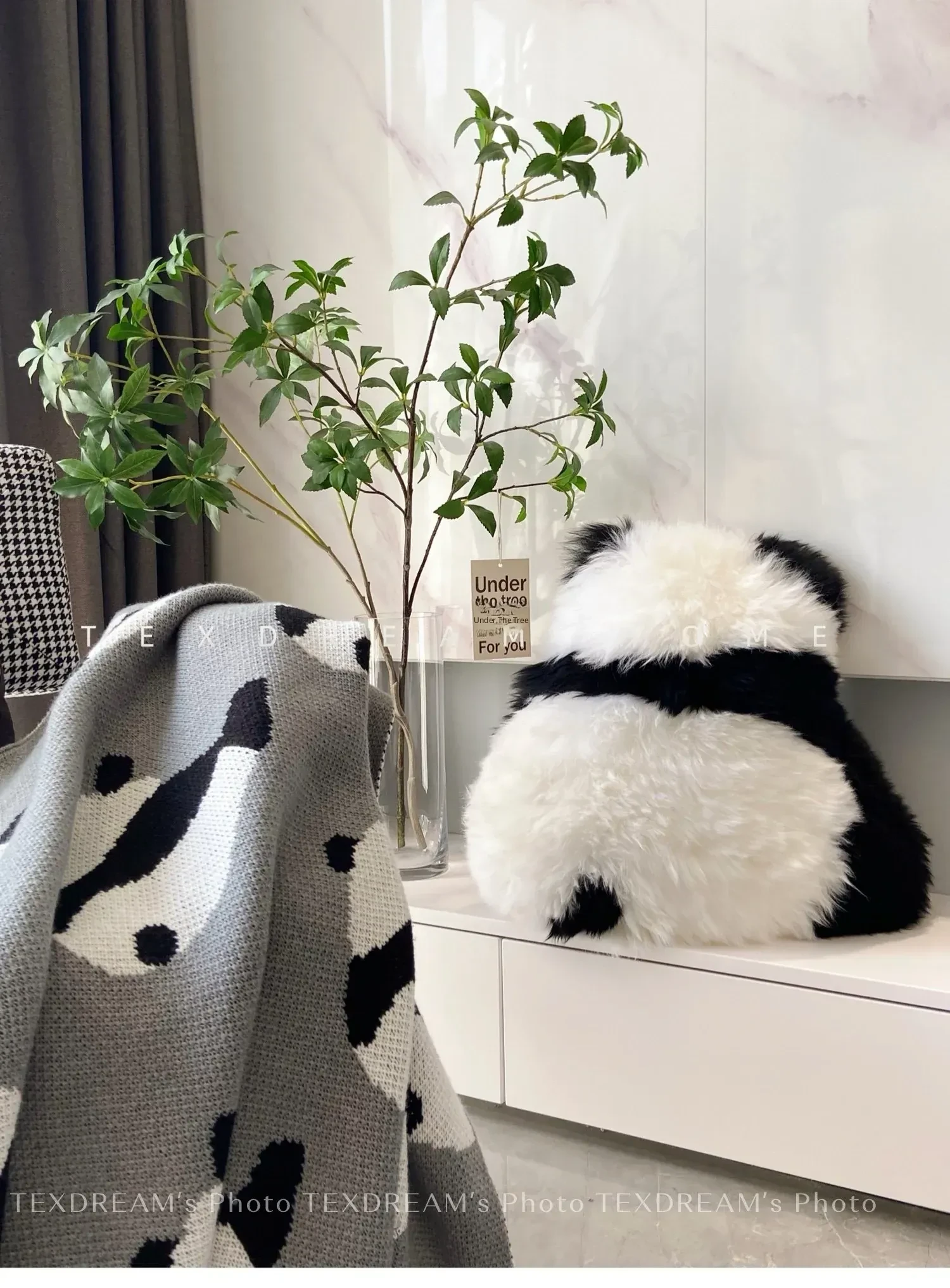 Texdream Attitude | Adorable Panda Plush Pillow with Real Wool and Cute Orchid Design - Perfect Cushion for Sofa and Seat!