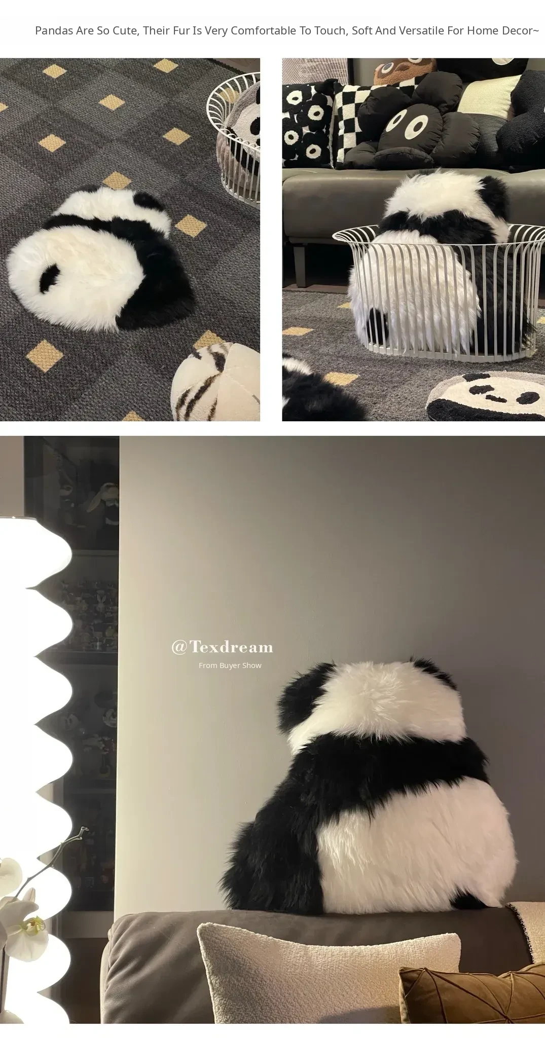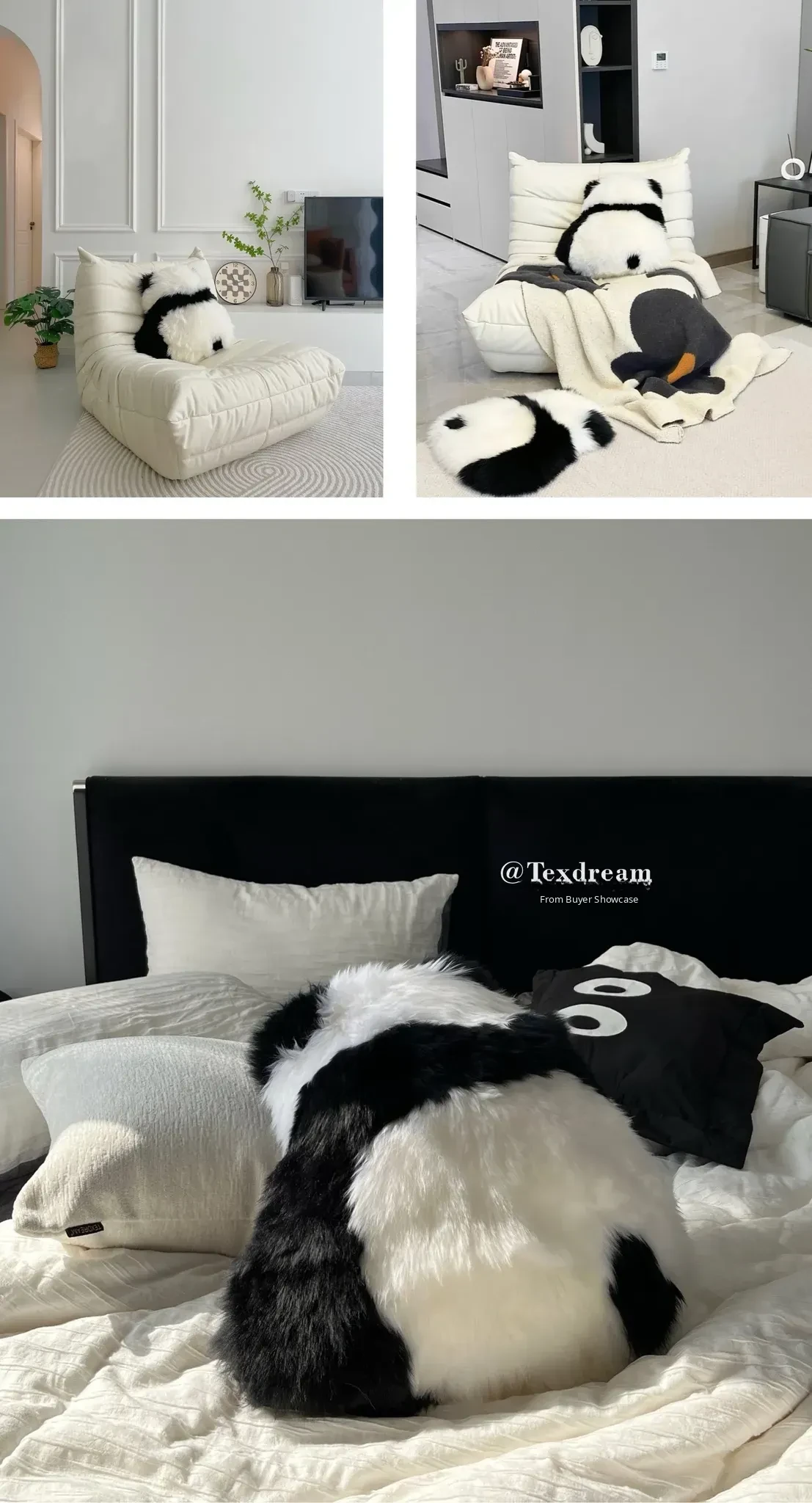[Panda 3-Piece Set| Pillow + Floor Mat + Blanket]