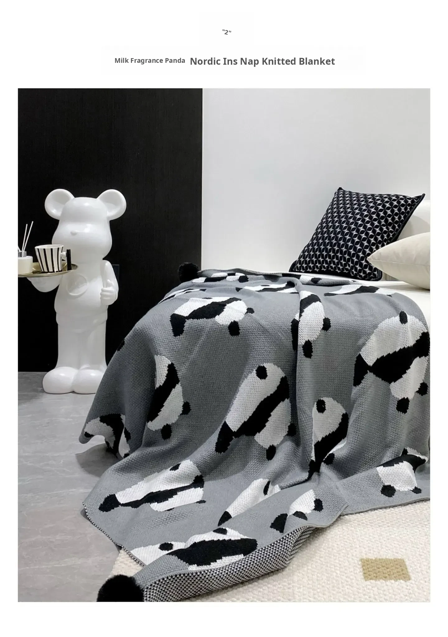 [Panda Knitted Blanket] 51.18in*59.06in