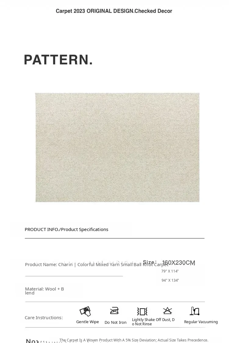 TEXDREAM Attitude Almond French Wool Rug - Elegant Wabi-Sabi Style, Stain-Resistant Treasure for Living Room and Luxurious Bedroom Décor