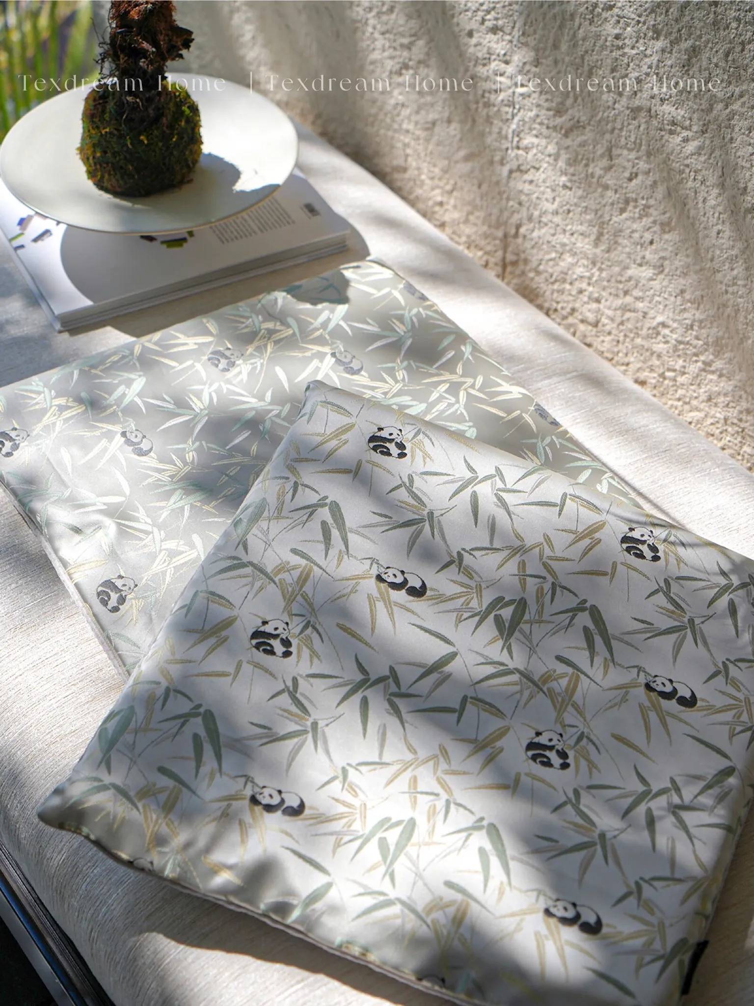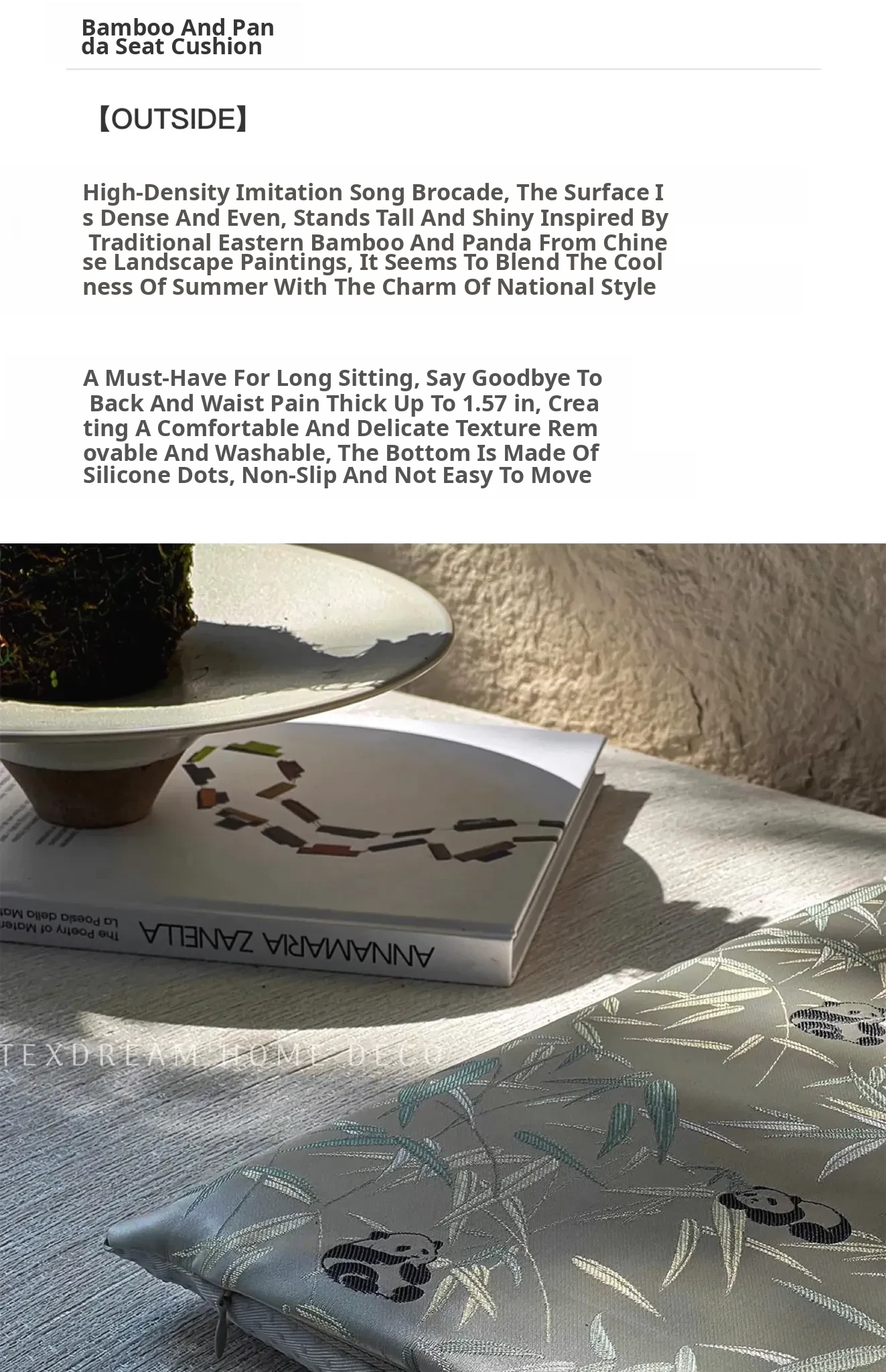 TEXDREAM Attitude Bamboo Panda Chinese Embroidery Seat Cushion - Comfortable Office Chair Pad & Sofa Cooling Mat