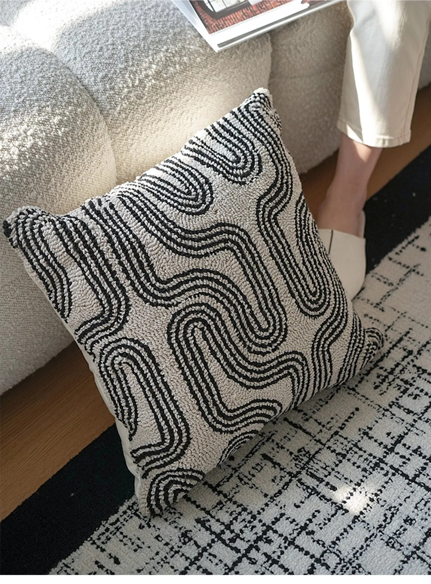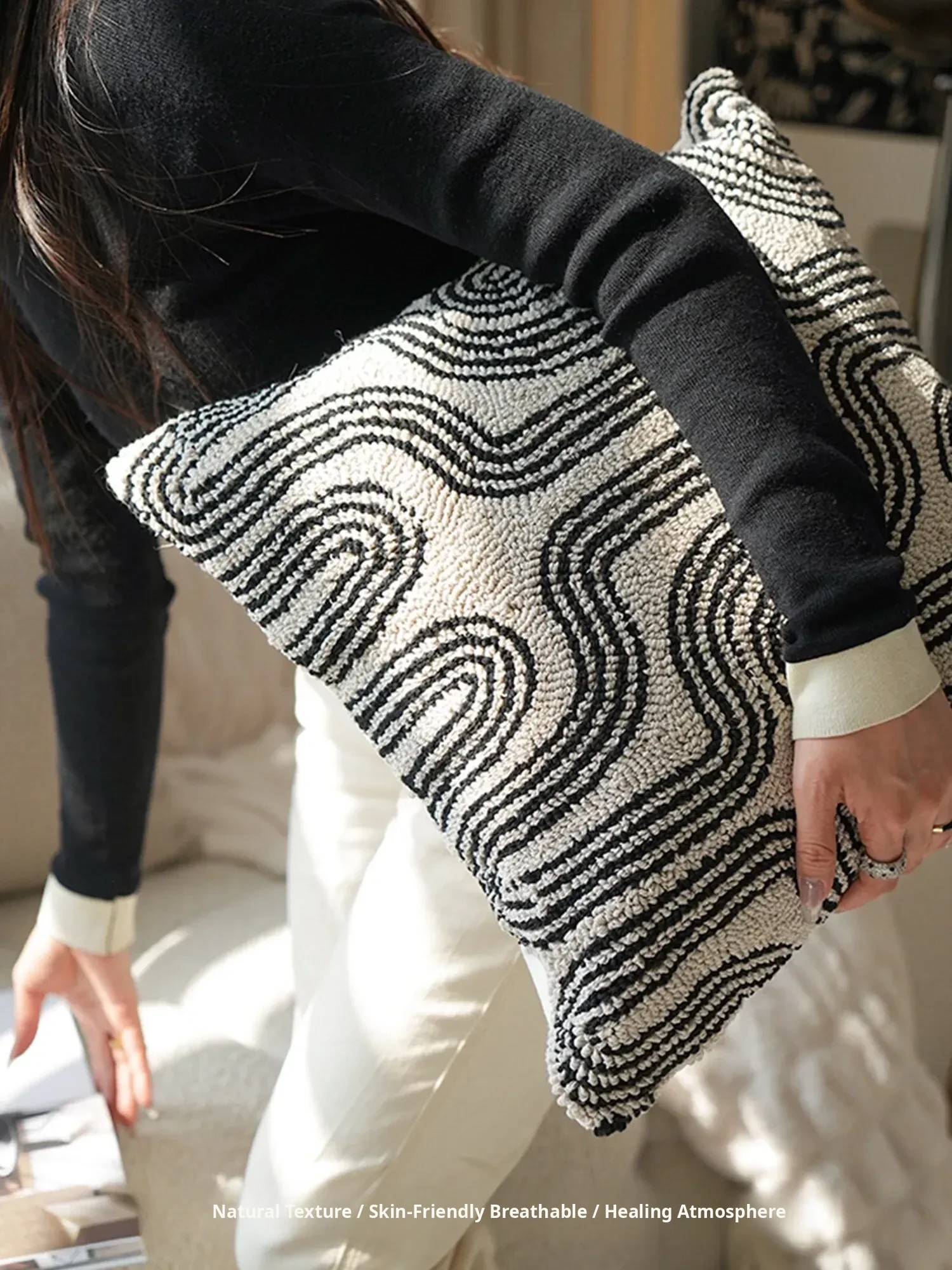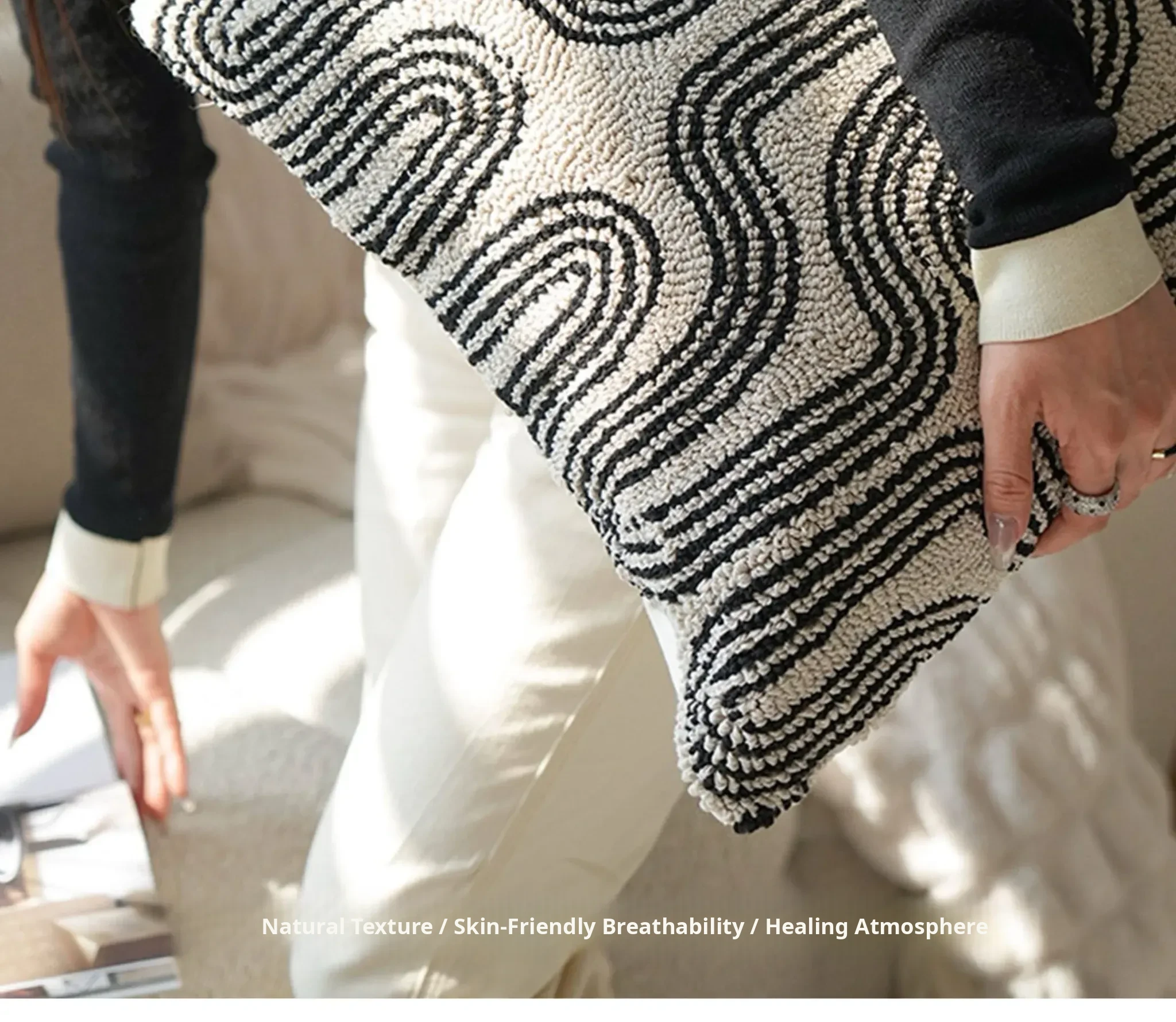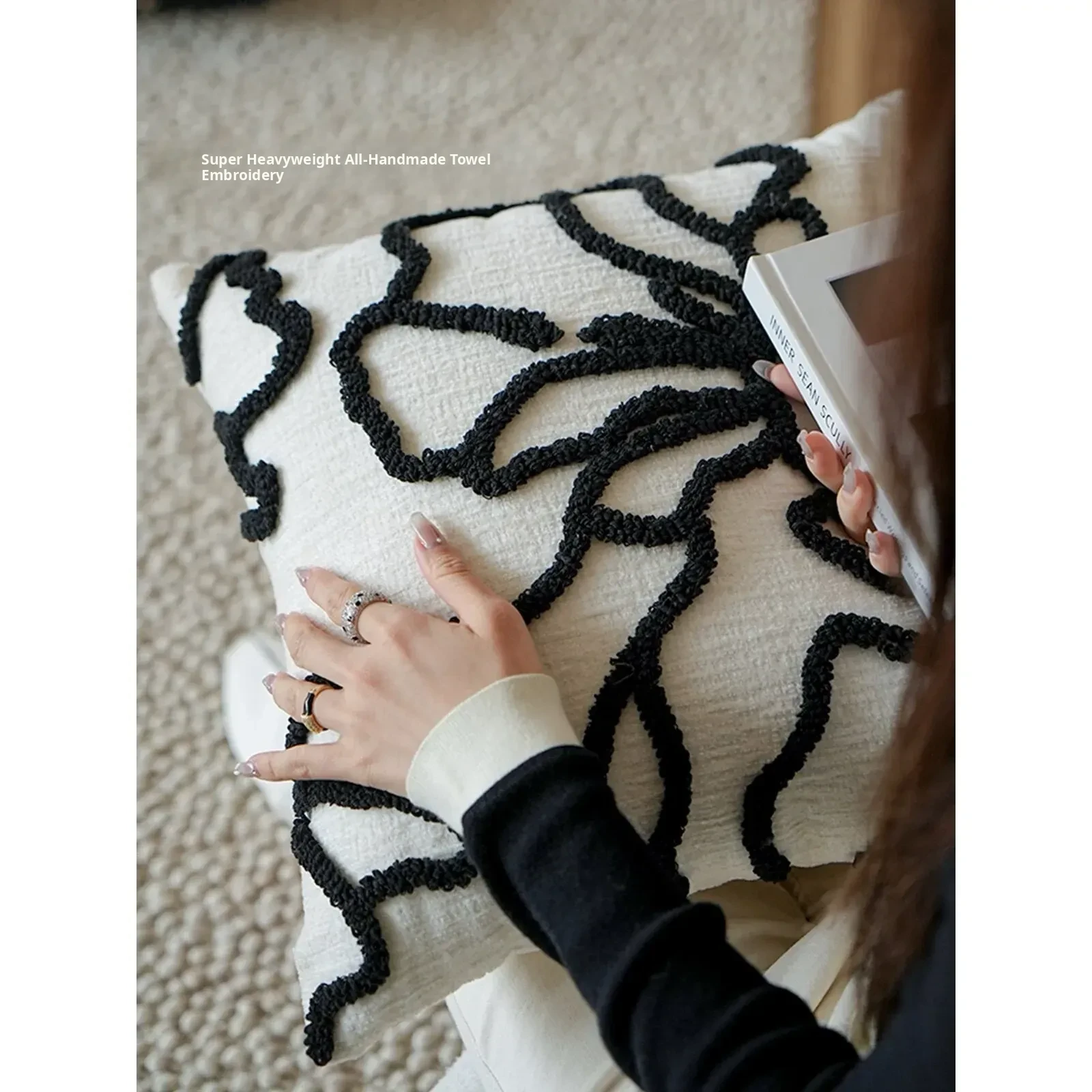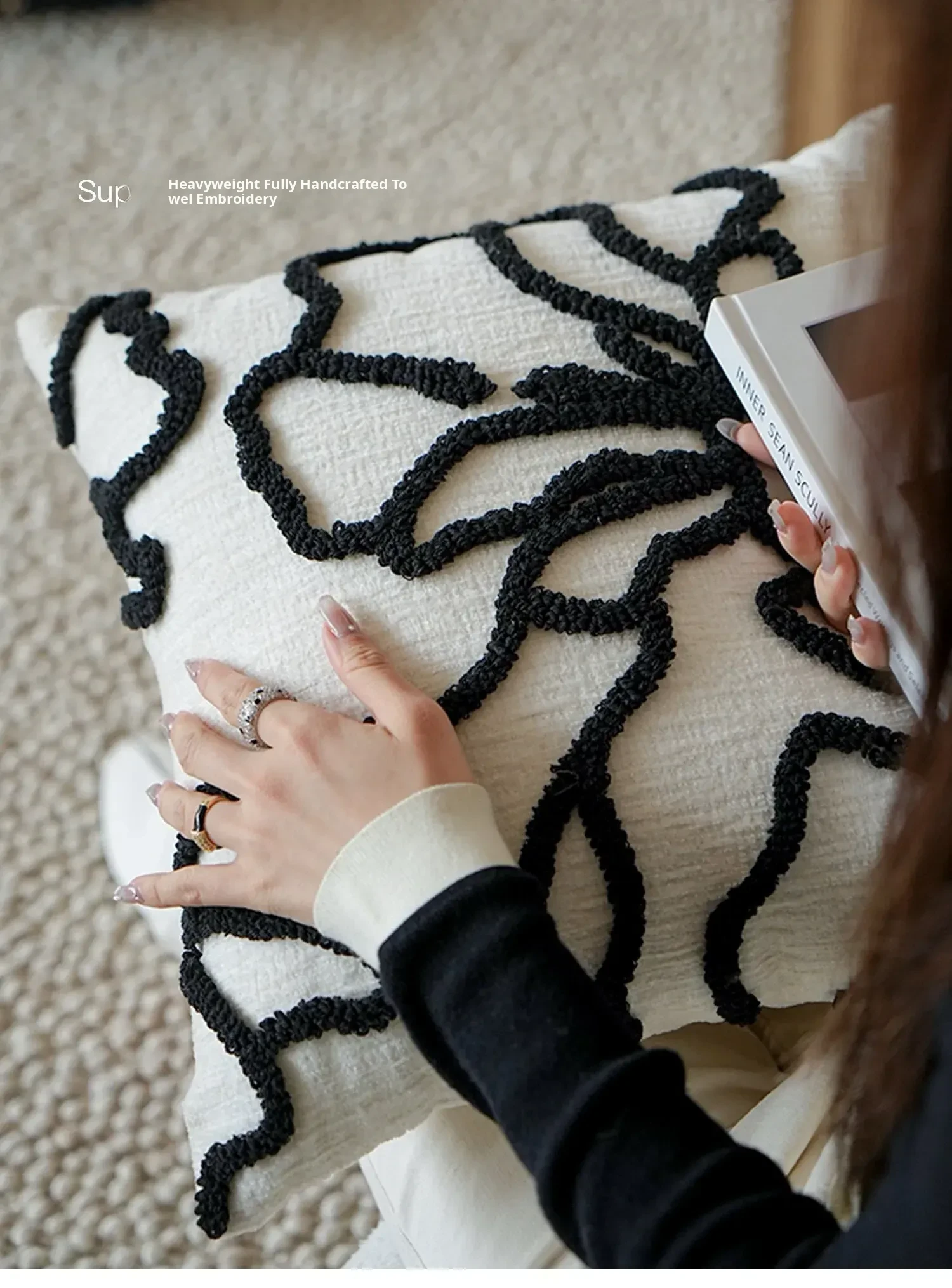 Texdream Attitude Black Woven Modern Minimalist Sofa Cushion - French Art Line Decorative Pillow for Living Room