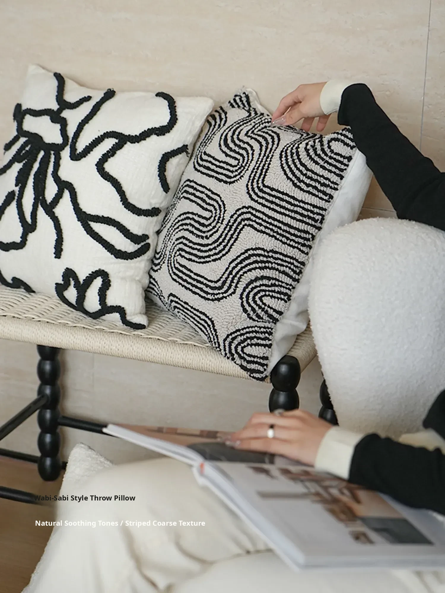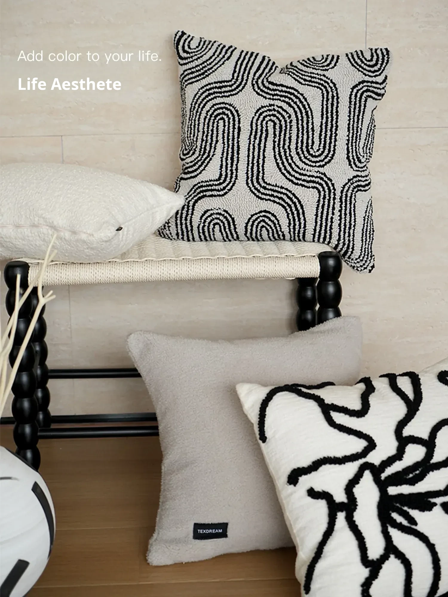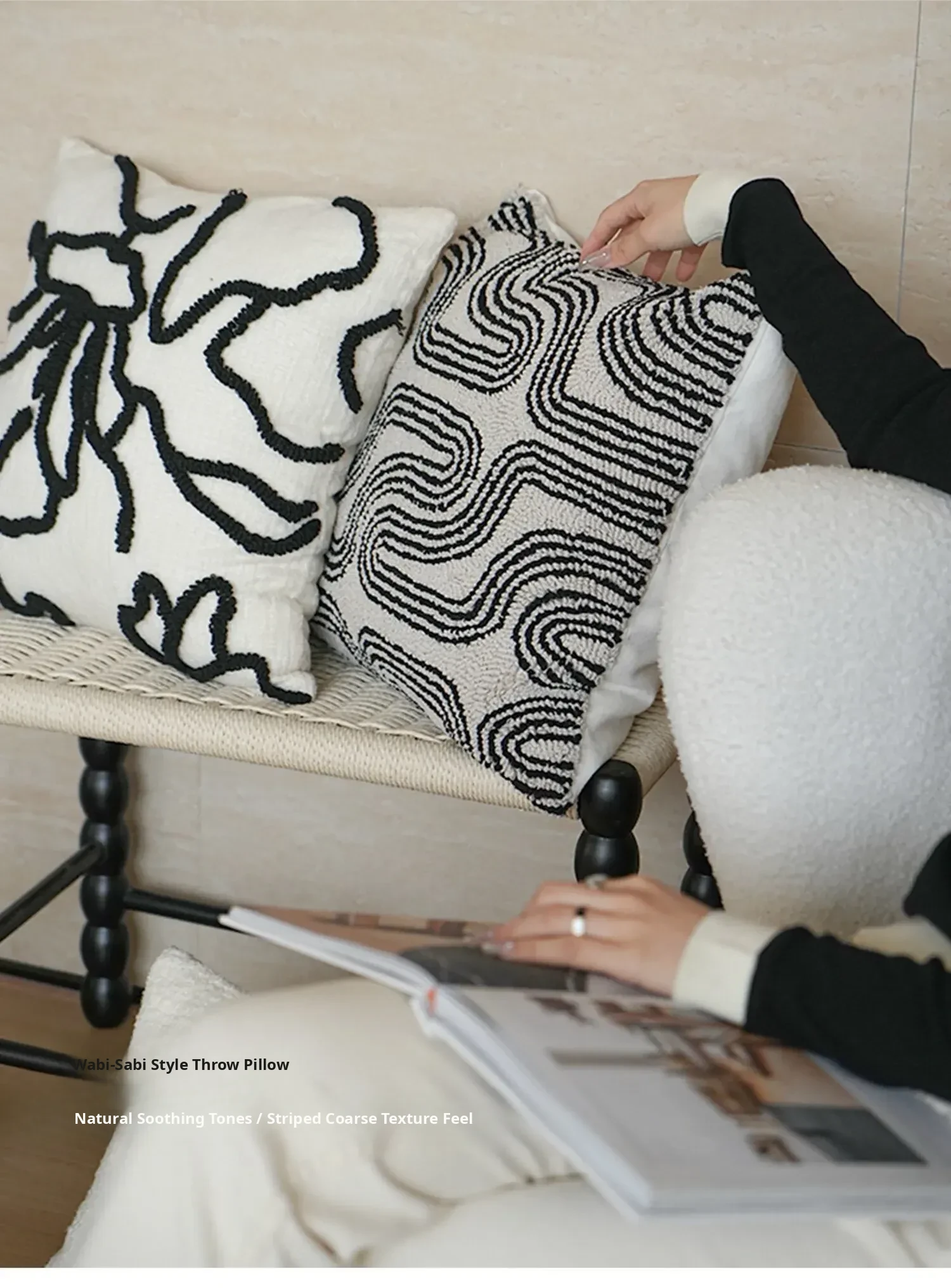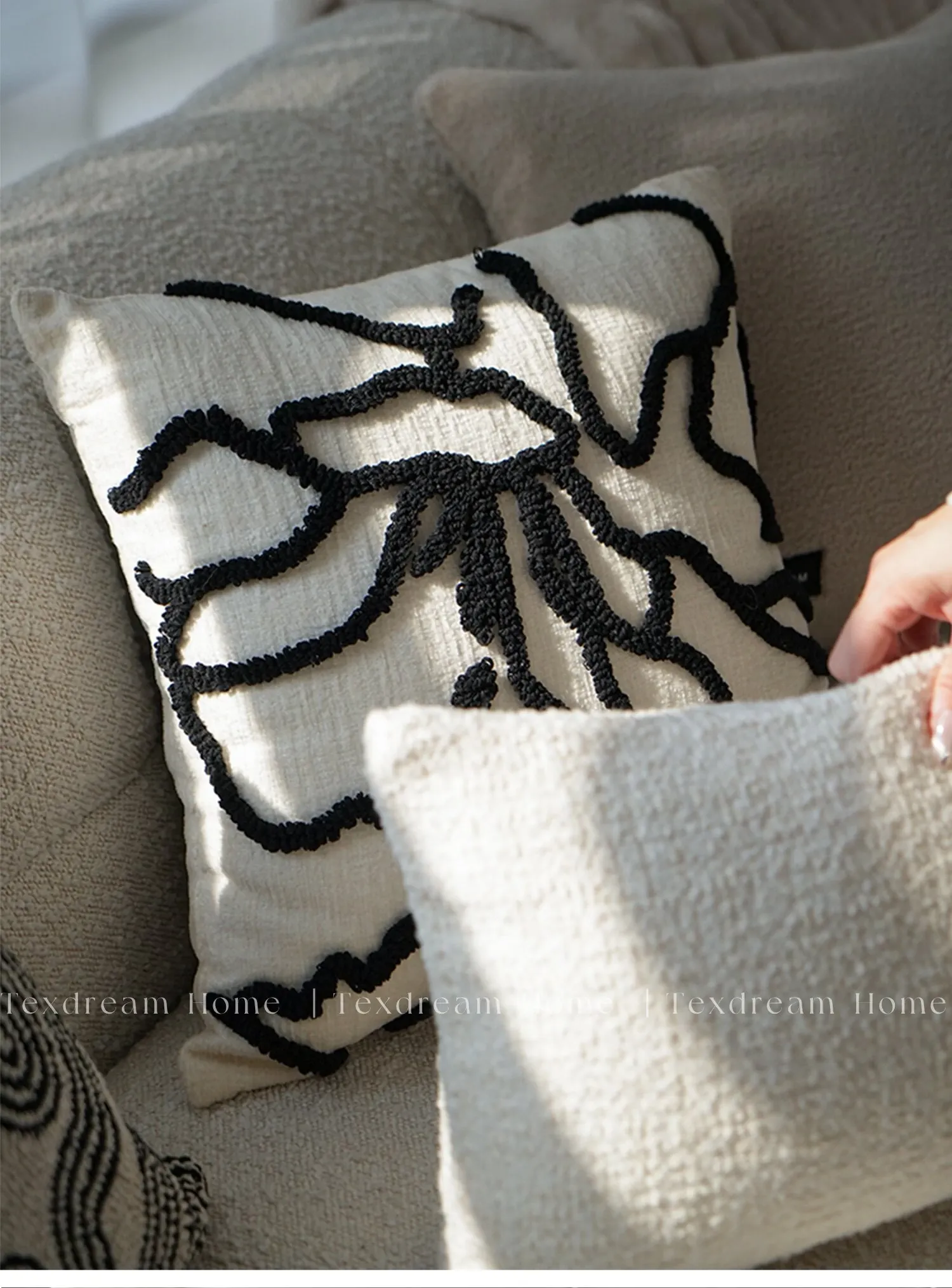 Texdream Attitude Black Woven Modern Minimalist Sofa Cushion - French Art Line Decorative Pillow for Living Room