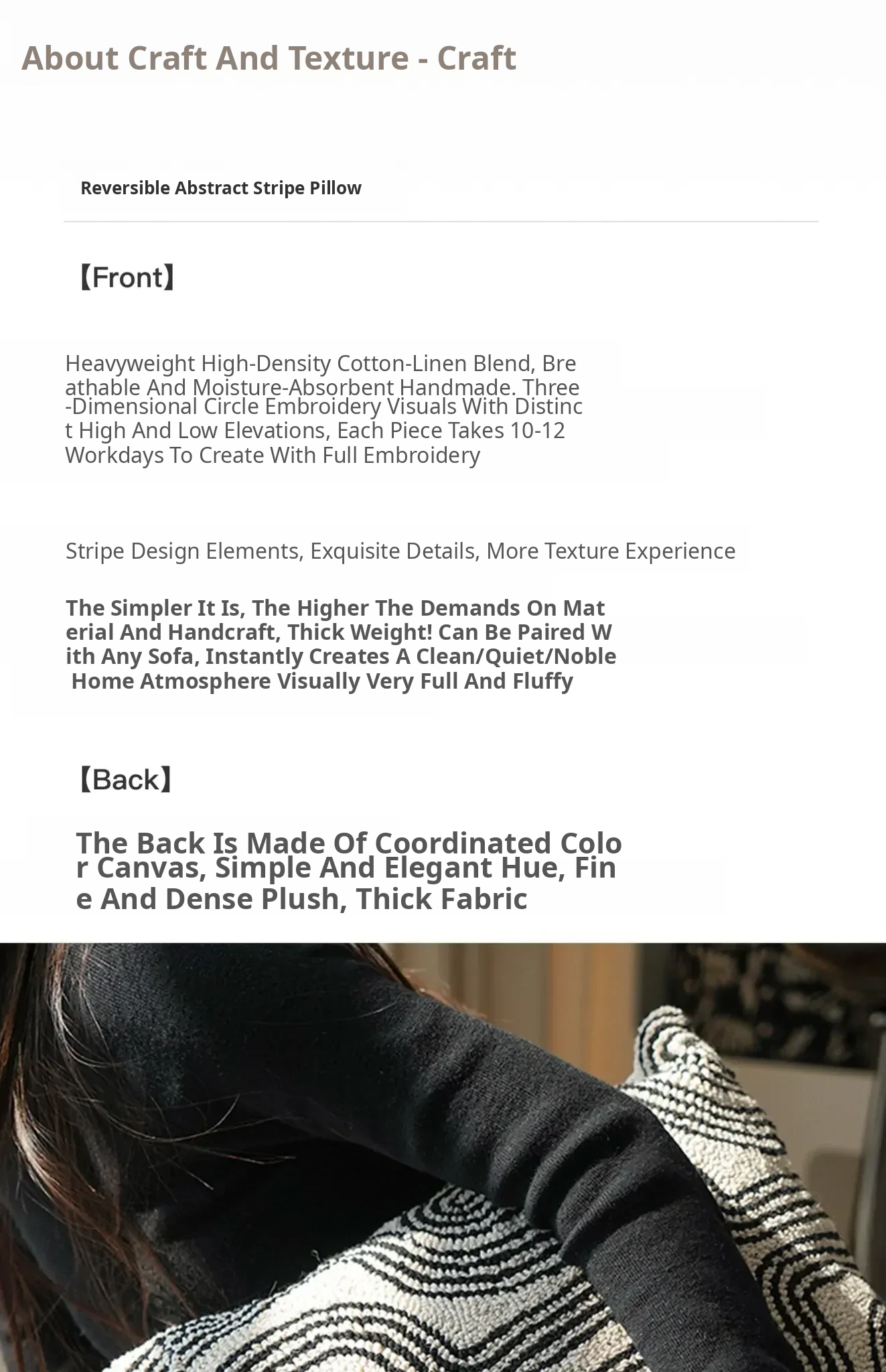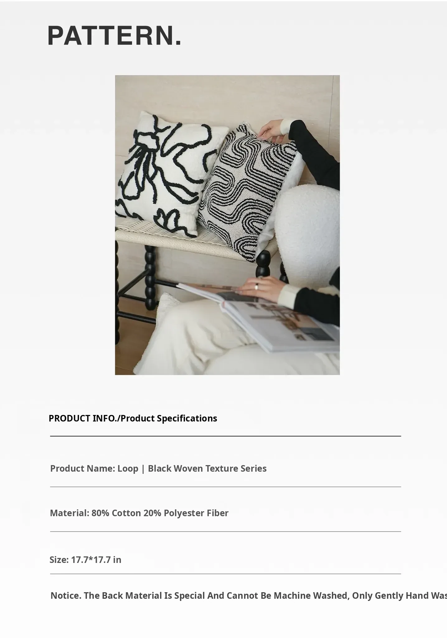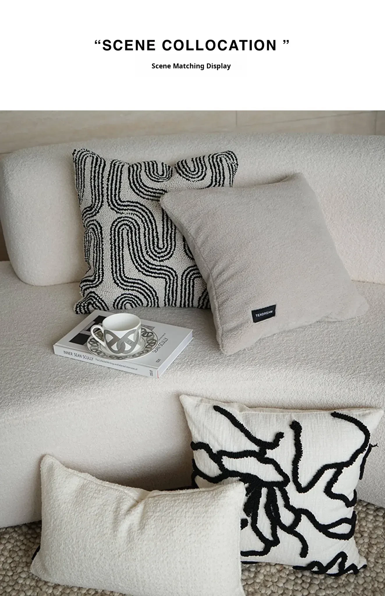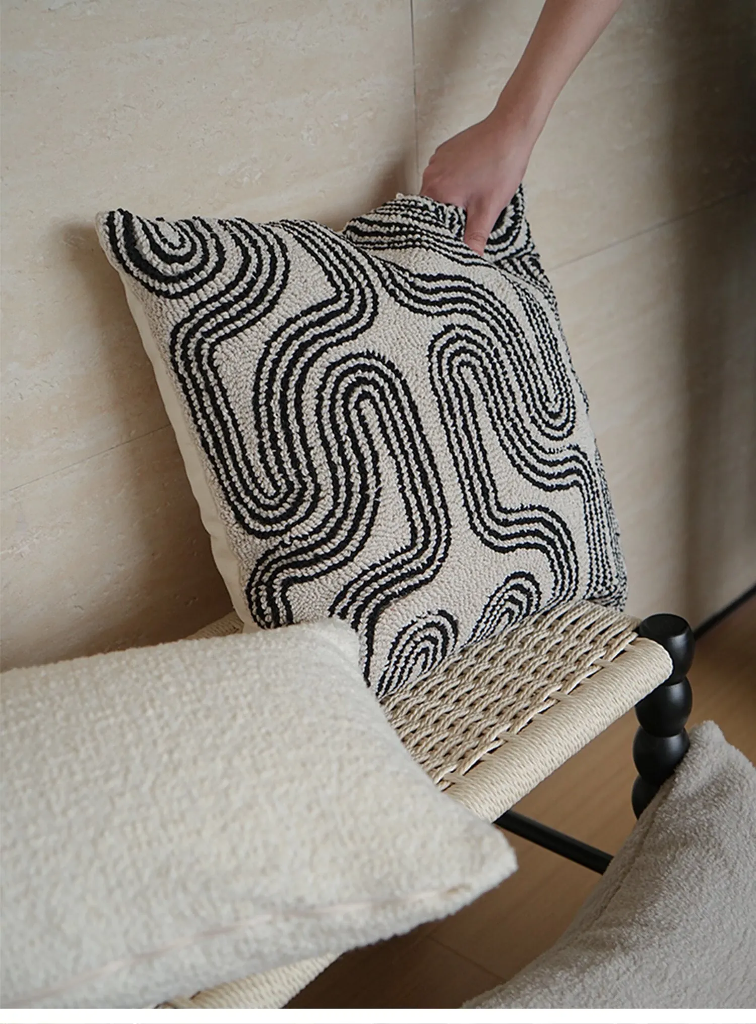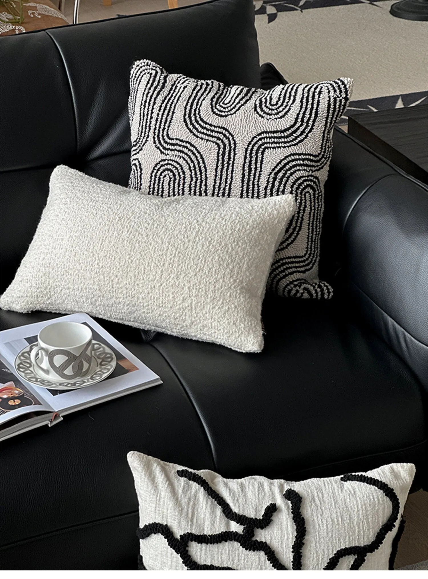 Texdream Attitude Black Woven Modern Minimalist Sofa Cushion - French Art Line Decorative Pillow for Living Room