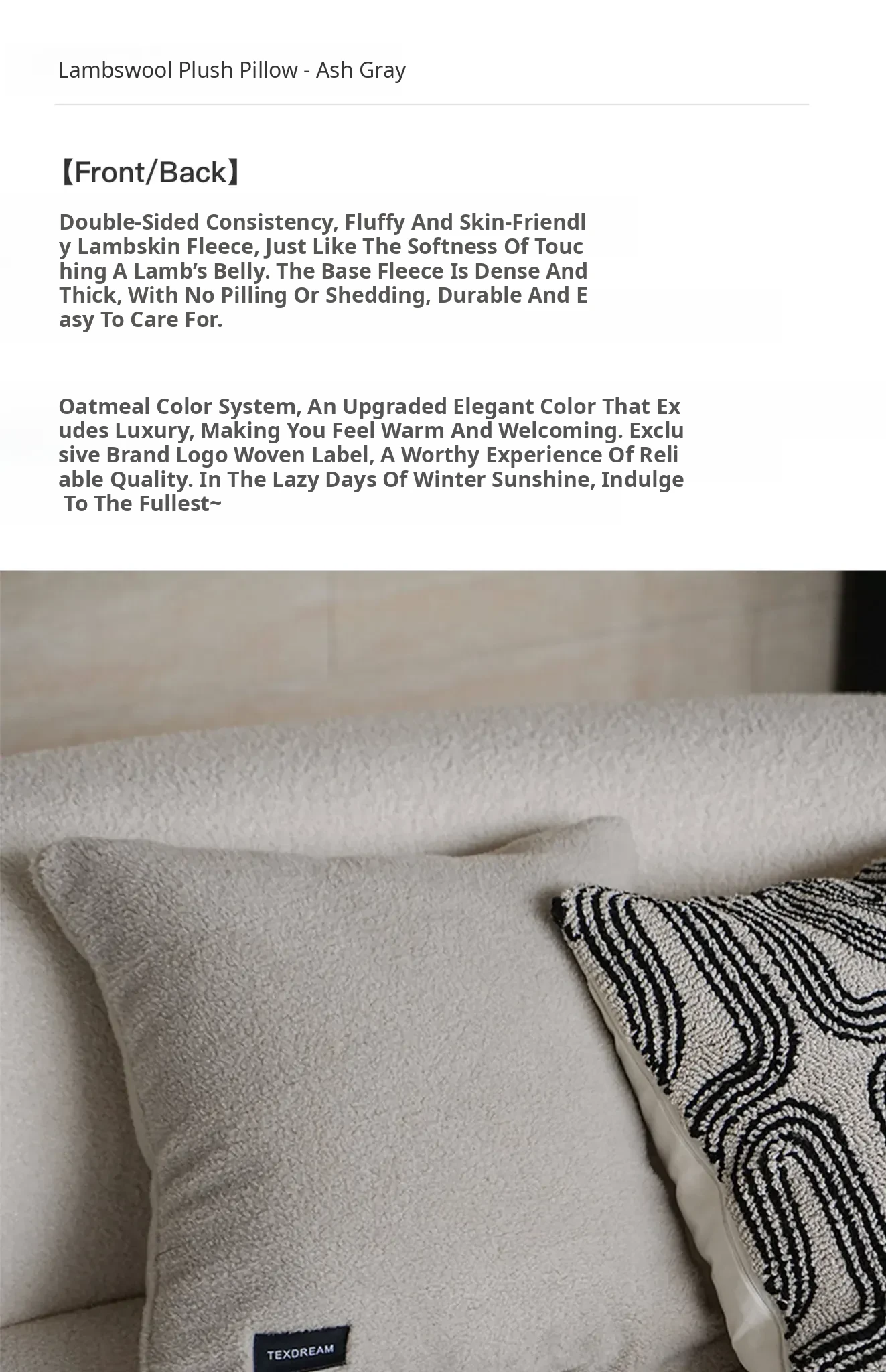 Lamb's Wool Plush Pillow| Smoke Gray]