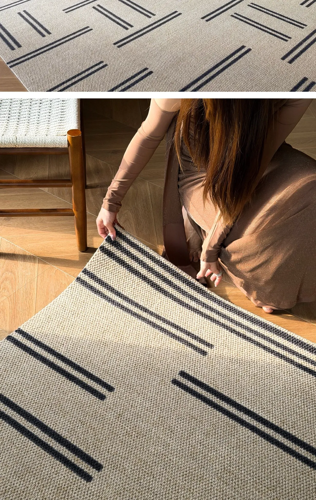 Disorder| Black and Brown Striped Wool Rug