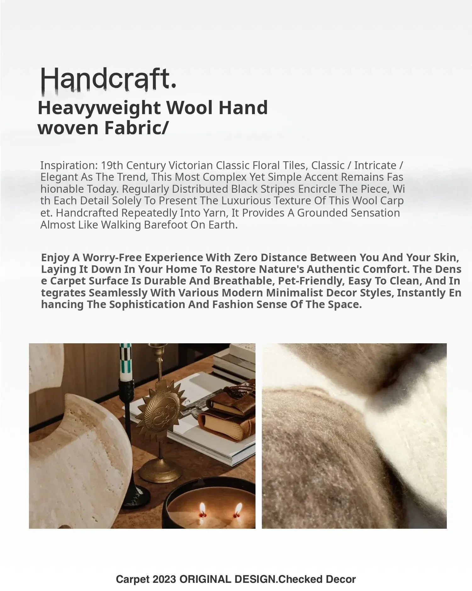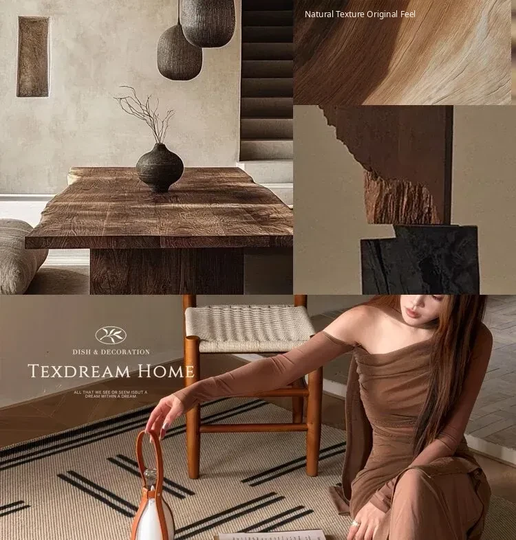 Texdream Attitude Chaos-Inspired Minimalist Wool Area Rug for Living Room - Luxury Villa Sofa Carpet & Bedside Mat