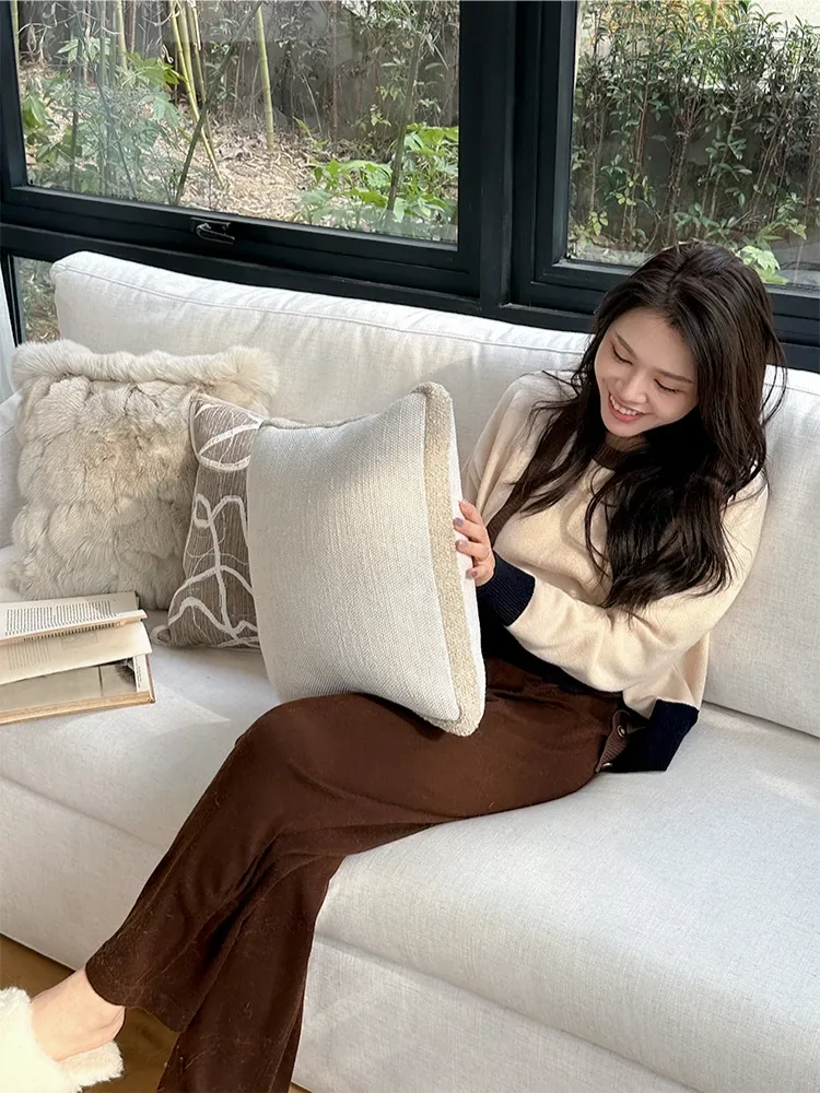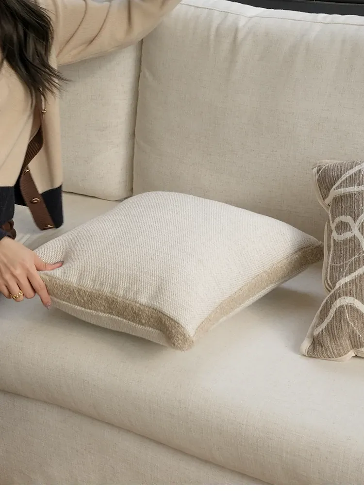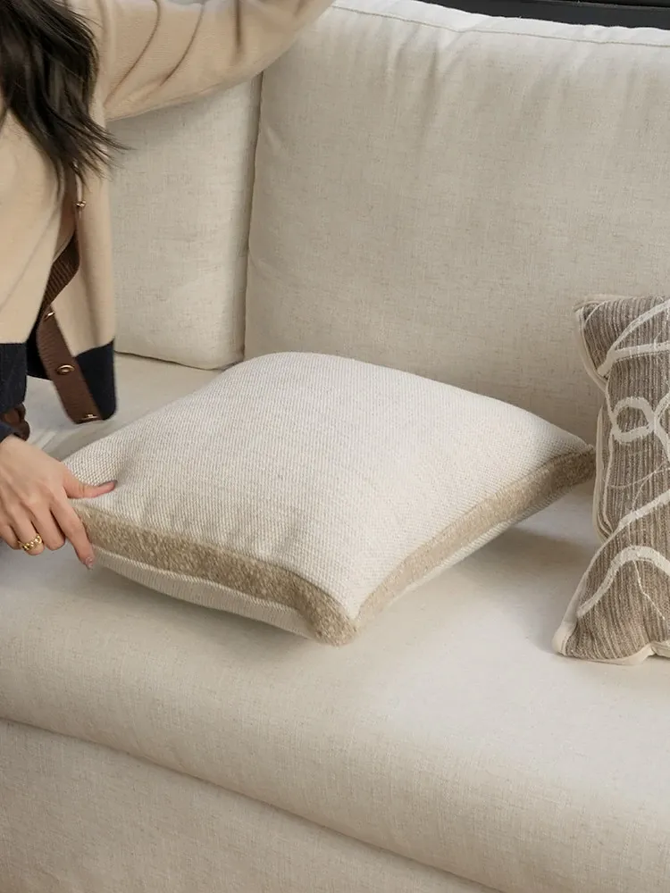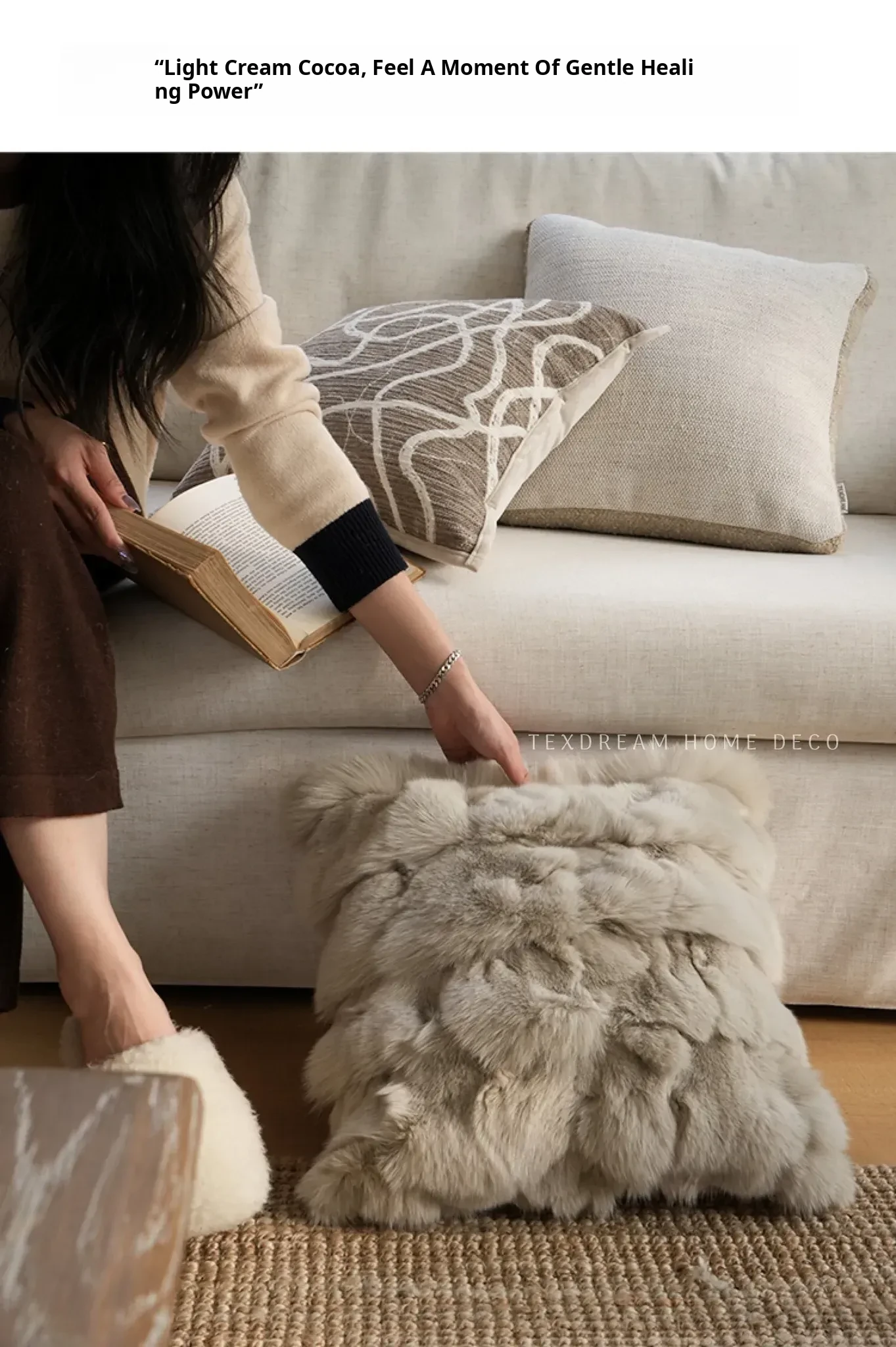 Texdream Attitude Cocoa Cream Pillow - Nordic INS Style Fox Fur Cushion for Sofa, Living Room, and French Minimalist Decor