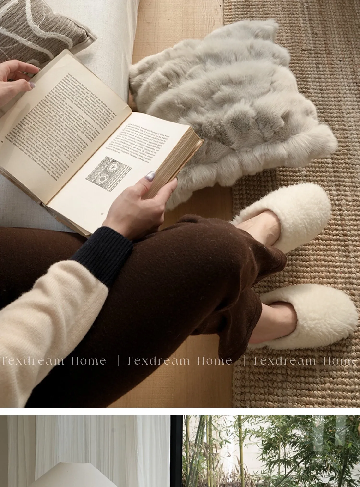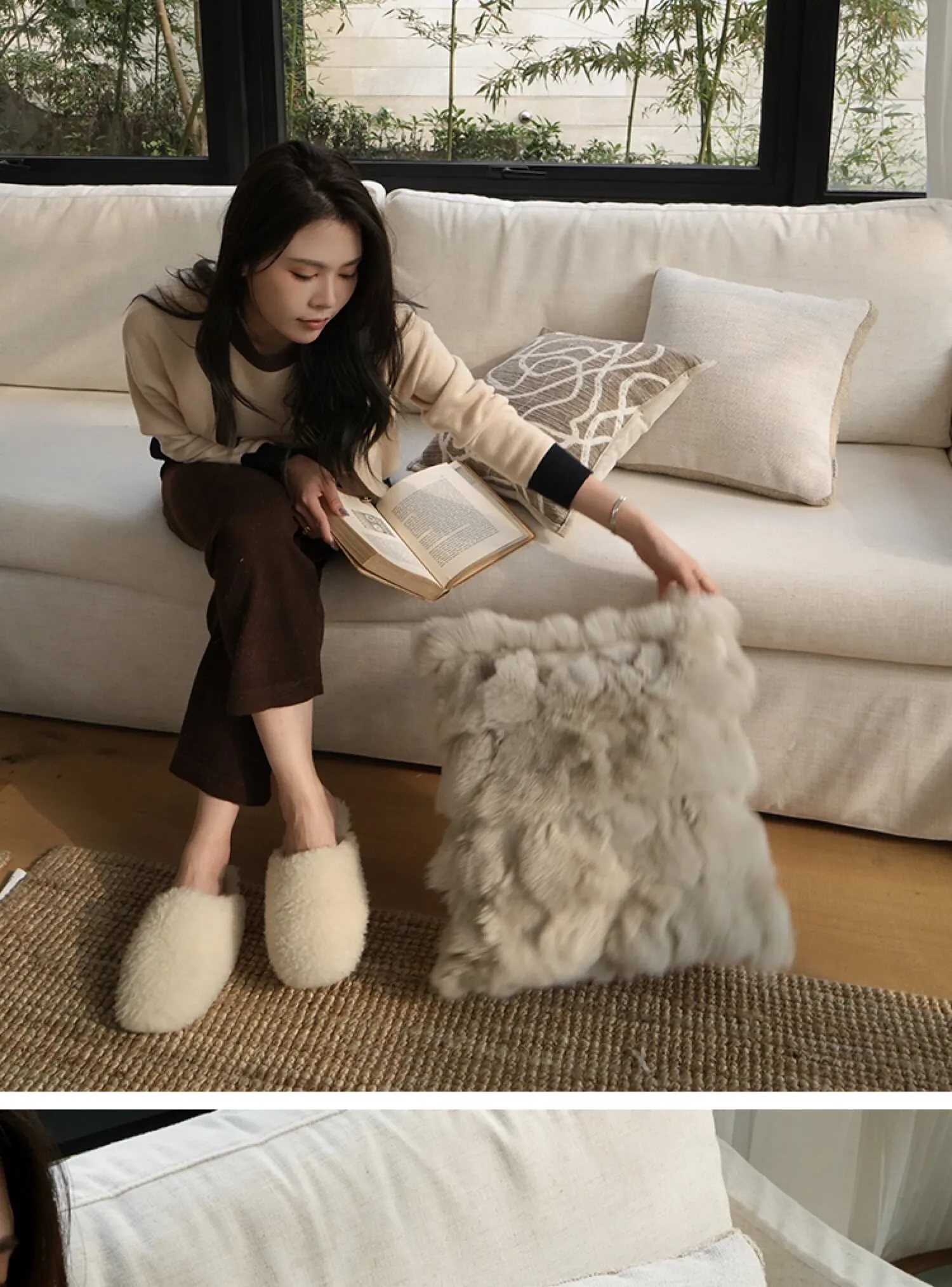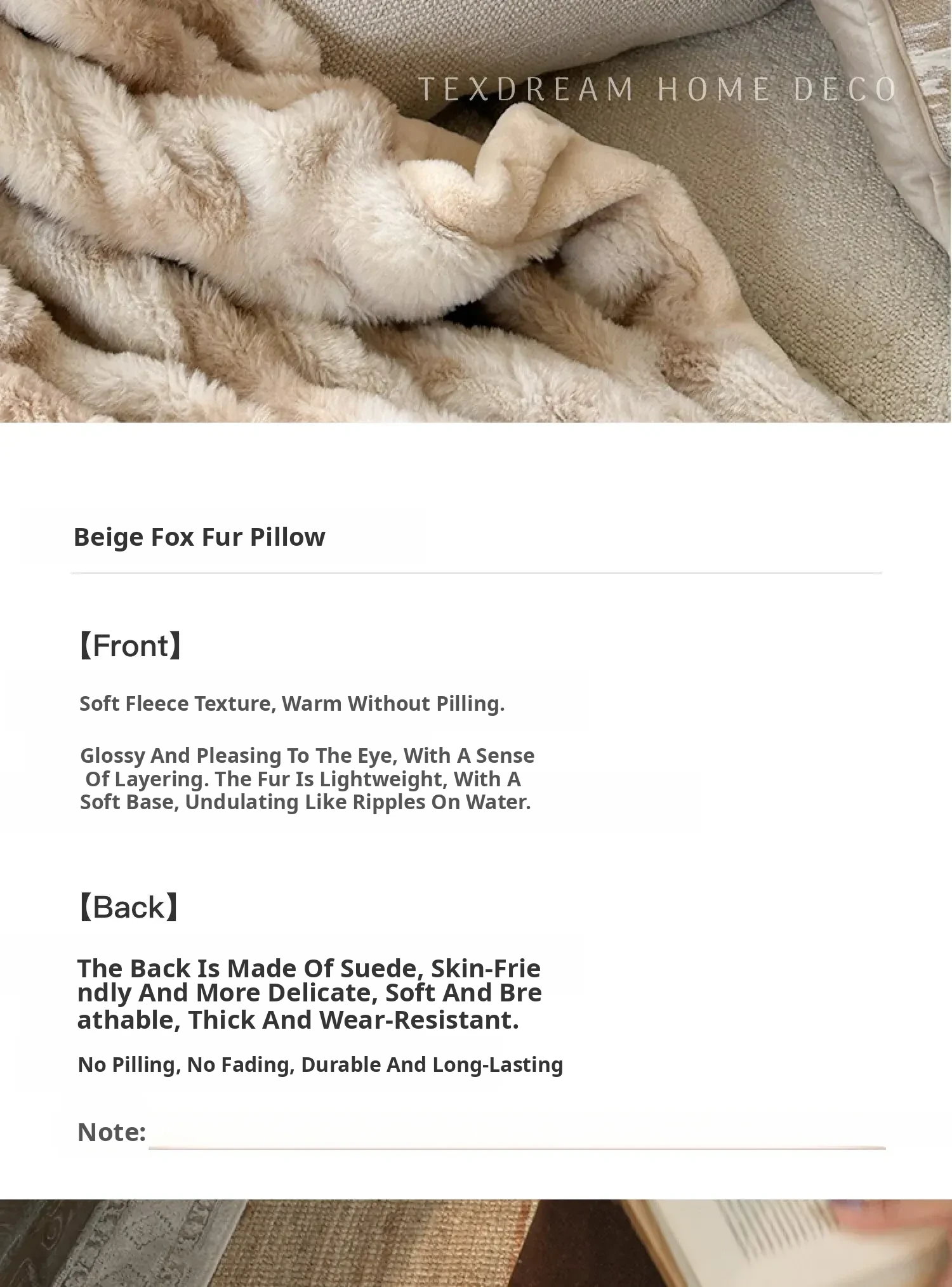Texdream Attitude Cocoa Cream Pillow - Nordic INS Style Fox Fur Cushion for Sofa, Living Room, and French Minimalist Decor