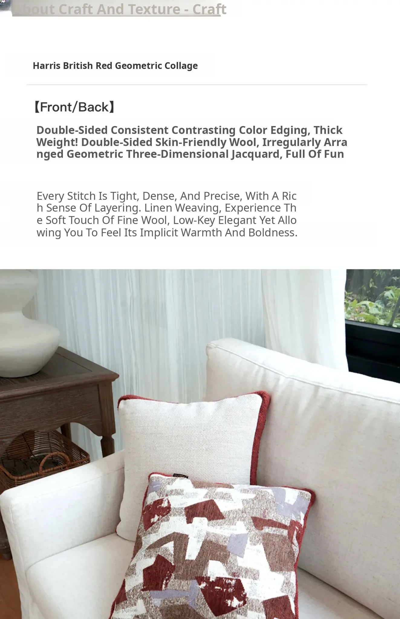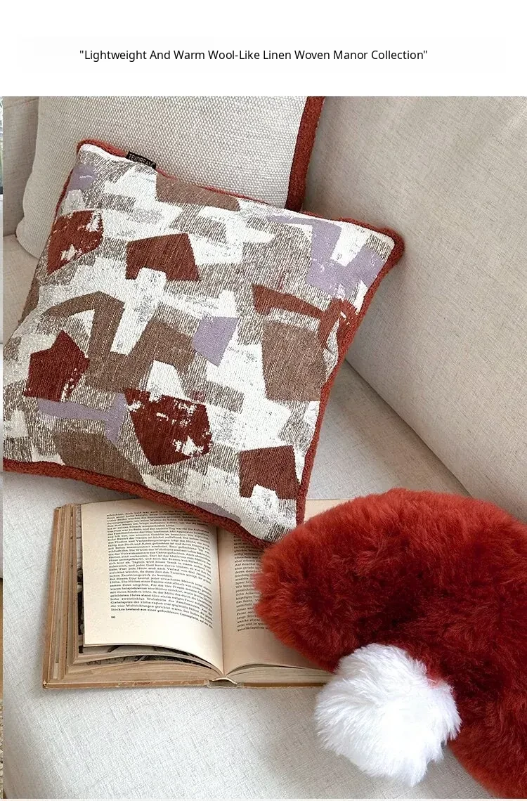 Texdream Attitude Cozy Red Throw Pillow Cover - Nordic INS Style Wool Sofa Cushion with Linen Weave for a Modern Touch of Luxe