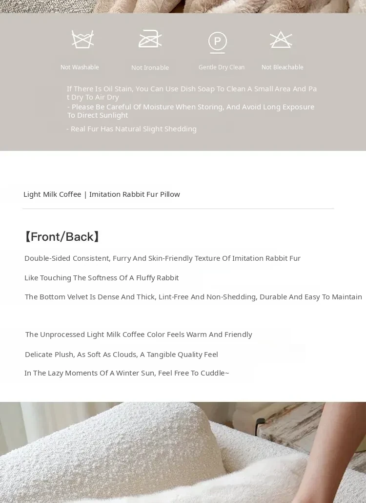 【Light Milk Coffee| Bionic Rabbit Fur Pillow]